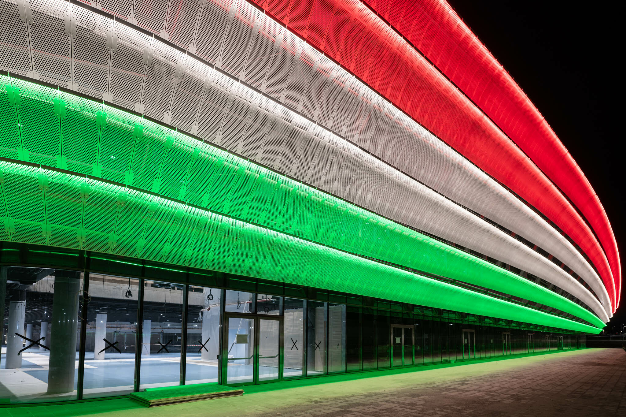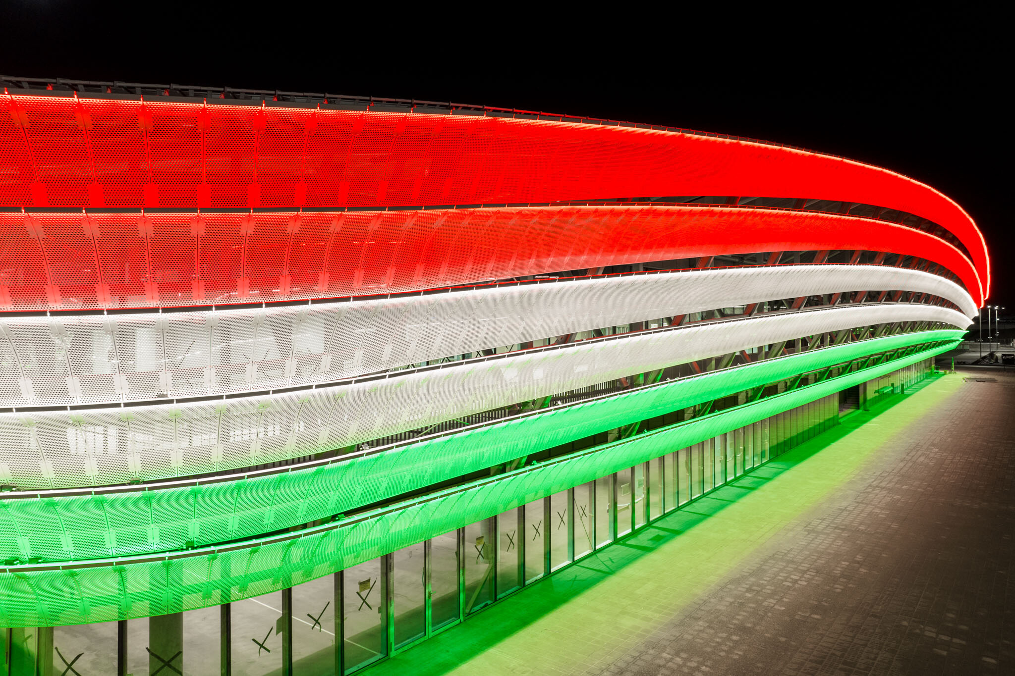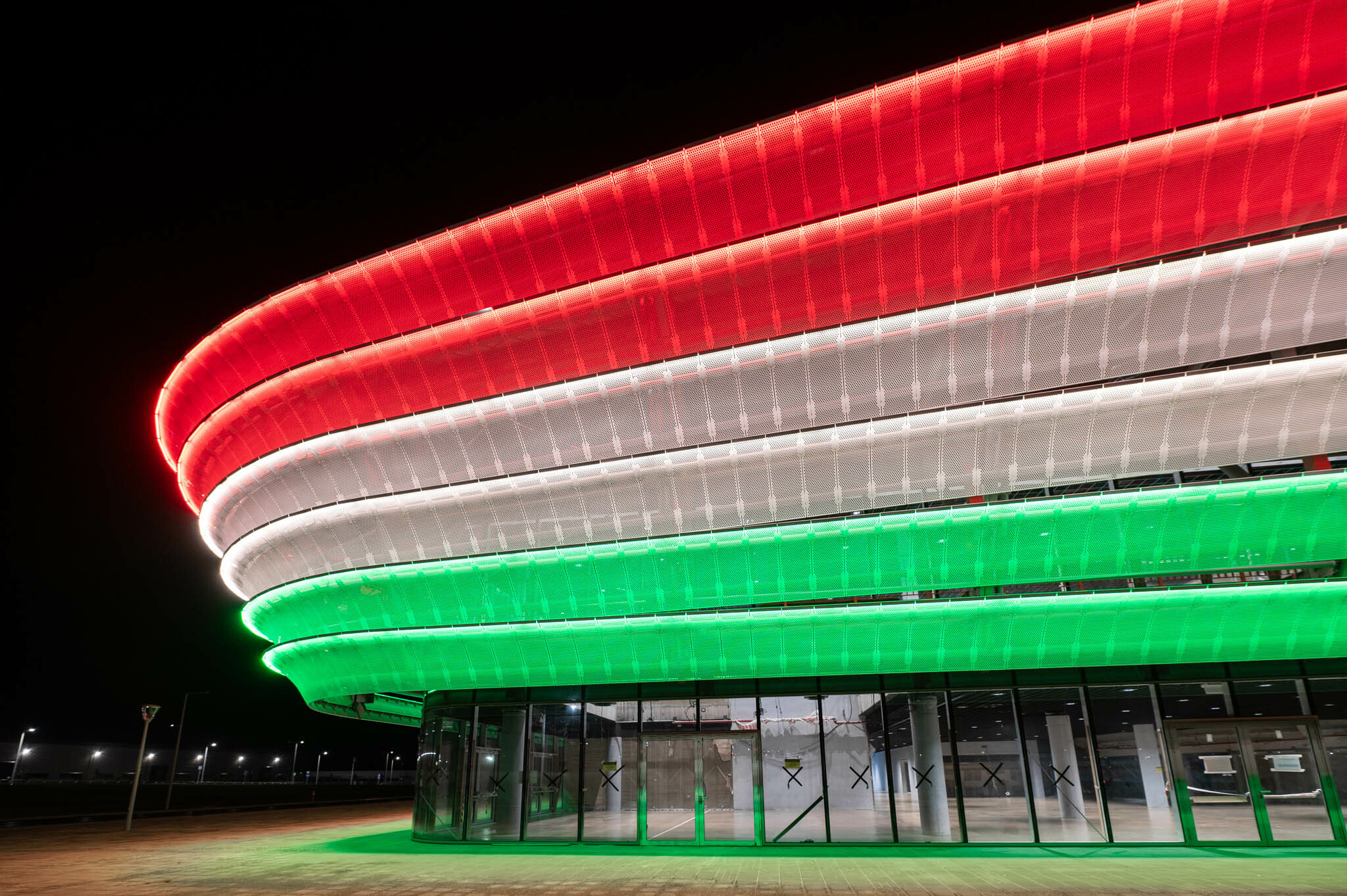 Október 23-án nemzeti színekbe öltöztették az épületet, amelyről egy bámulatos videót is megosztott YouTube-csatornáján a kivitelező cég.