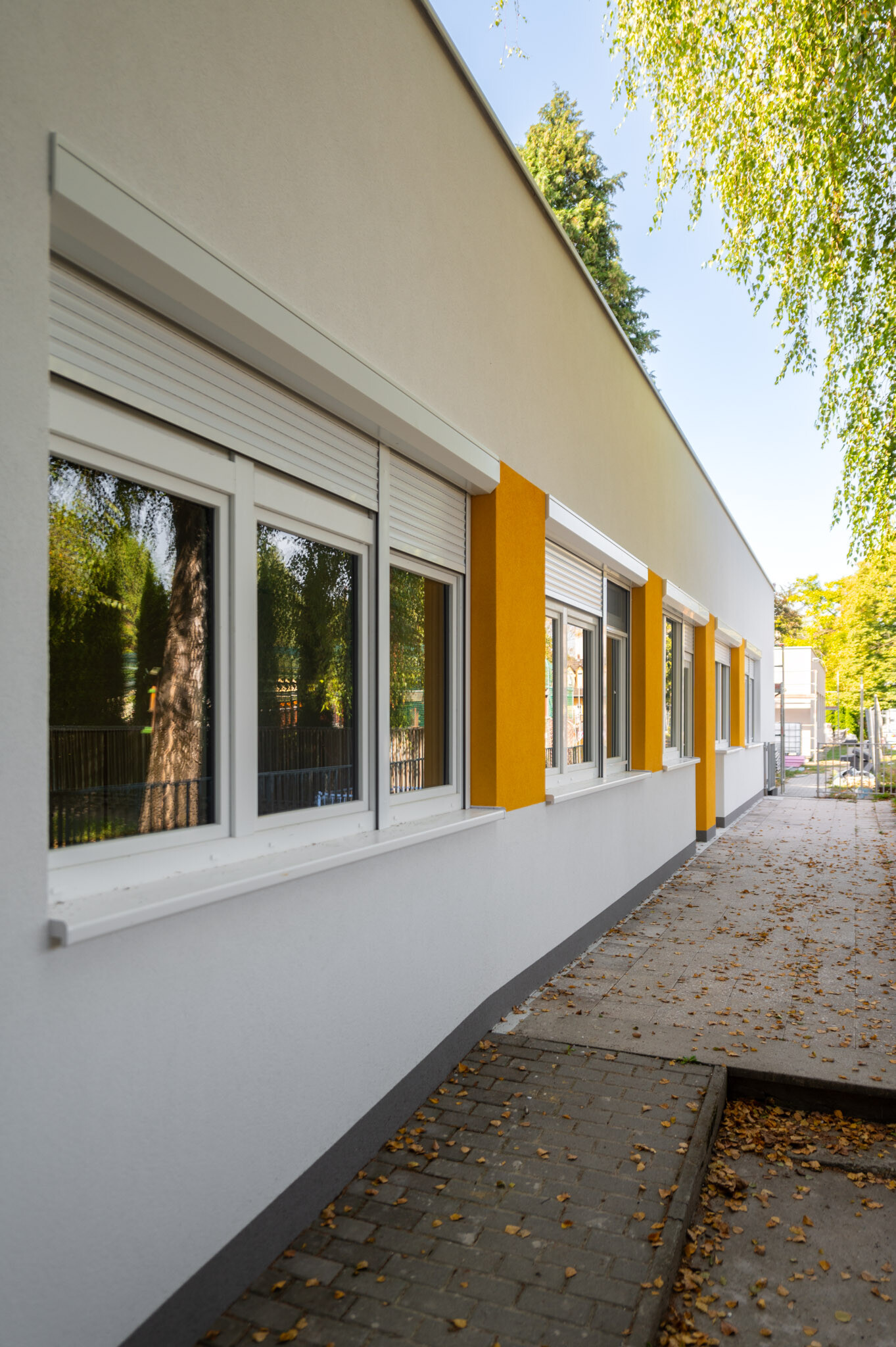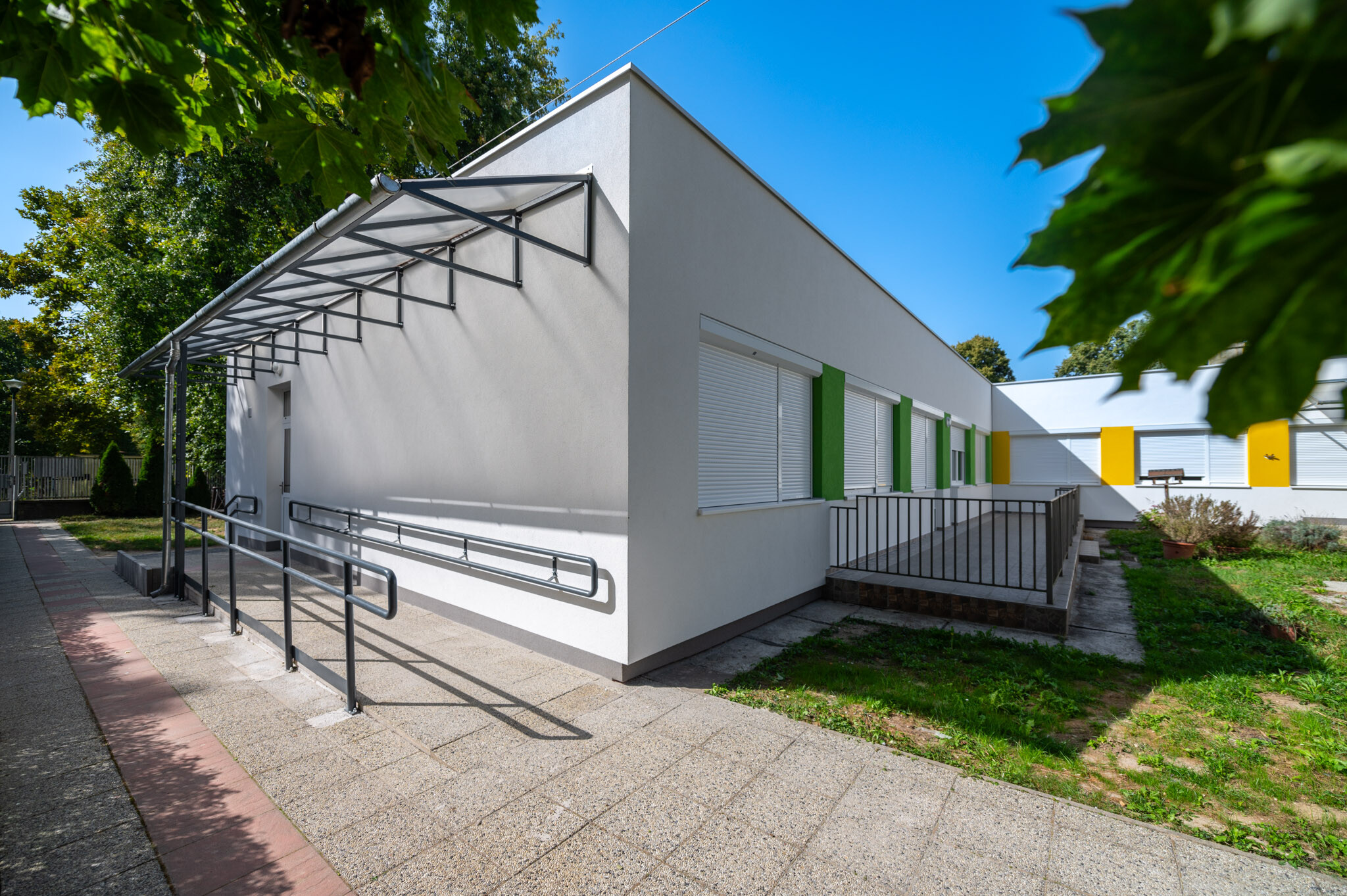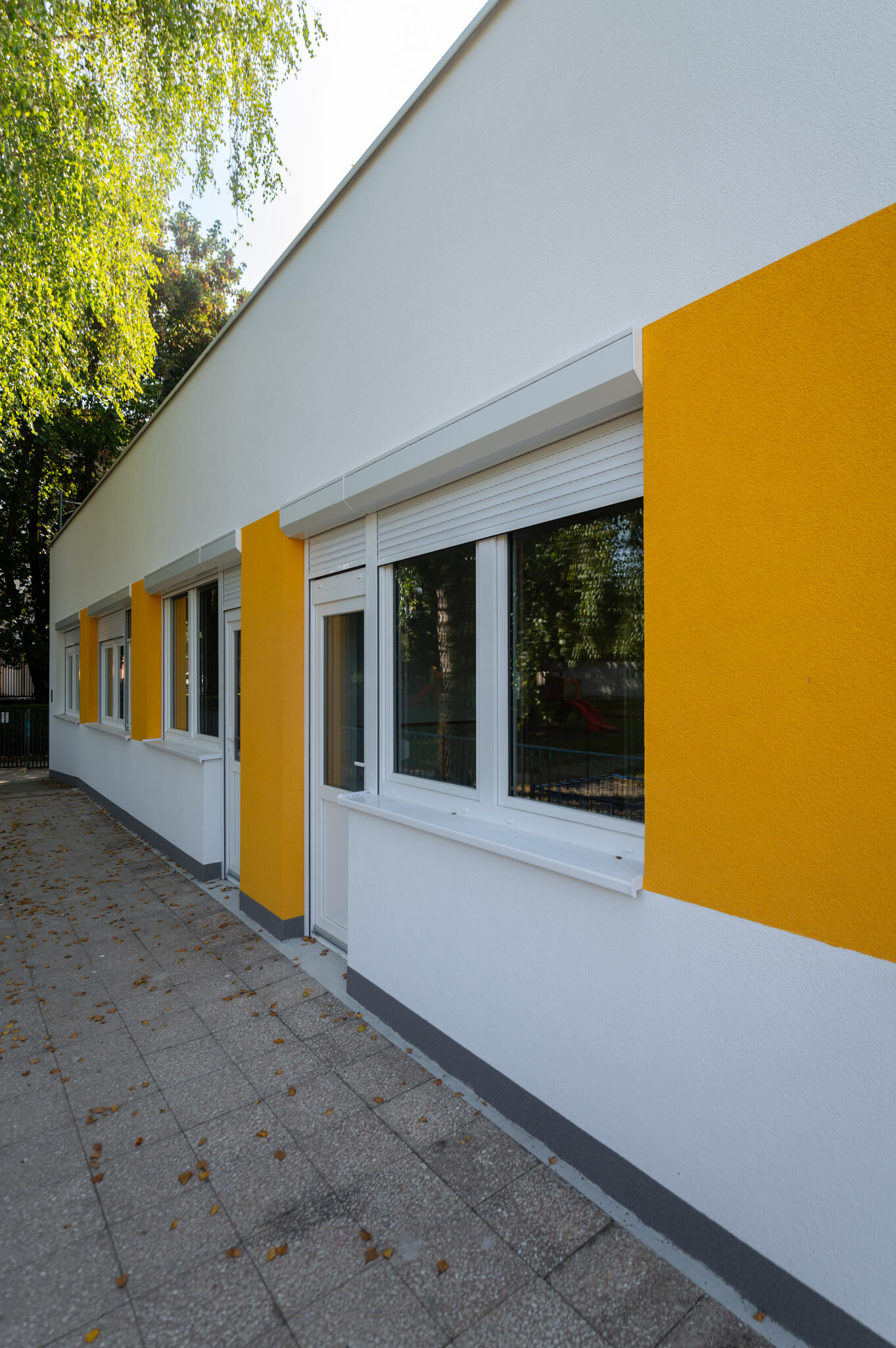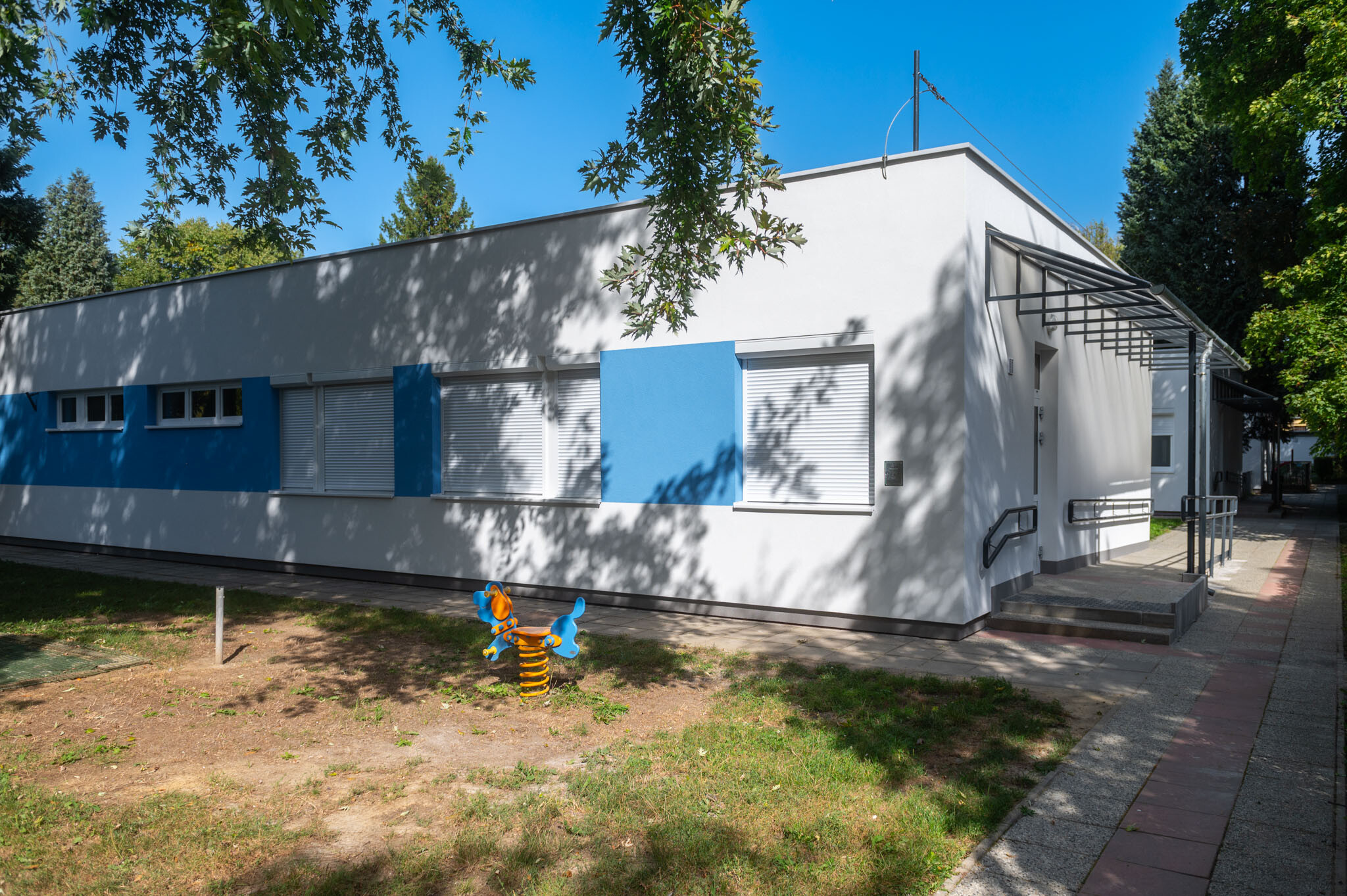 Az óvoda esetében egy egyszerű tömegképzésű, egyszintes téglaalaprajzú egységekből álló épületegyüttes képezte a projekt tárgyát. A lakótelepi környezetben álló intézményben a sarkaiknál összeforgatott tömbök védett belső udvarokkal, átlátható terekkel a későmodern építészet kellemes arányú és jól használható helyiségeivel segítik a pedagógusok munkáját, energetikailag azonban az épület messze elmaradt a mai kor elvárásaitól.