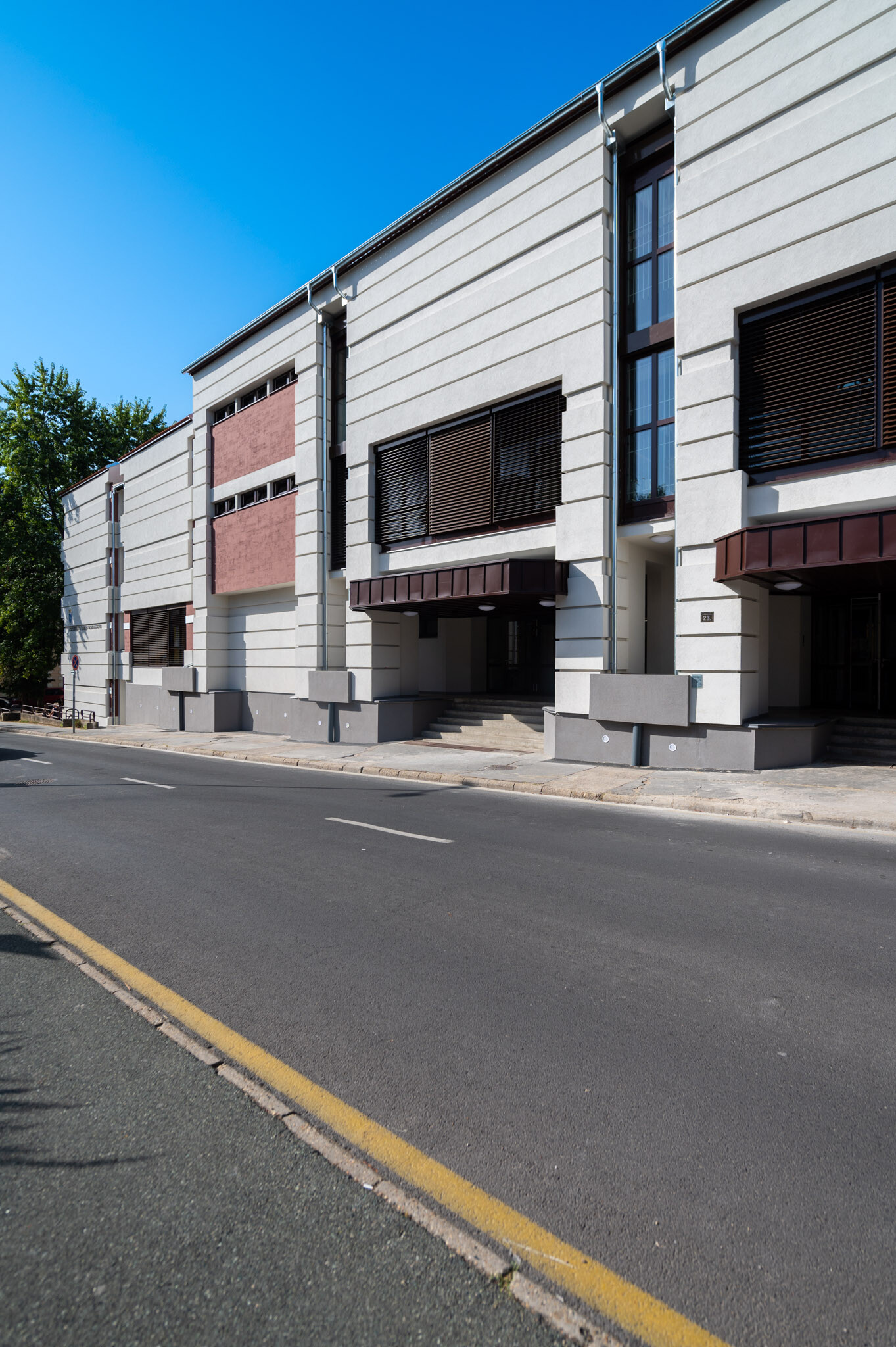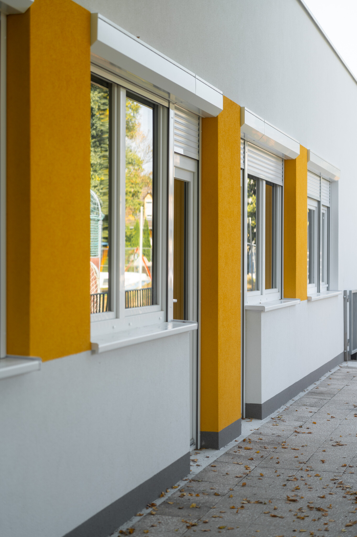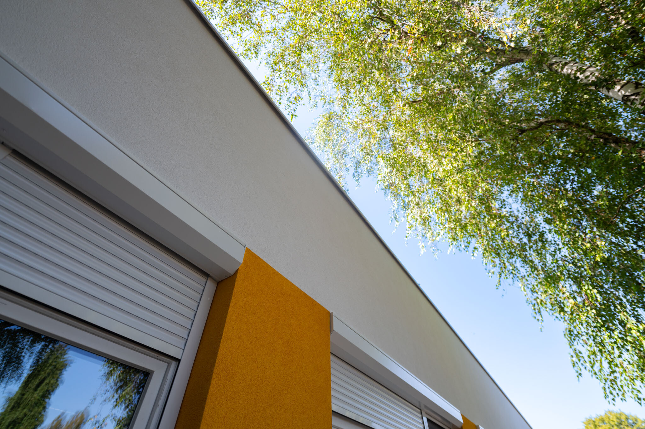 „bár a homlokzati nyílászárók műanyag szerkezetűek, kívülről alumíniumboritást kaptak, valamint az épület árnyékolását is alumínium lamellázat beépítésével oldottuk meg, ami nemcsak nagyon jó minőségű, de elegánsabbá is teszi a házat.”