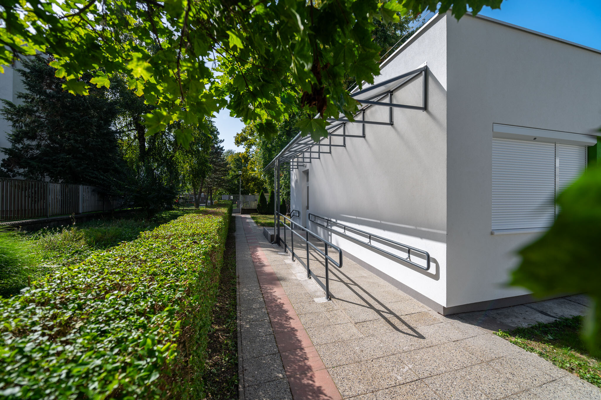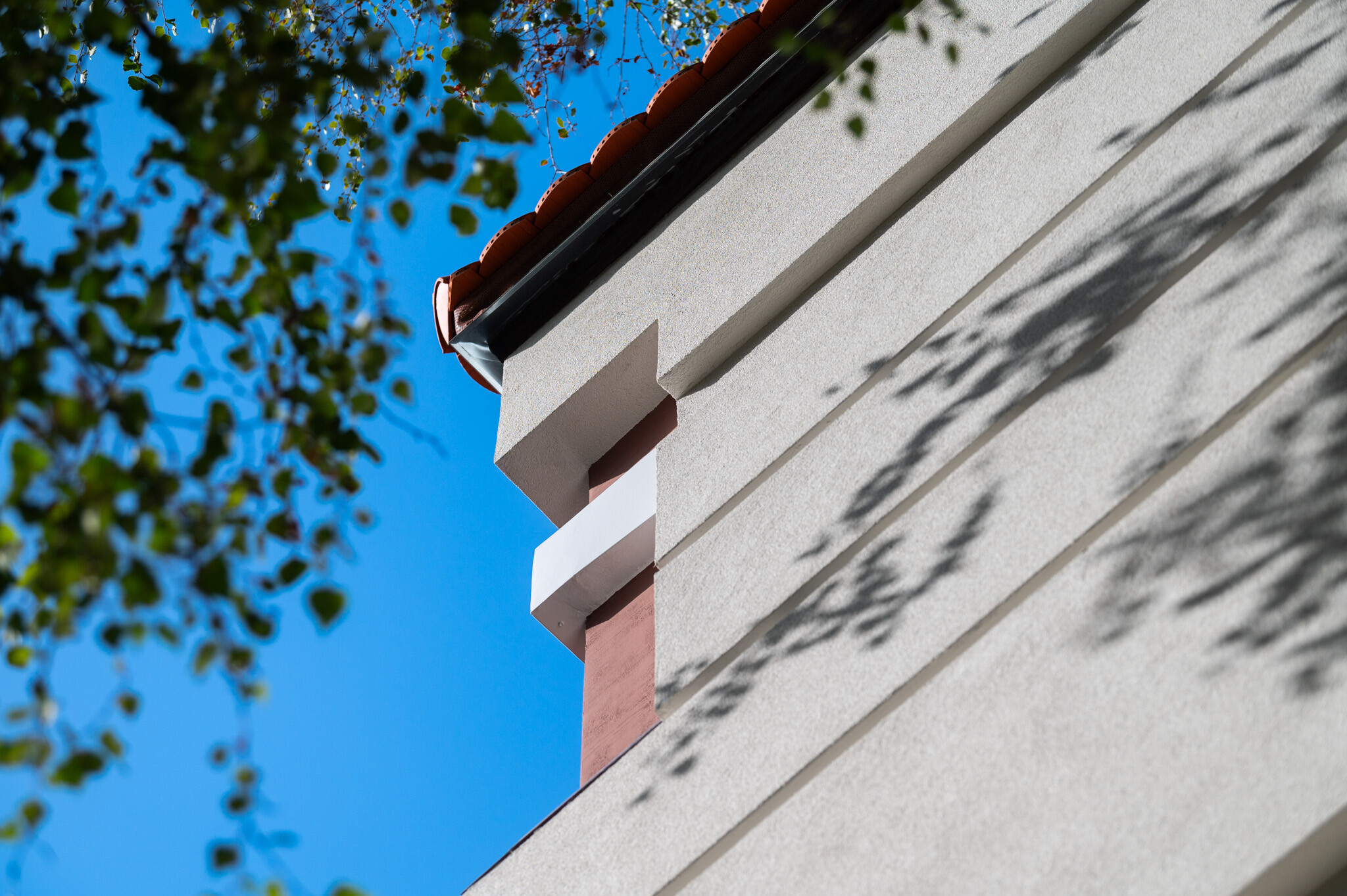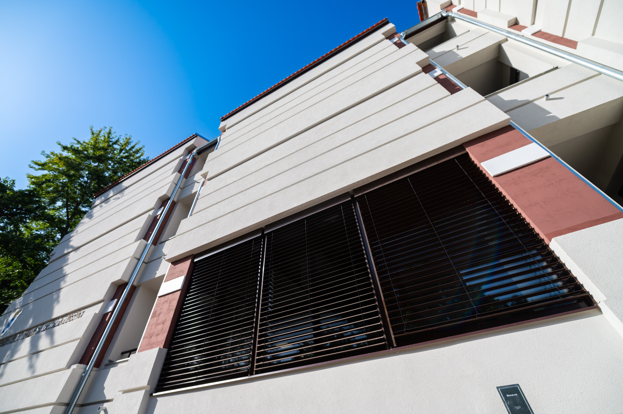 „bár a homlokzati nyílászárók műanyag szerkezetűek, kívülről alumíniumboritást kaptak, valamint az épület árnyékolását is alumínium lamellázat beépítésével oldottuk meg, ami nemcsak nagyon jó minőségű, de elegánsabbá is teszi a házat.”