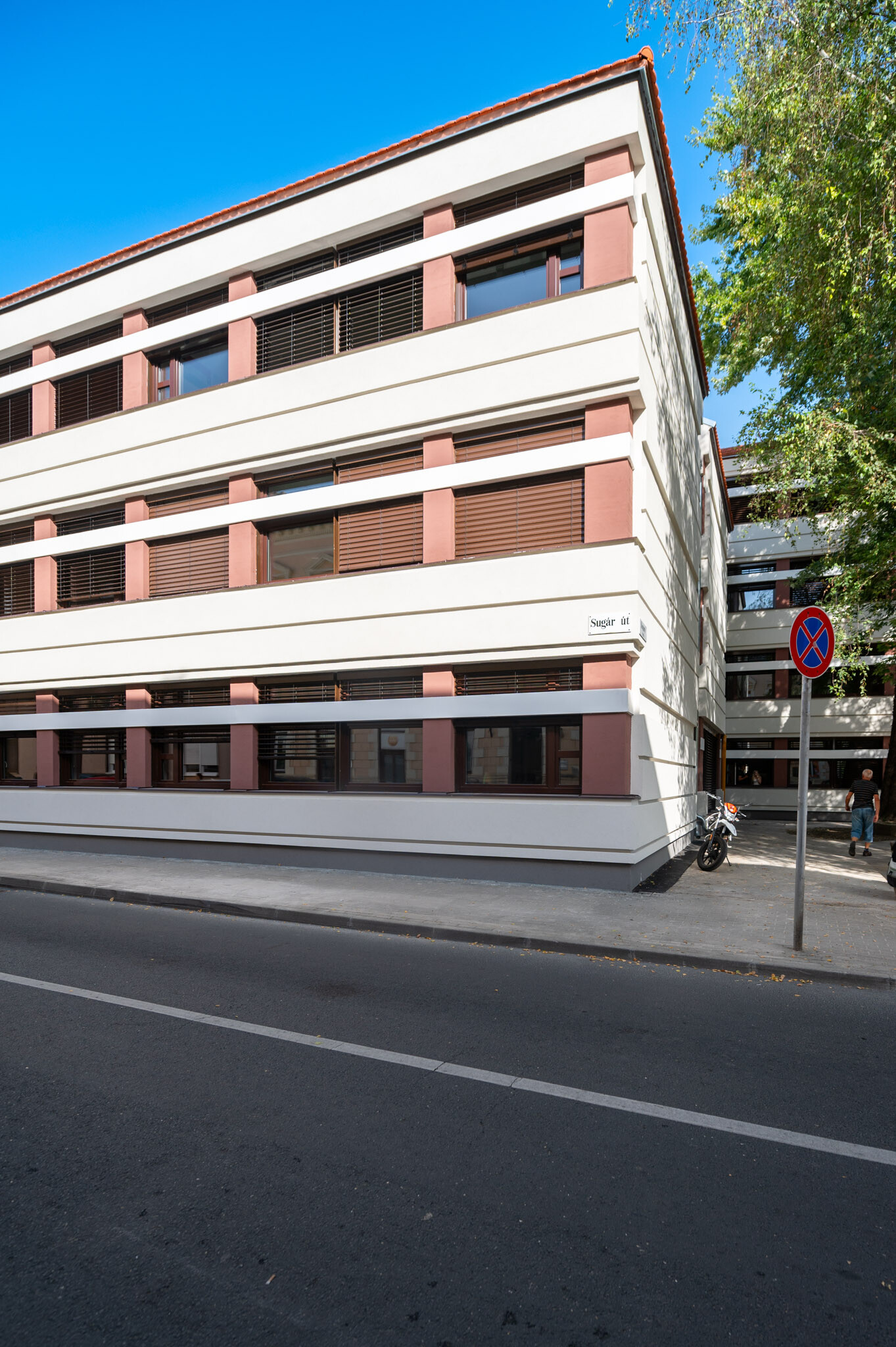 A projektben szintén megújult a ’90-es évek formajegyeit magán viselő Batthyány Lajos Gimnázium, amelyet a kivitelezőnek az építészeti értékek megtartása mellett sikerült kortárs anyagokkal frissítenie. „Az épület homlokzata kváderes kialakítású, erősen tagolt, modern megjelenésű, így ennek hőszigetelése igazi kihívás volt” – hangsúlyozta a projektvezetőm hozzátéve: