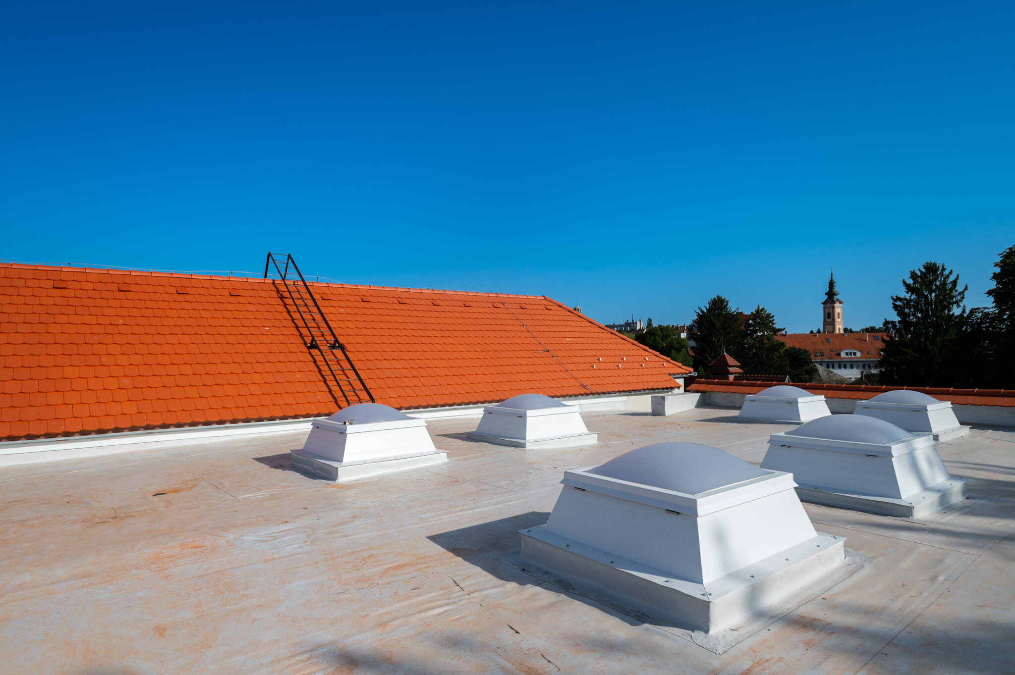 A gimnázium tetőzete is átfogó fejlesztést kapott: nem csak a lapostető szigetelését, a bevilágító kupolák cseréjét és PVC fedését is elvégezték, de a magastető héjazatának megújítására is lehetősége nyílt a kivitelezőnek. Fontos elem, hogy a homlokzati nyílászárók cseréje mellett annak hőszigetelése is megtörtént.