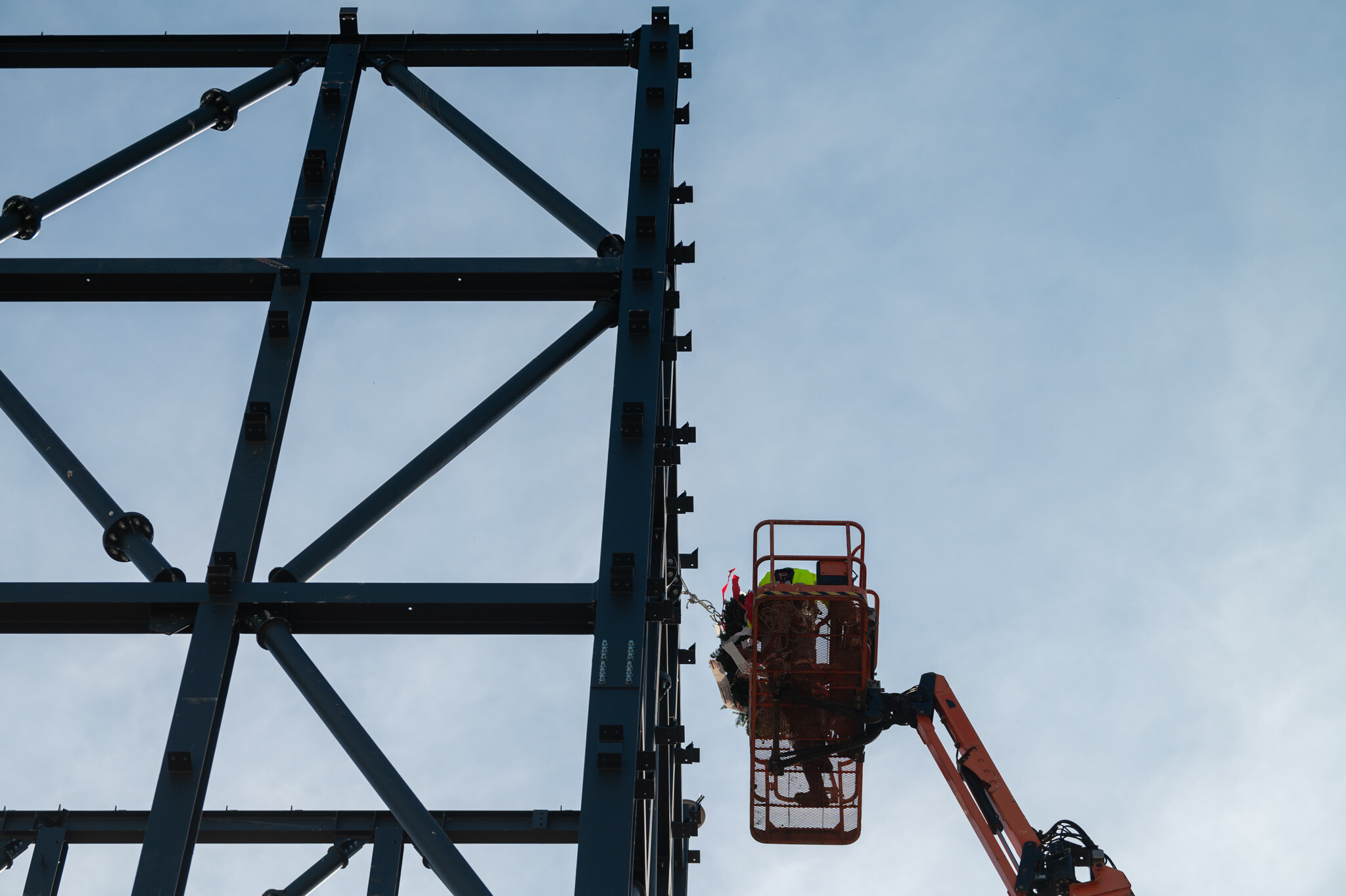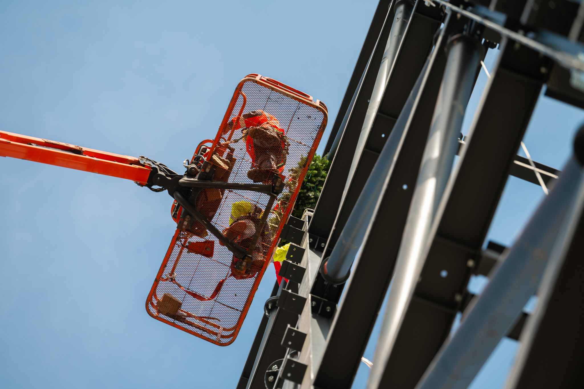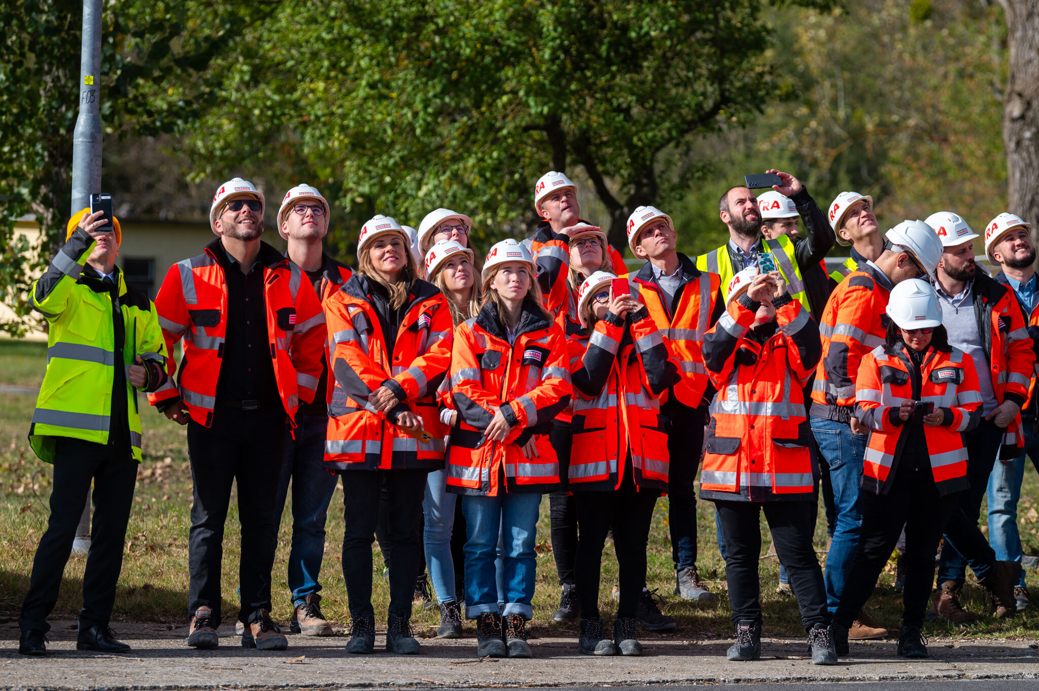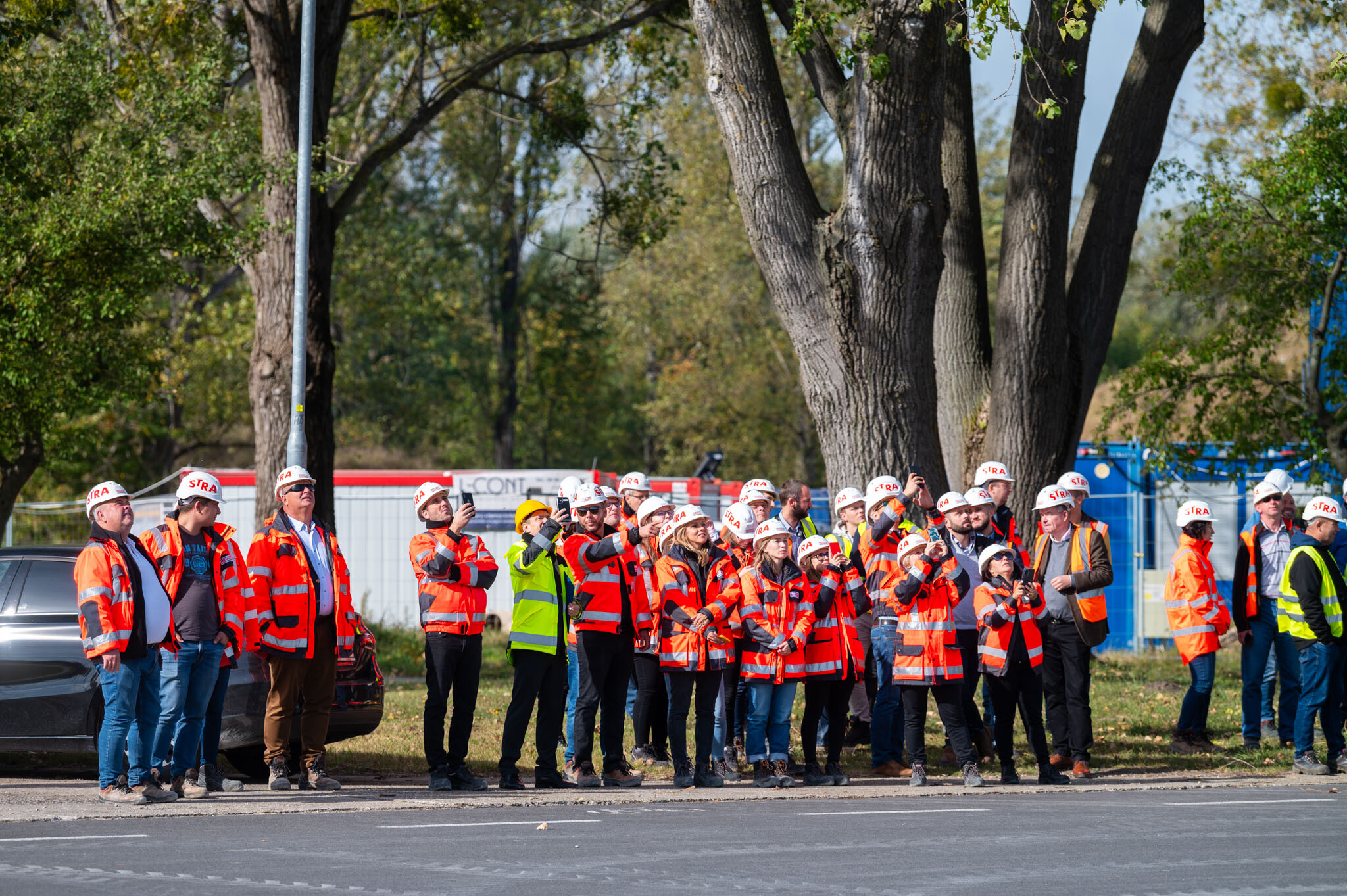 A Strabag 2022 november 10-én vette át a munkaterületet, ahol a kezdeti tervezési nehézségek miatt kicsit lassabban indult a projekt a tervezettnél, de a problémákat sikerült orvosolni és mára jó ütemben halad a kivitelezés. Augusztus 2-án elkezdték a felszerkezet építését és 12 hét alatt elérték az épület jelenleg is látható, előrehaladott készültségi állapotát, amelyhez