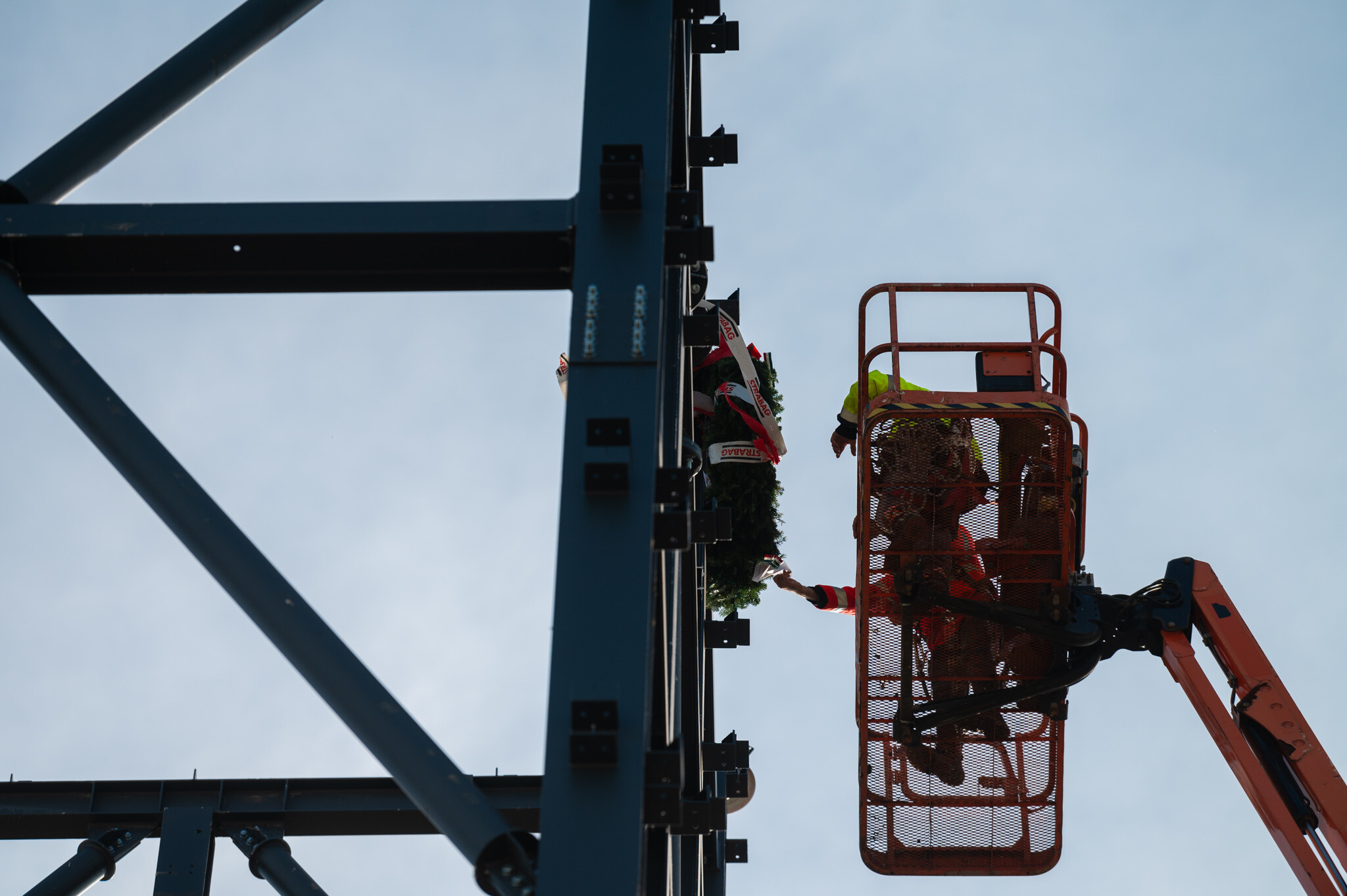 Ott Gábor, a NATO Légiszállítást Kezelő Programiroda infrastrukturális és létesítménygazdálkodási részlegének vezetője kiemelte: elérni a tartószerkezet legmagasabb pontját jelentős mérföldkő számukra is, hiszen a 2018-ban indult projekt fordulópontja ez. A tanulmánytervek készítése után az amerikai légierő tervezési irányelvei alapján kezdték el egy állandó jellegű légi teherszállítási létesítmény kialakítását, ami a korábbi, ideiglenesnek szánt sátor funkcióit veszi majd át, azokat ugyanakkor jelentősen kibővíti