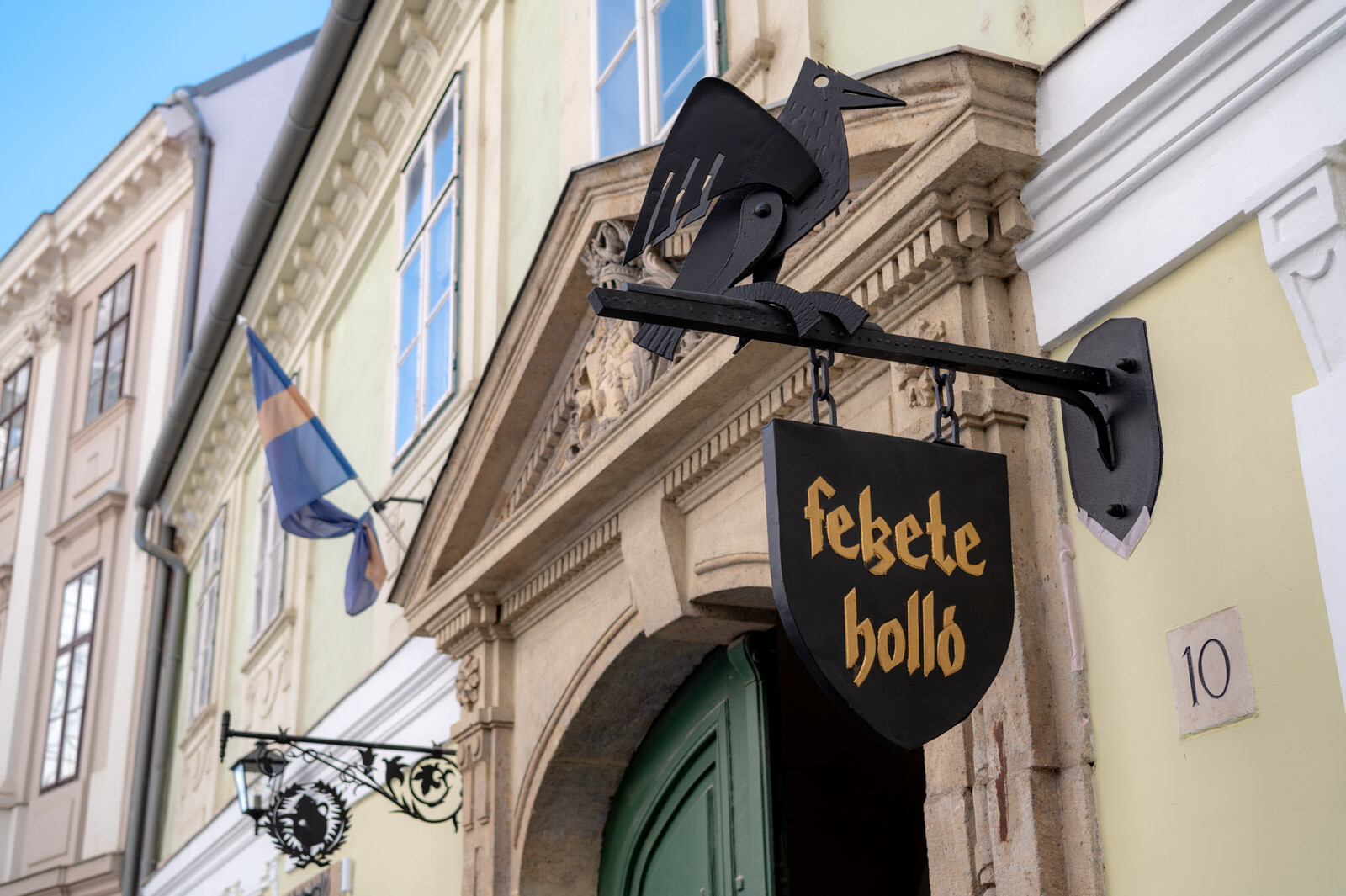 Kihívások és szép feladatok tették különlegessé a Fekete Holló külső-belső felújítási munkálatait a kivitelező számára. A kisvendéglő a történelmi Budapest szívében, a Budai Várban található, a város egyik leghangulatosabb utcájában, az Országház utca 10. alatt – írja magáról honlapján az étterem. Azt is megtudhatjuk, hogy Mátyás király címerállatáról kapott mostani nevét 1964 óta viseli, de már az 1930-as években Alpek Pál éttermeként funkcionált.