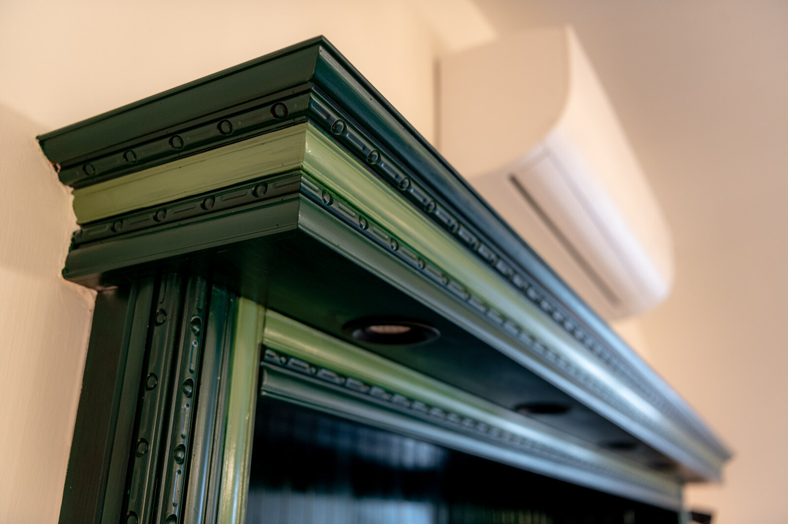 A mennyezetet, valamint az oldalfalakat újrafestették, helyenként hidegburkolattal burkolták.