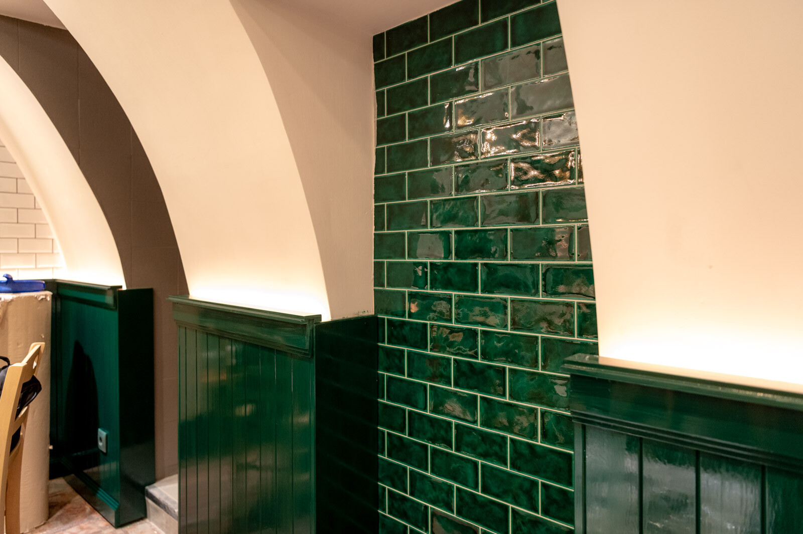A telepített oldalfalburkolat háttérvilágítást kapott, melyhez passzolnak a különleges padok. Sajátos lakatos csillárokat szereltek fel, melyeknek mind a kialakítása, mind a mennyezetbe való rögzítése rendkívül nagy odafigyelést igényelt a műemlékvédelmi elvárások miatt. A csigákat lézervágóval vágták ki, amelyeket egyesével, kézzel szereltek össze.