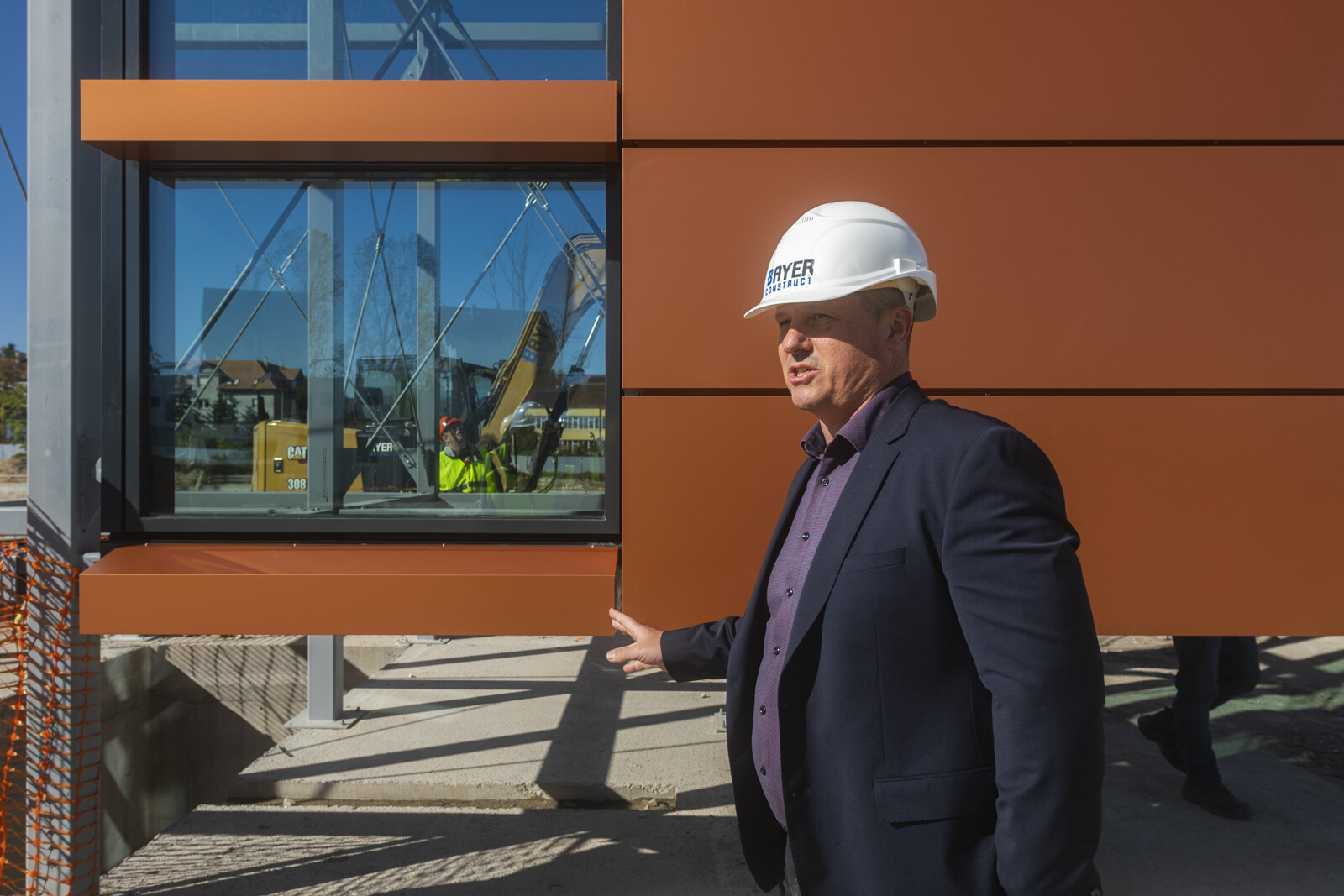 „Az irodaházak esetében az elemes homlokzatokhoz általában kétrétegű üveget használnak. A Bayer Construct az első, amely háromrétegű üveget alkalmaz. Ezek ugyan sokkal nehezebbek és költségesebbek, előállításuk is tovább tart, ám szigetelőképességük sokkal magasabb, s ebben nem akartunk kompromisszumot kötni.”