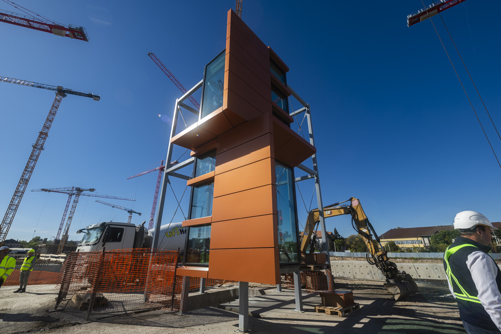 „Az elemes homlokzatokat általában utólag, emelőszerkezettel, alpintechnikával építik be, de mivel a ZVK ütemezéséhez ez a folyamat túlságosan lassúnak találtatott, olyan rendszerű kompozit elemeket kellett kialakítani, amik már a gyártósoron megkapják a végleges formájukat. Ezek megszervezése, tervezése rendkívül sok mérnökórát vett igénybe” – részletezte a projektvezető.