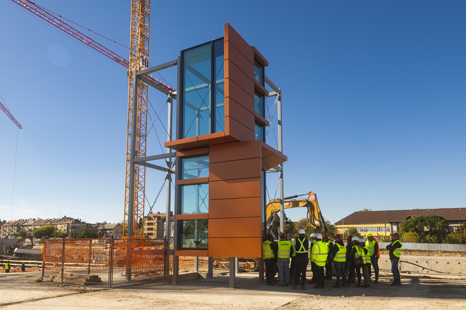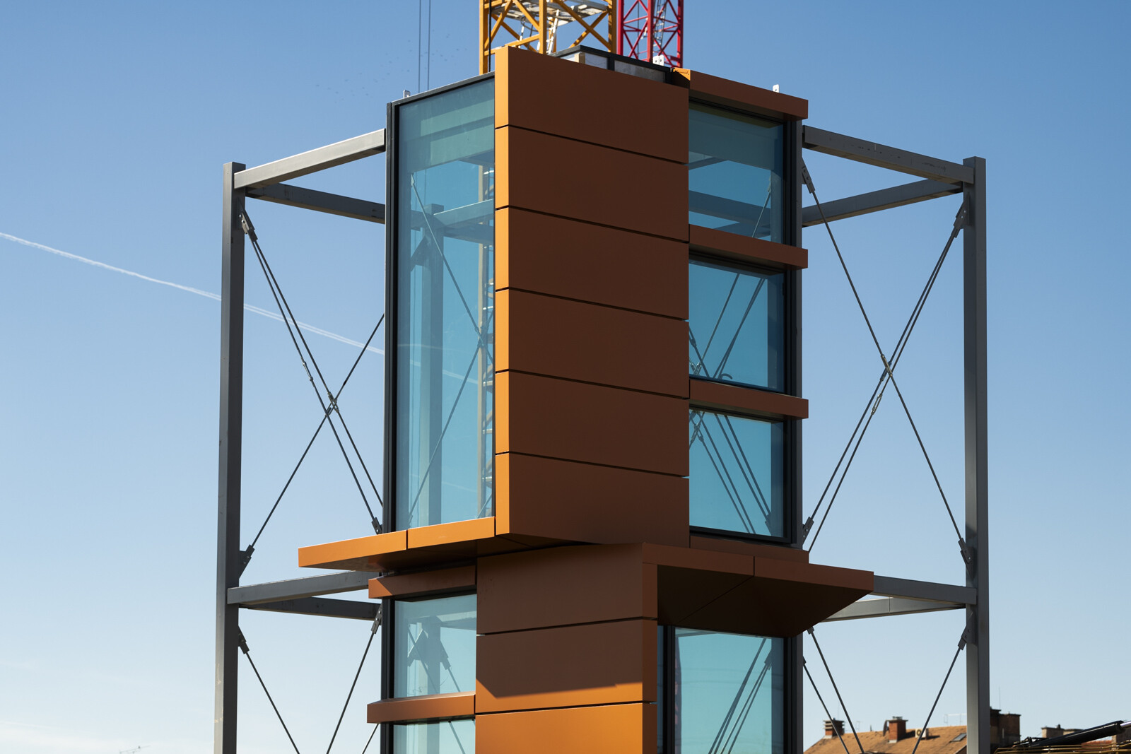 A forma és az anyag kiválasztásánál több kritériumnak is meg kellett felelni. A gyorsított kivitelezés érdekében olyan szerkezetet kerestek, amely könnyű, egyszerűen beépíthető, ugyanakkor időtálló. A nyílásszárók üvegfelületeit pedig úgy kellett kiválasztani, hogy biztosítsák az energetikai elvárásokat.
