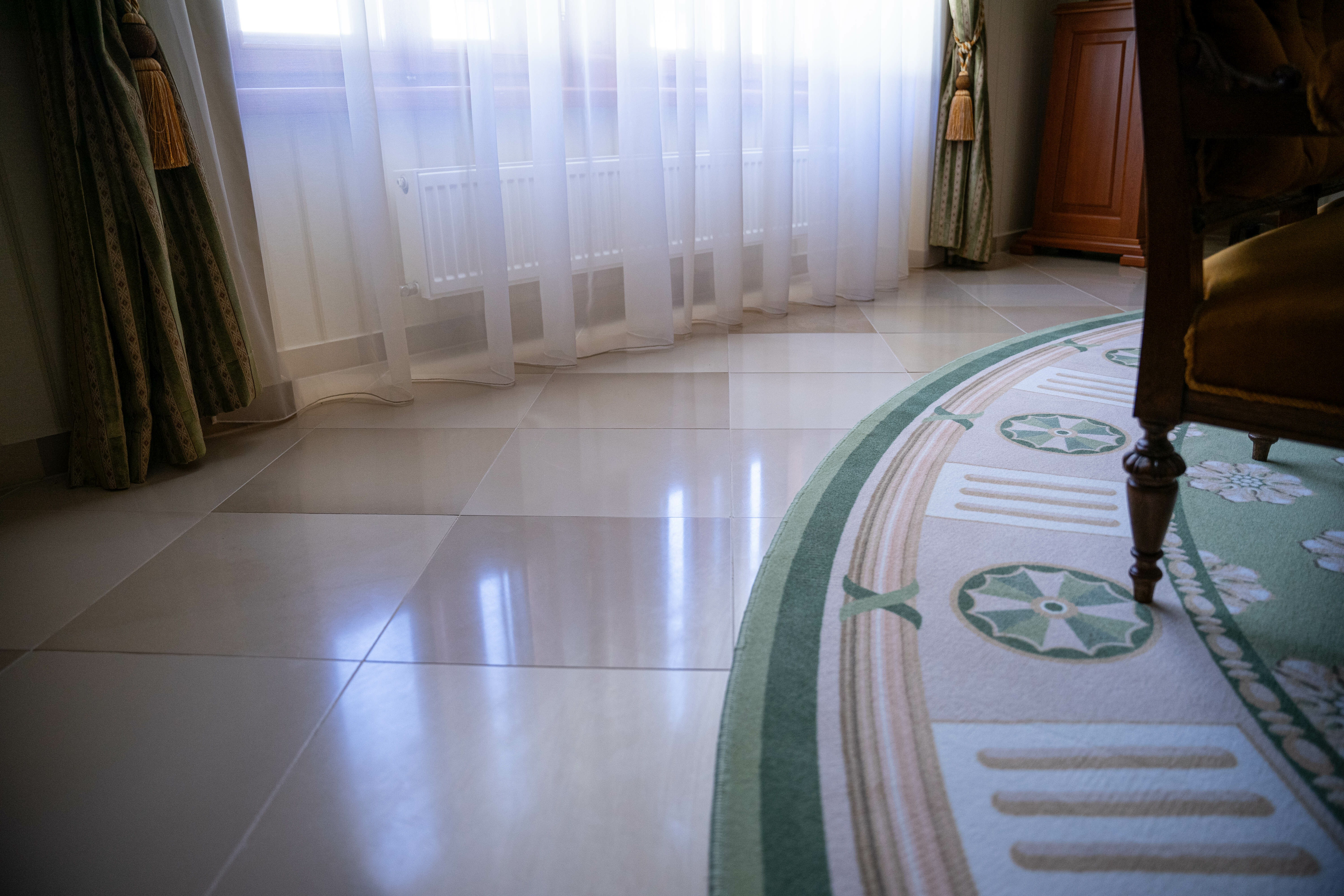 A palota éttermében került sor a 60x60 cm-es kerámia padlóburkolat fektetésére. A munkálatokat a gépészeti akna kialakítása előzte meg a fogadó aljzat alatt, amelyben a víz, áram és a légtechnikai gépészetet helyezték el. Ezt követte a betonozás, a bitumenes vízszigetelés és a hőszigetelés, s végül a burkolati rétegrendet fogadó aljzatbeton kialakítása. A nagyméretű lapok és az ebből fakadó burkolatkép miatt itt is szükség volt a MAPETEX RENDSZER alkalmazására. A MAPETEX RENDSZER-nek köszönhetően így nem volt szükség a dilatációs hézagok átvezetésére a burkolatba, ami rontotta volna a 800 m2-es területre elképzelt burkolati mintát. A rétegrend megegyezett a mészkőburkolat kialakításnál már alkalmazott megoldással: