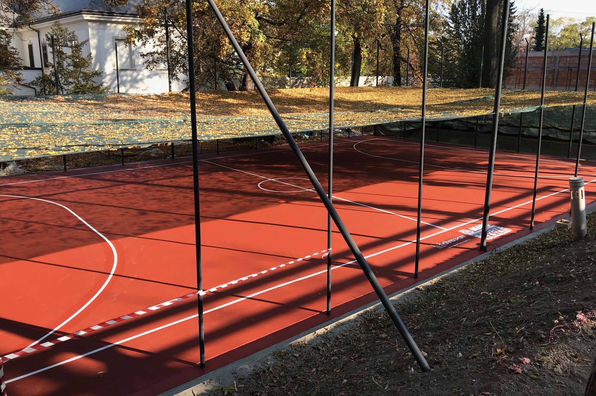 A régi aszfalt felcsiszolását követően a felület javítását és kiegyenlítését úgy oldották meg, hogy ADESILEX P9 ragasztó és LATEX Plus rugalmasságnövelő adalékszer keverékét vitték fel a felületre. A sportburkolat kialakításának első lépésként a rendelkezésre álló aljzatra 4 mm vastagságú MAPECOMFORT R gumi alátétszőnyeget fektettek le, amelyet az ULTRABOND Turf 2 Stars ragasztóanyaggal rögzítettek. A MAPECOAT TNS Primer EPW kétkomponensű epoxi alapozó után MAPECOAT TNS White Base Coat színezett, válogatott töltőanyagokat tartalmazó akrilgyanta alapozót és kitöltőpasztát alkalmazta a kivitelező. Ezt követően a MAPECOAT TNS FINISH, MAPECOAT TNS COLOR és MAPECOAT TNS PAINT akrilgyanta bevonatot vitték fel, végül pedig a vonalakat MAPECOAT TNS LINE vizes bázisú, színezett akrilgyanta festékkel rajzolták meg.
