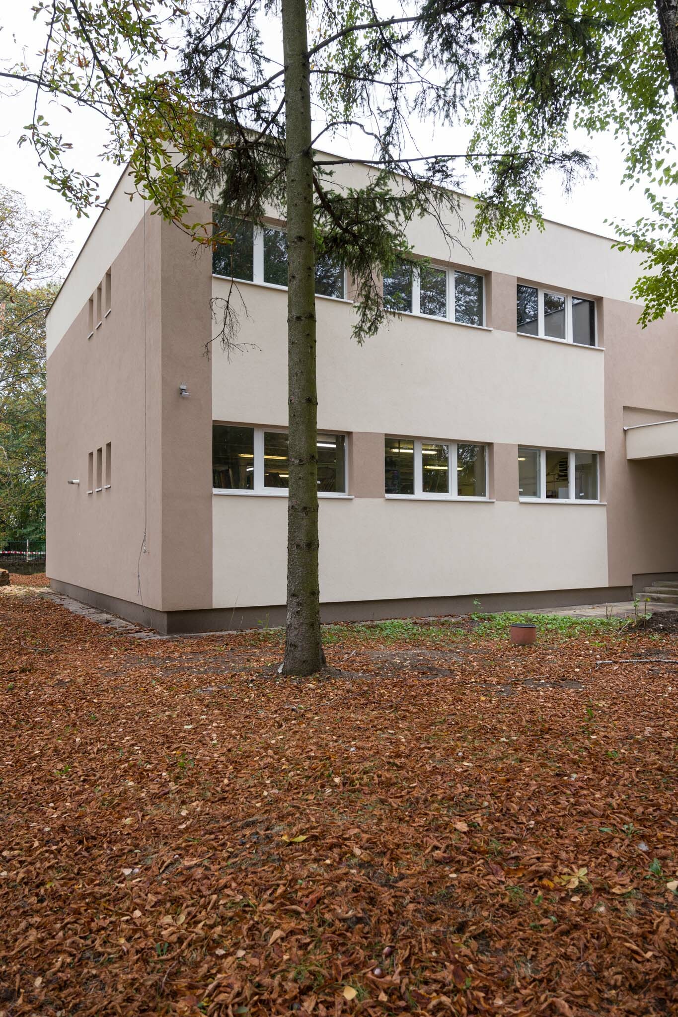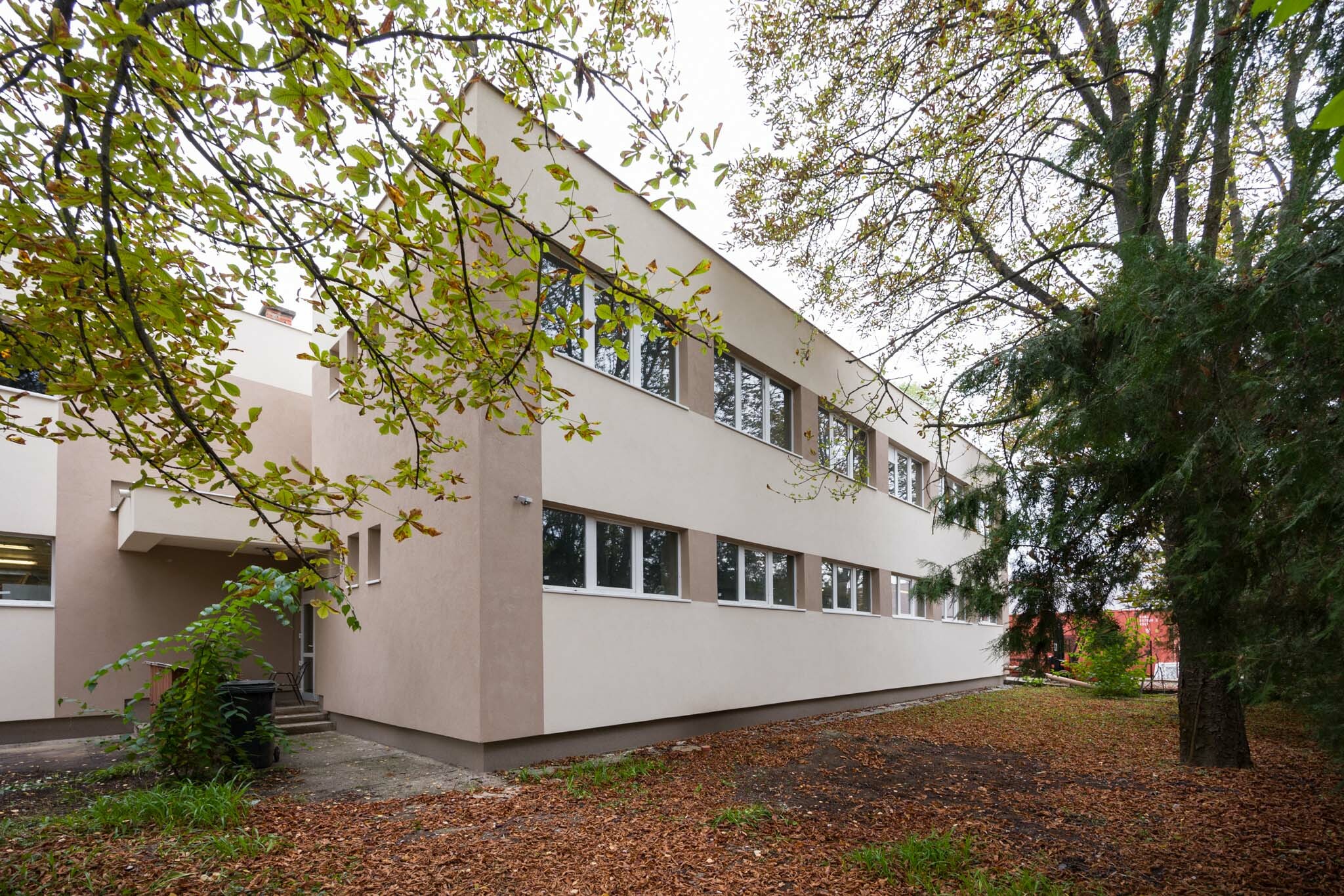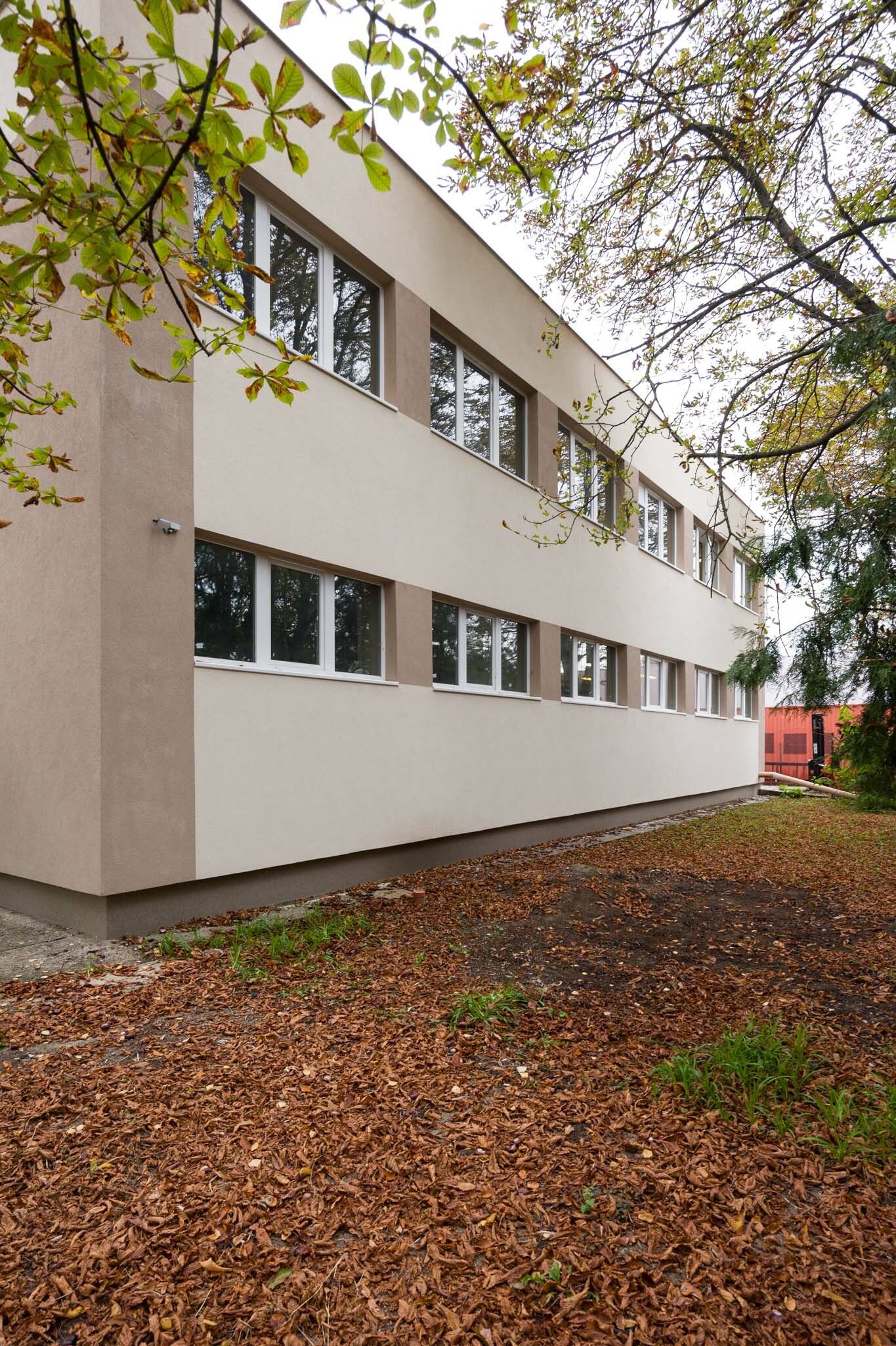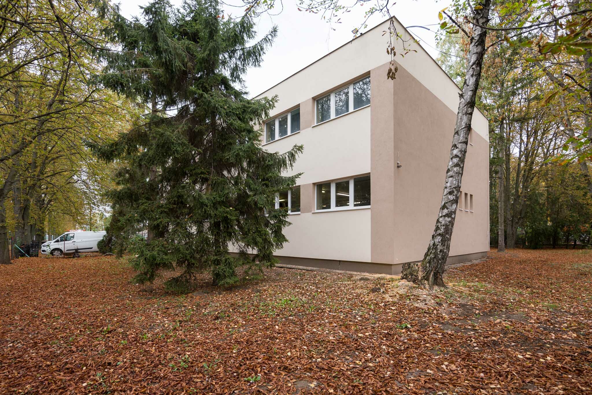 A vízzárási funkcióját már épp csak ellátni képes, szigetelés nélküli zárófödém teljes felújítása is elkészült, itt a PVC vízszigetelés mellett 20 cm EPS hőszigetelést is alkalmaztak a szakemberek. Energetikai felújításuk másik alappillére egy erre került 41 kWp-os napelemrendszer kiépítése volt, amelynek méretezésénél figyelembe vették a környező a fák árnyékolásának negatív hatását is.