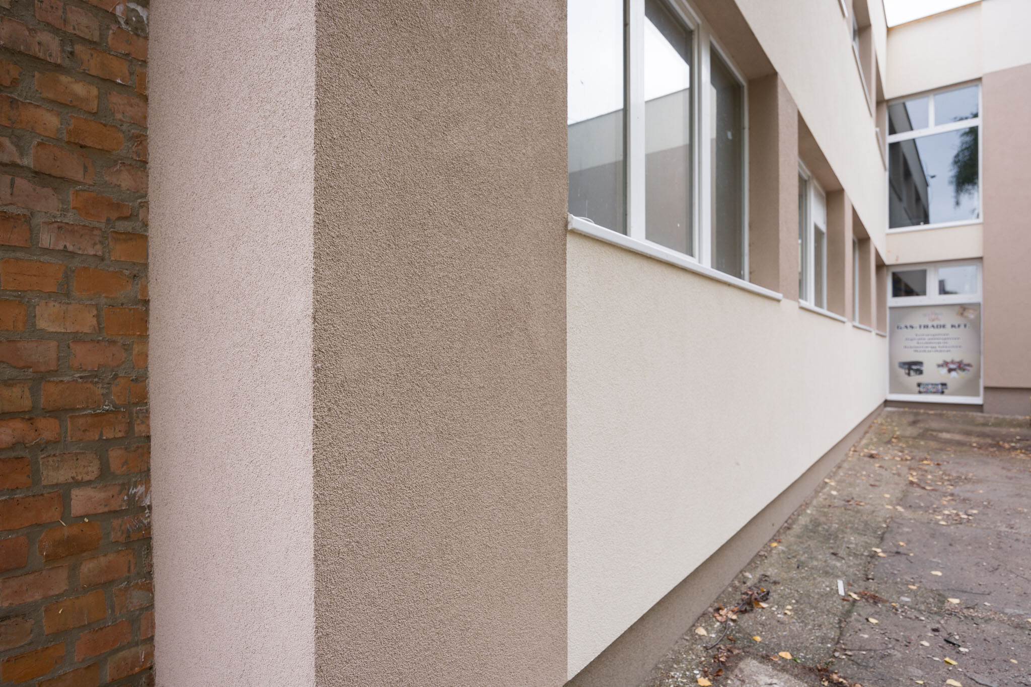 Elsholtz Gábor, a Cemix Hungary Kft. regionális projektvezetője avatta be lapunkat a részletekbe, elmondása szerint a Thermo System homlokzati és lábazati hőszigetelő rendszert választották a 800 négyzetméteres épület szigeteléséhez, amelyből úgy 440 négyzetméternyi területet pályázati forrásból korszerűsíthetett a megrendelő.