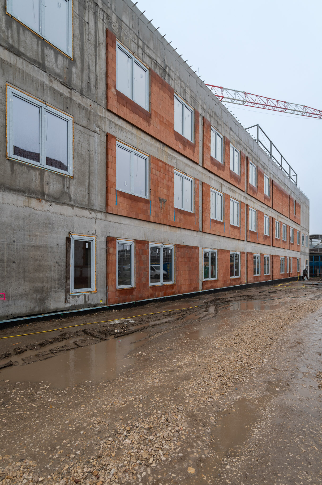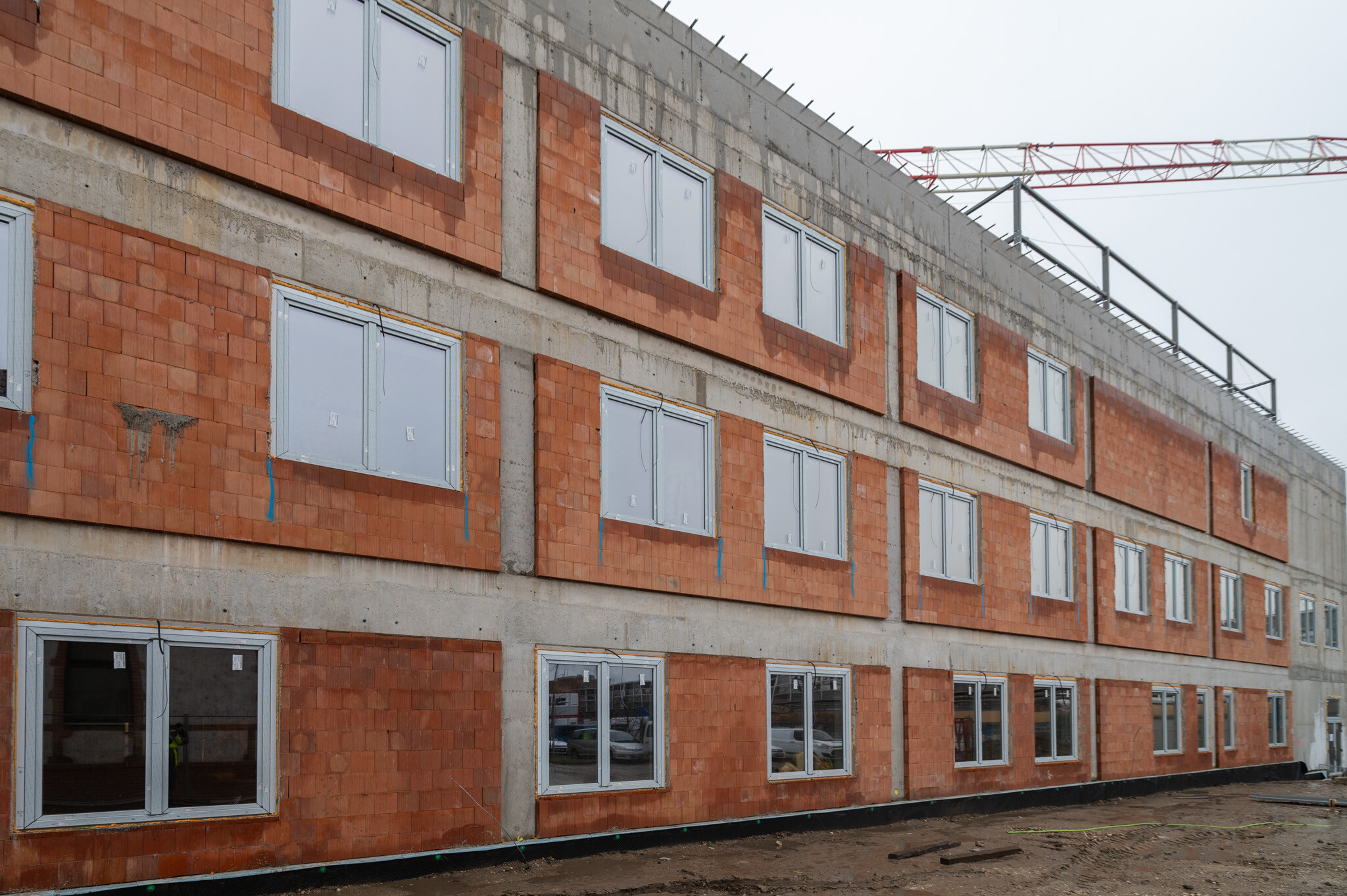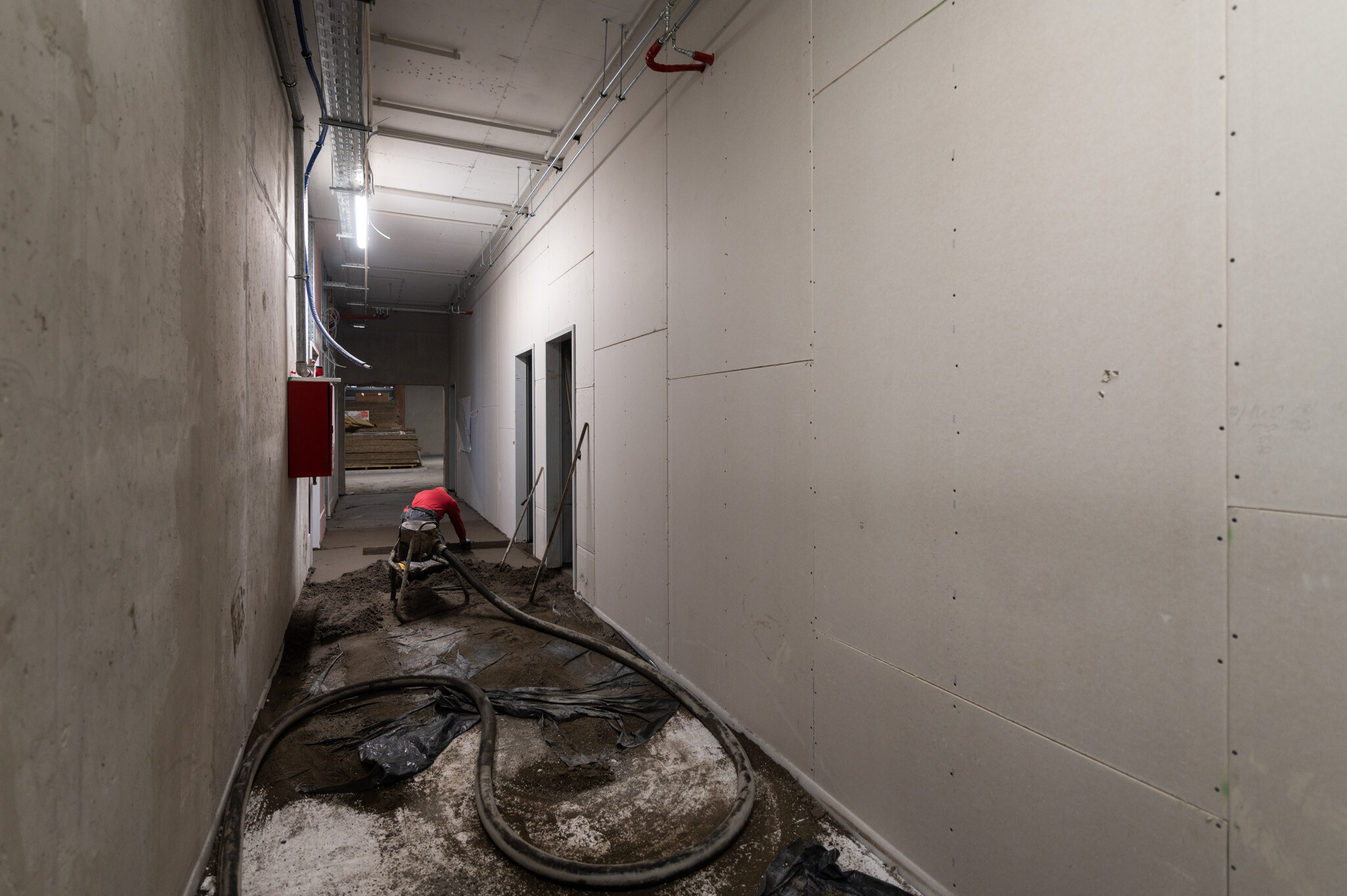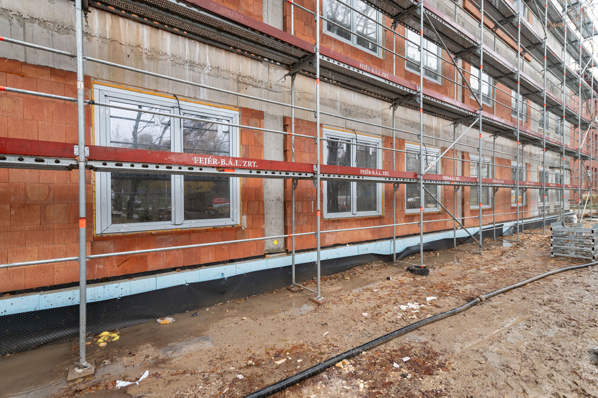 Az építkezés előrehaladásáról Pető Anitát, az Épkar építésvezetőjét kérdeztük, aki elmondta: jelenleg olyan belső szakipari munkák zajlanak az épületben, mint a gépészeti és az elektromos szerelés. Más hasonló jellegű feladatokkal már el is készültek, így a gipszkarton válaszfalakat felépítették, illetve az esztrcihezést is hamarosan befejezik. Mindeközben elrajtolnak a festési előkészületek és a vizesblokkok hidegburkolása is hamarosan megkezdődik. Megemlítette még, hogy a homlokzati nyílászárókat (mind az ajtókat, mind pedig az ablakokat) már beépítették és jelenleg