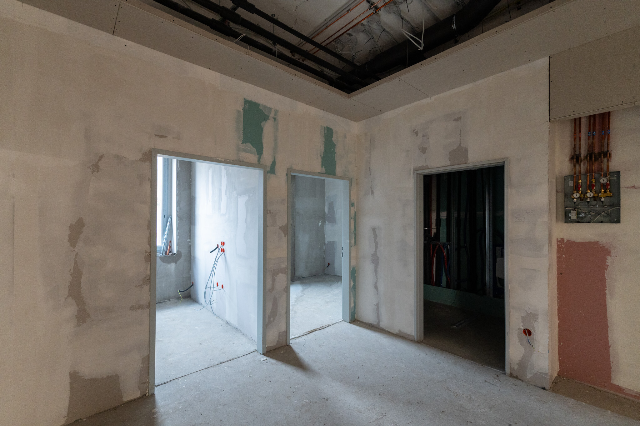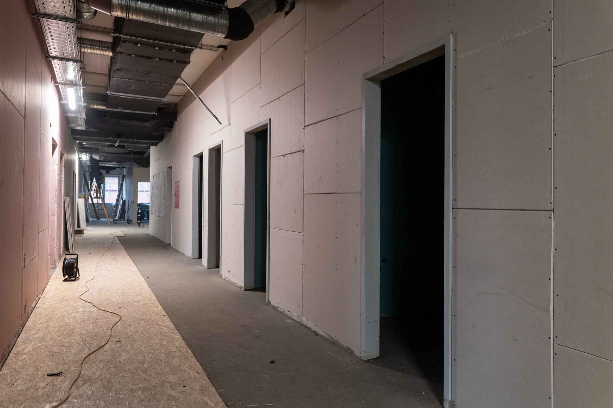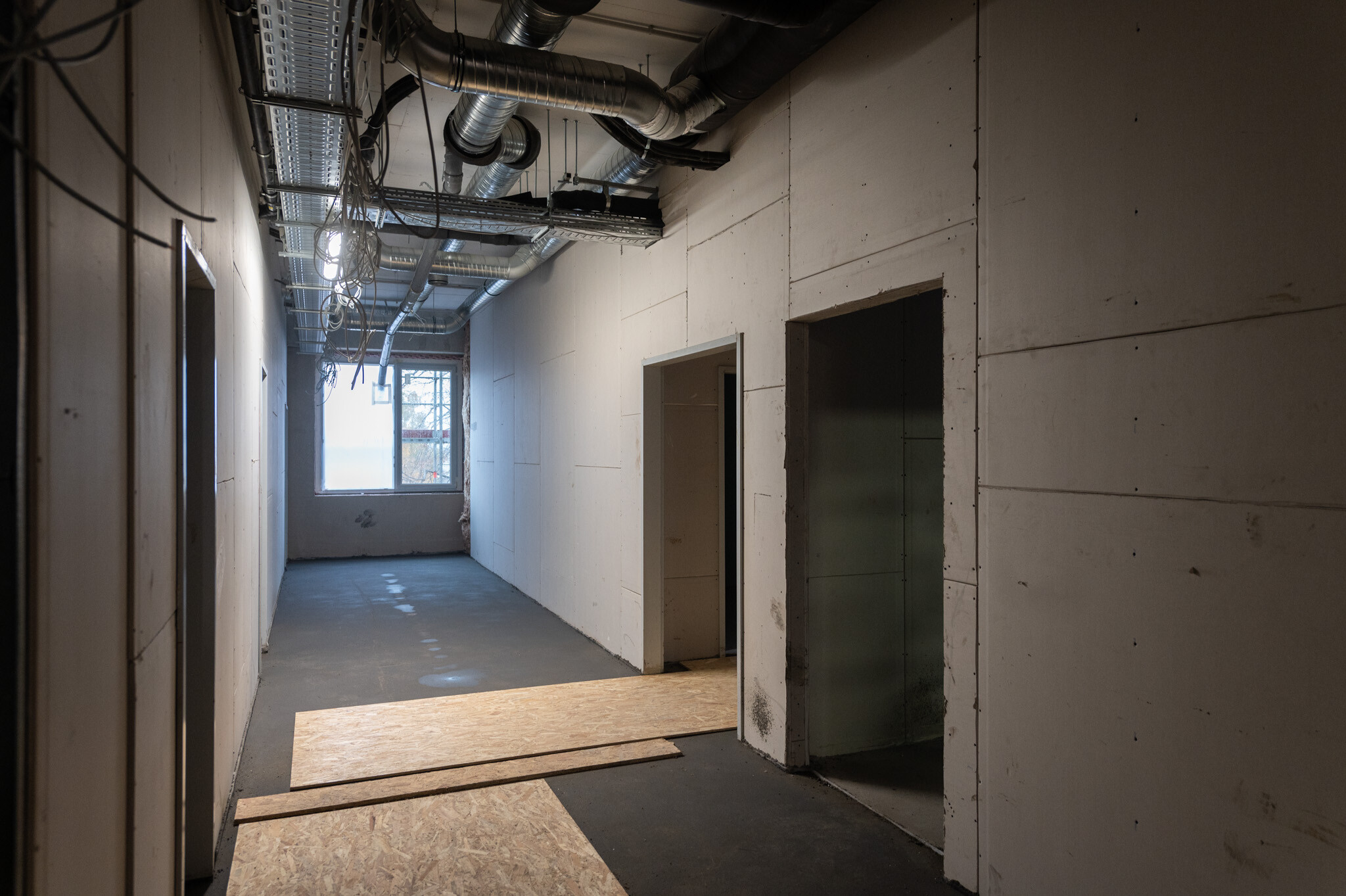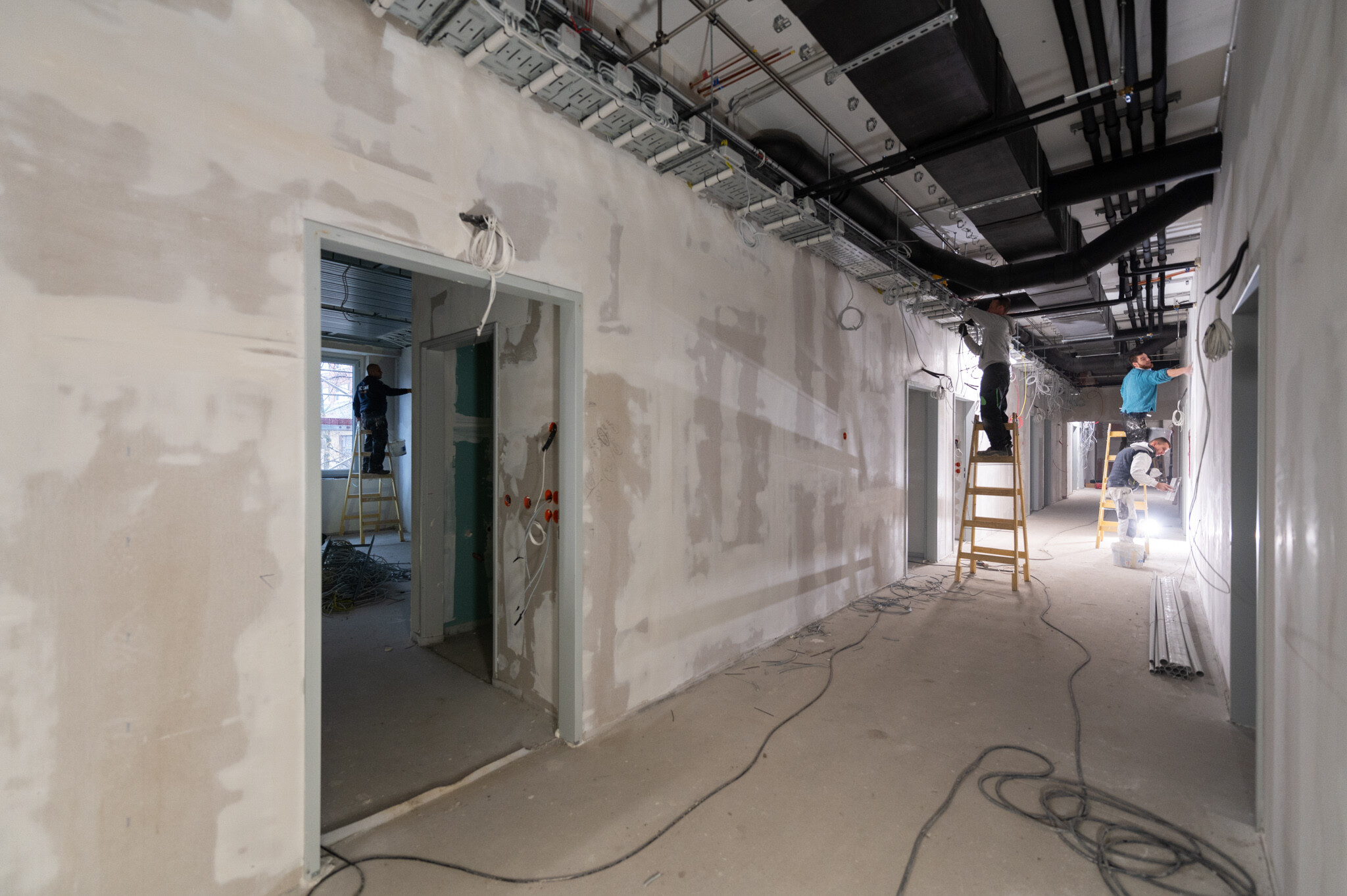 Az építkezés előrehaladásáról Pető Anitát, az Épkar építésvezetőjét kérdeztük, aki elmondta: jelenleg olyan belső szakipari munkák zajlanak az épületben, mint a gépészeti és az elektromos szerelés. Más hasonló jellegű feladatokkal már el is készültek, így a gipszkarton válaszfalakat felépítették, illetve az esztrcihezést is hamarosan befejezik. Mindeközben elrajtolnak a festési előkészületek és a vizesblokkok hidegburkolása is hamarosan megkezdődik. Megemlítette még, hogy a homlokzati nyílászárókat (mind az ajtókat, mind pedig az ablakokat) már beépítették és jelenleg
