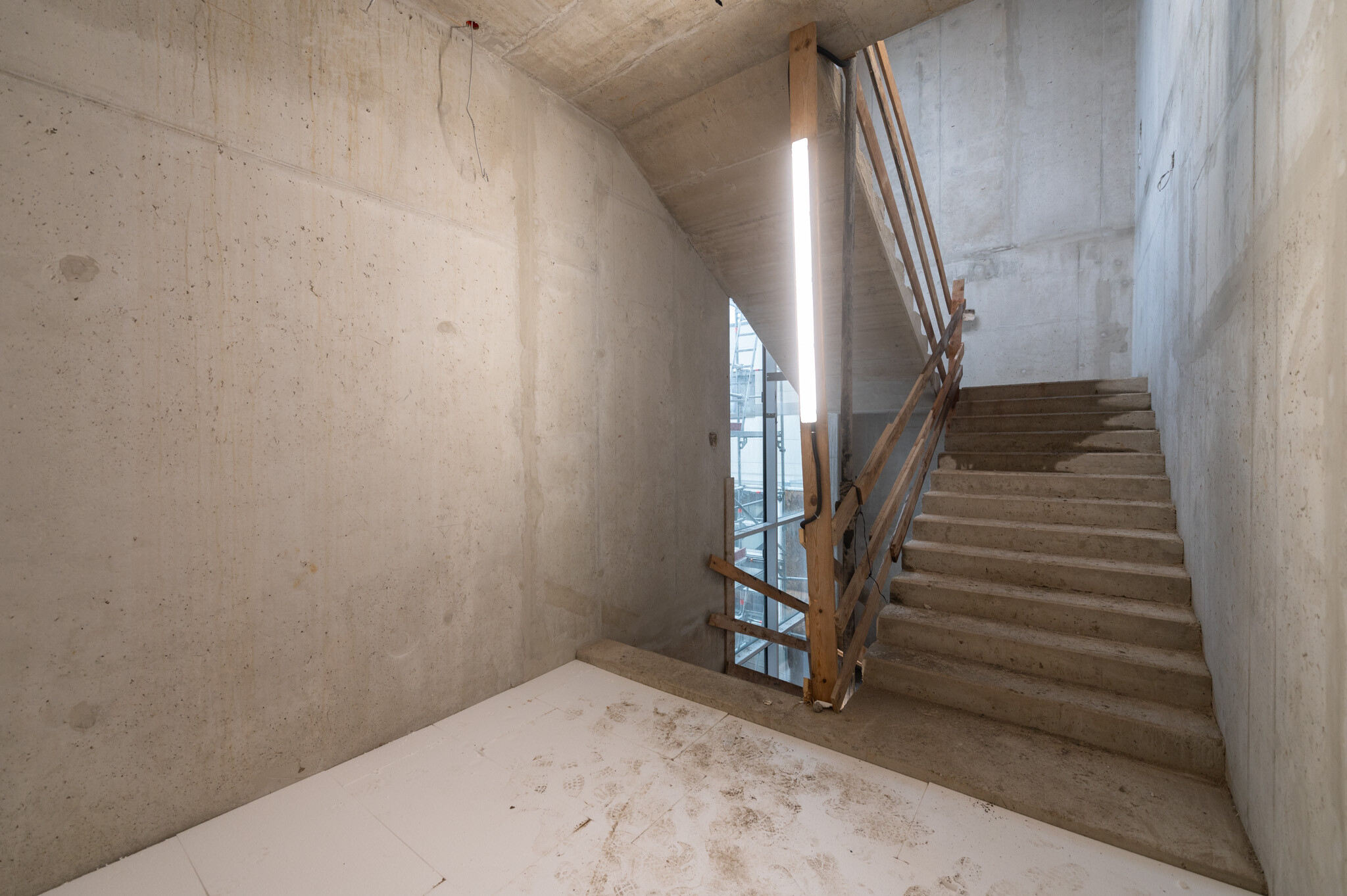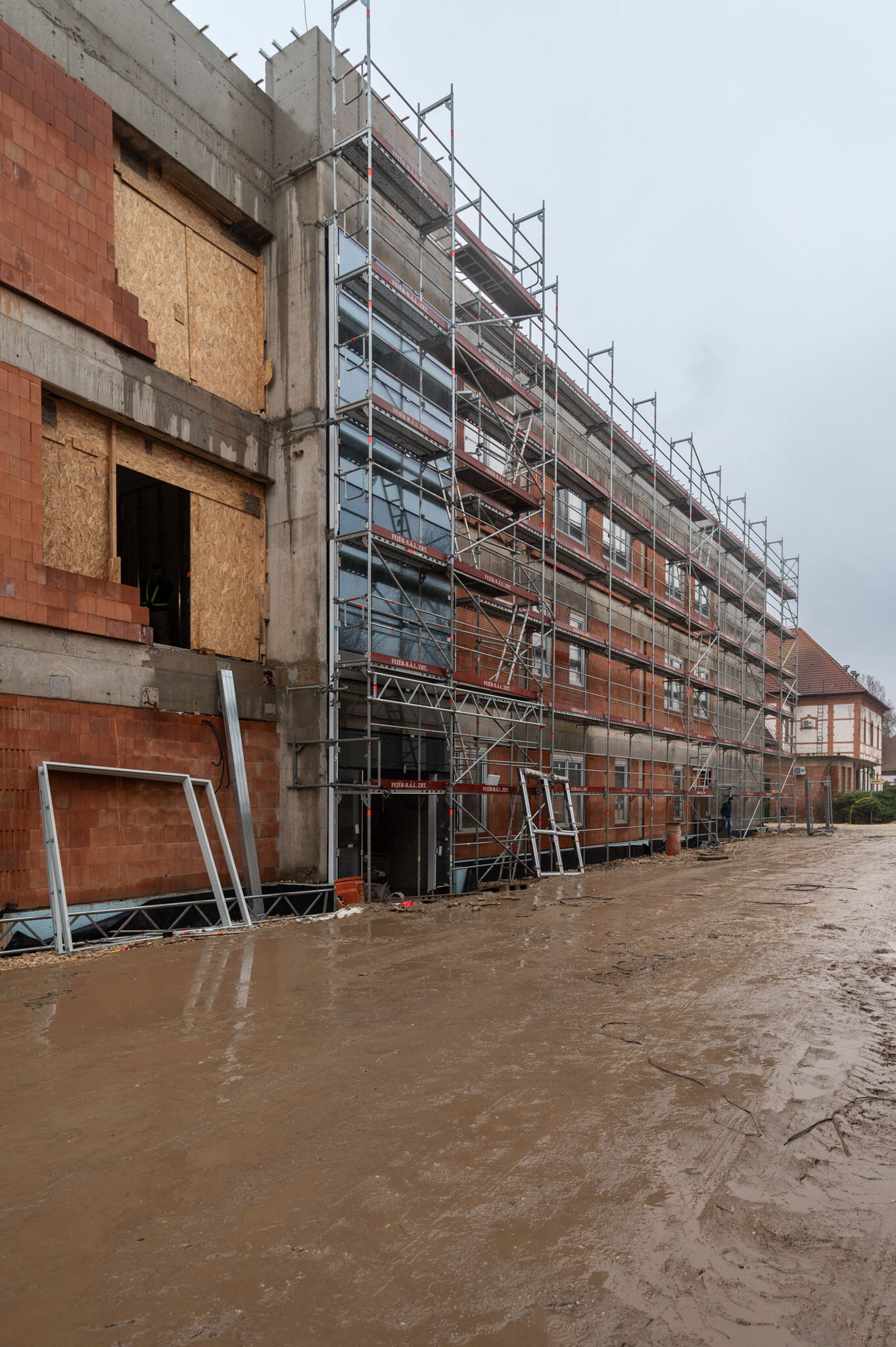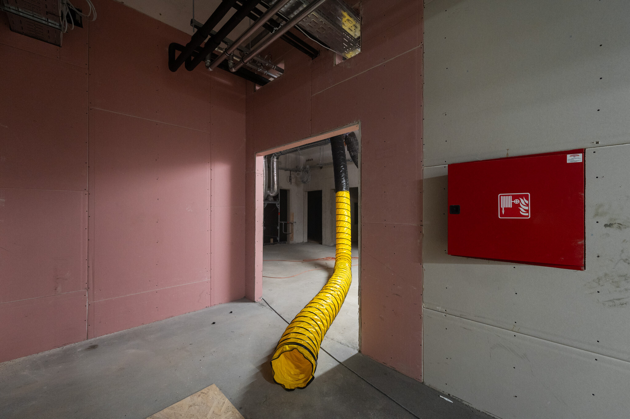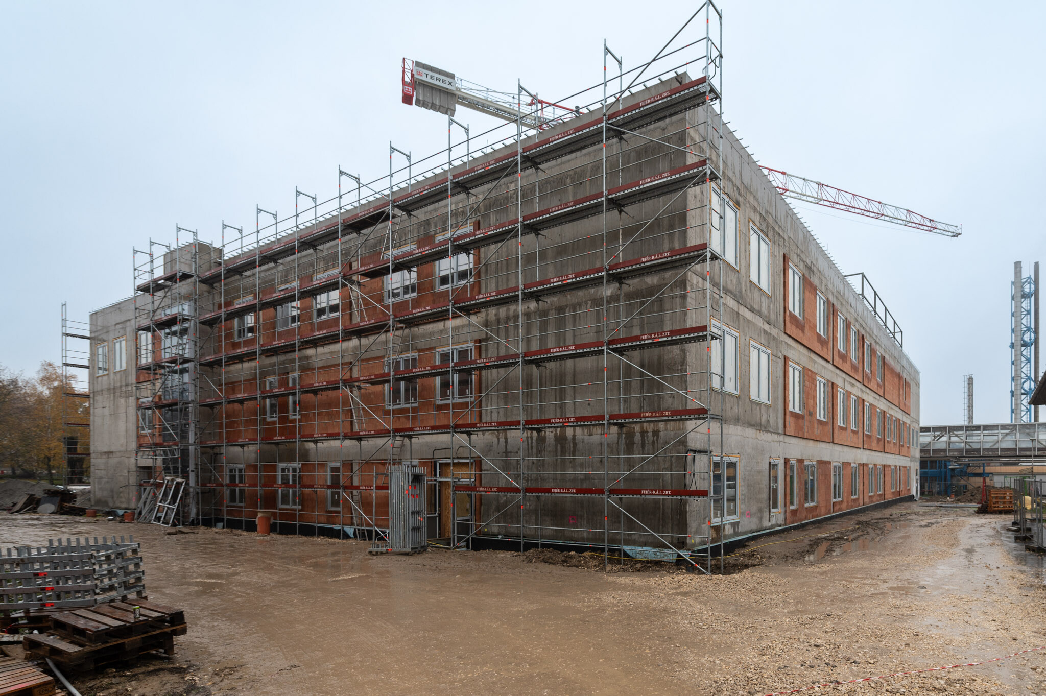 Az építkezés előrehaladásáról Pető Anitát, az Épkar építésvezetőjét kérdeztük, aki elmondta: jelenleg olyan belső szakipari munkák zajlanak az épületben, mint a gépészeti és az elektromos szerelés. Más hasonló jellegű feladatokkal már el is készültek, így a gipszkarton válaszfalakat felépítették, illetve az esztrcihezést is hamarosan befejezik. Mindeközben elrajtolnak a festési előkészületek és a vizesblokkok hidegburkolása is hamarosan megkezdődik. Megemlítette még, hogy a homlokzati nyílászárókat (mind az ajtókat, mind pedig az ablakokat) már beépítették és jelenleg