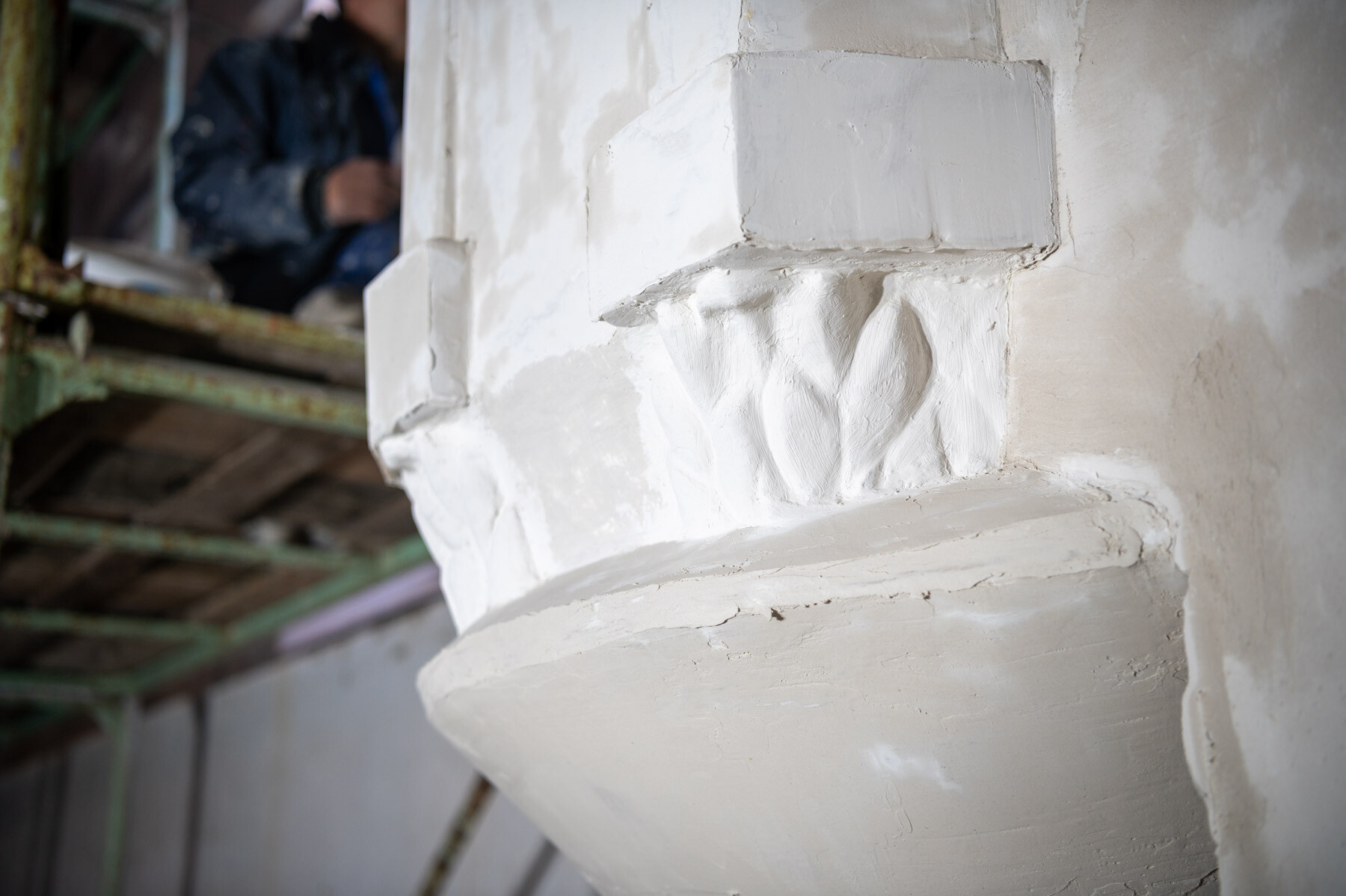Juhász Lászlótól azt is megtudtuk, hogy a vakolás megkezdése előtt a falakat injektáló anyaggal szigetelték a talajnedvesség kapillárisokon történő felszívódása ellen.