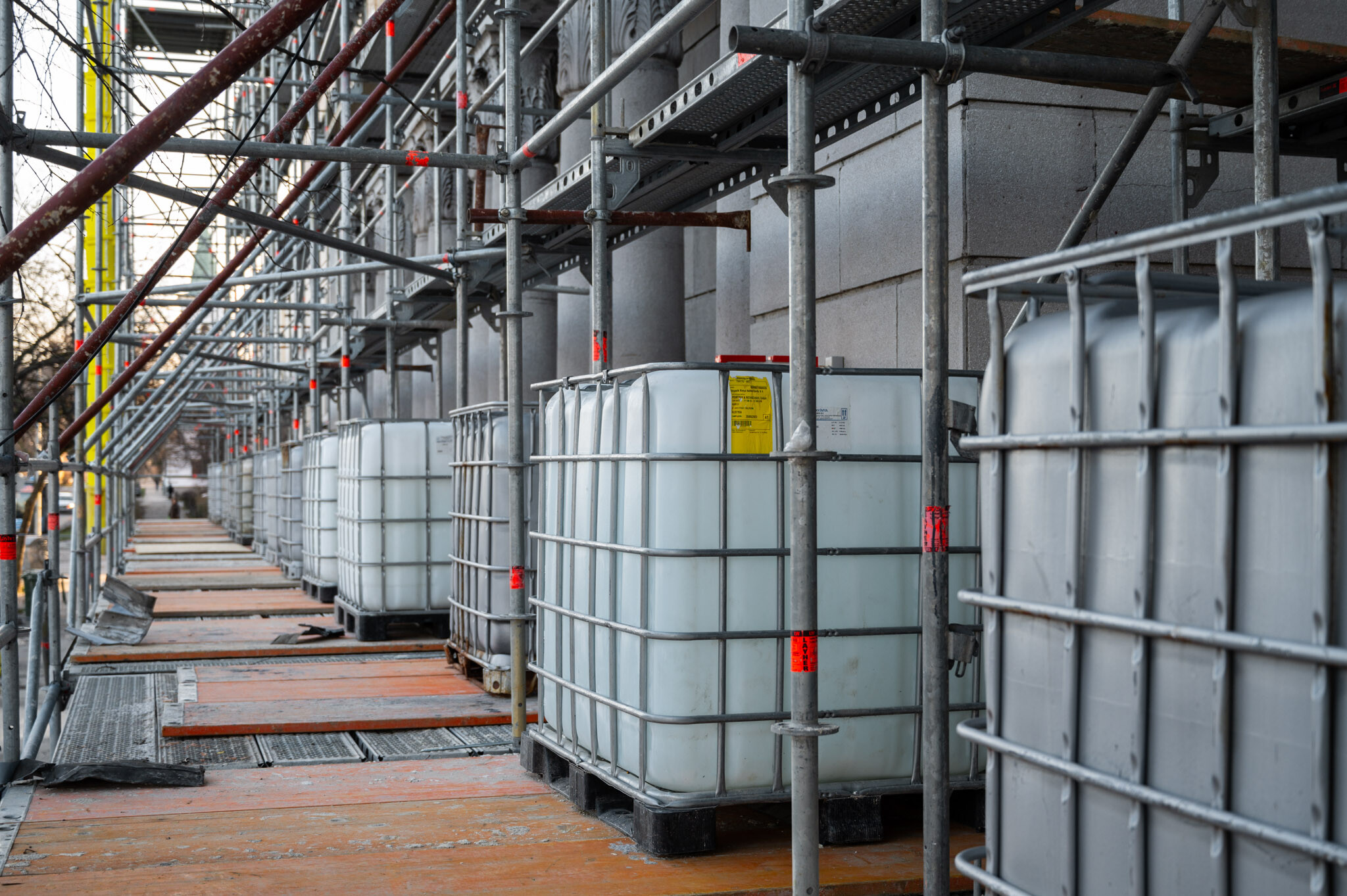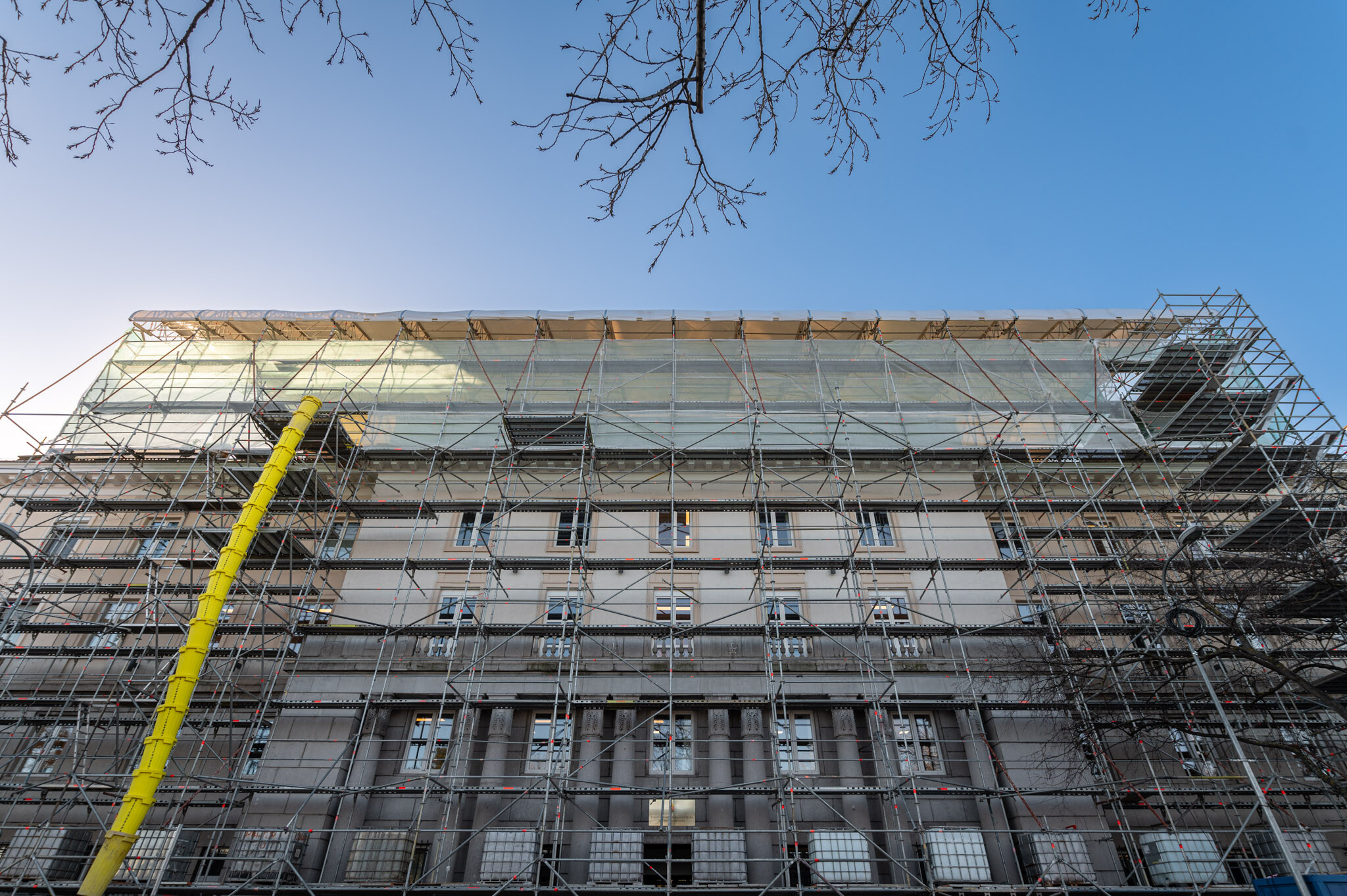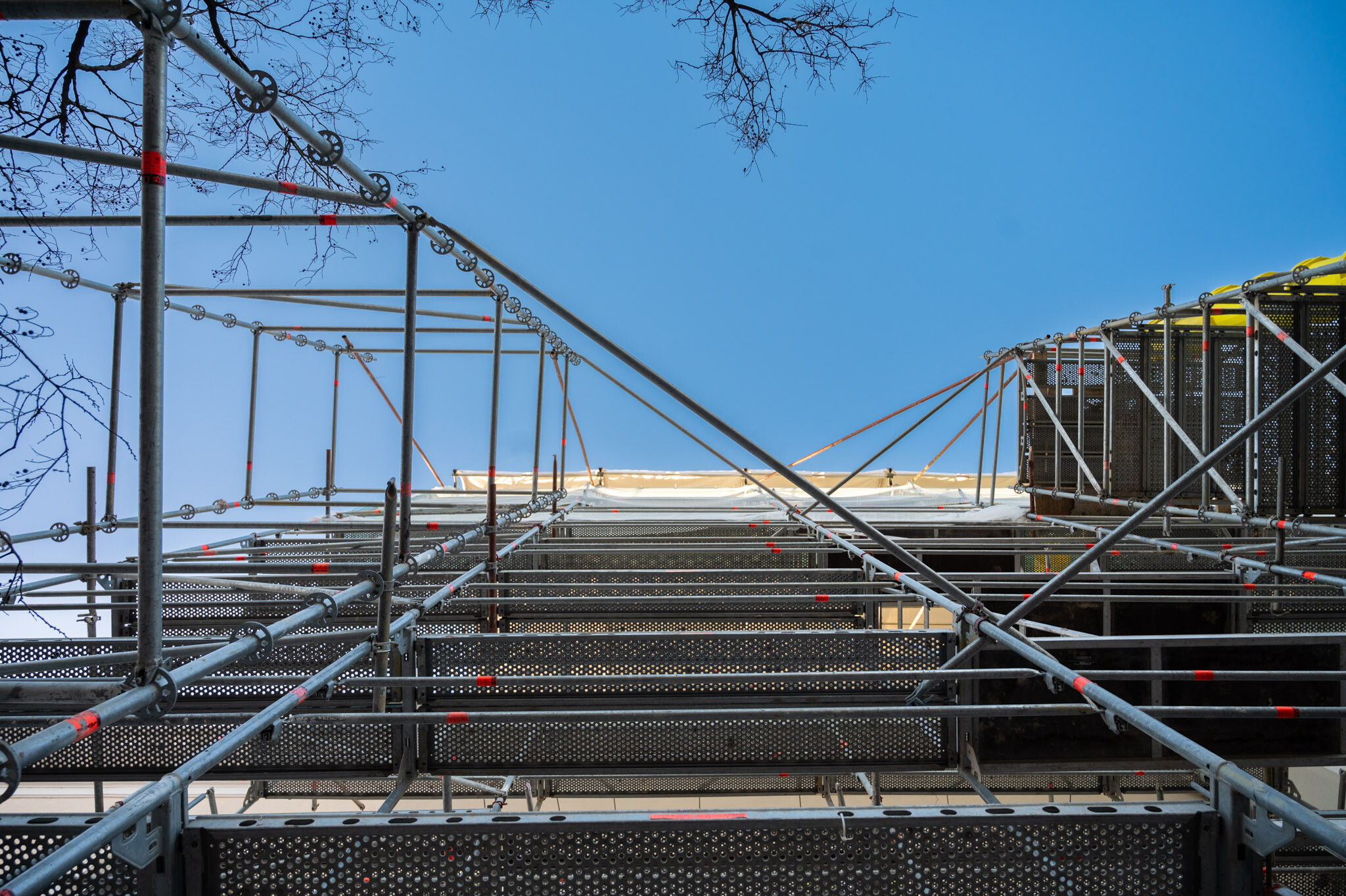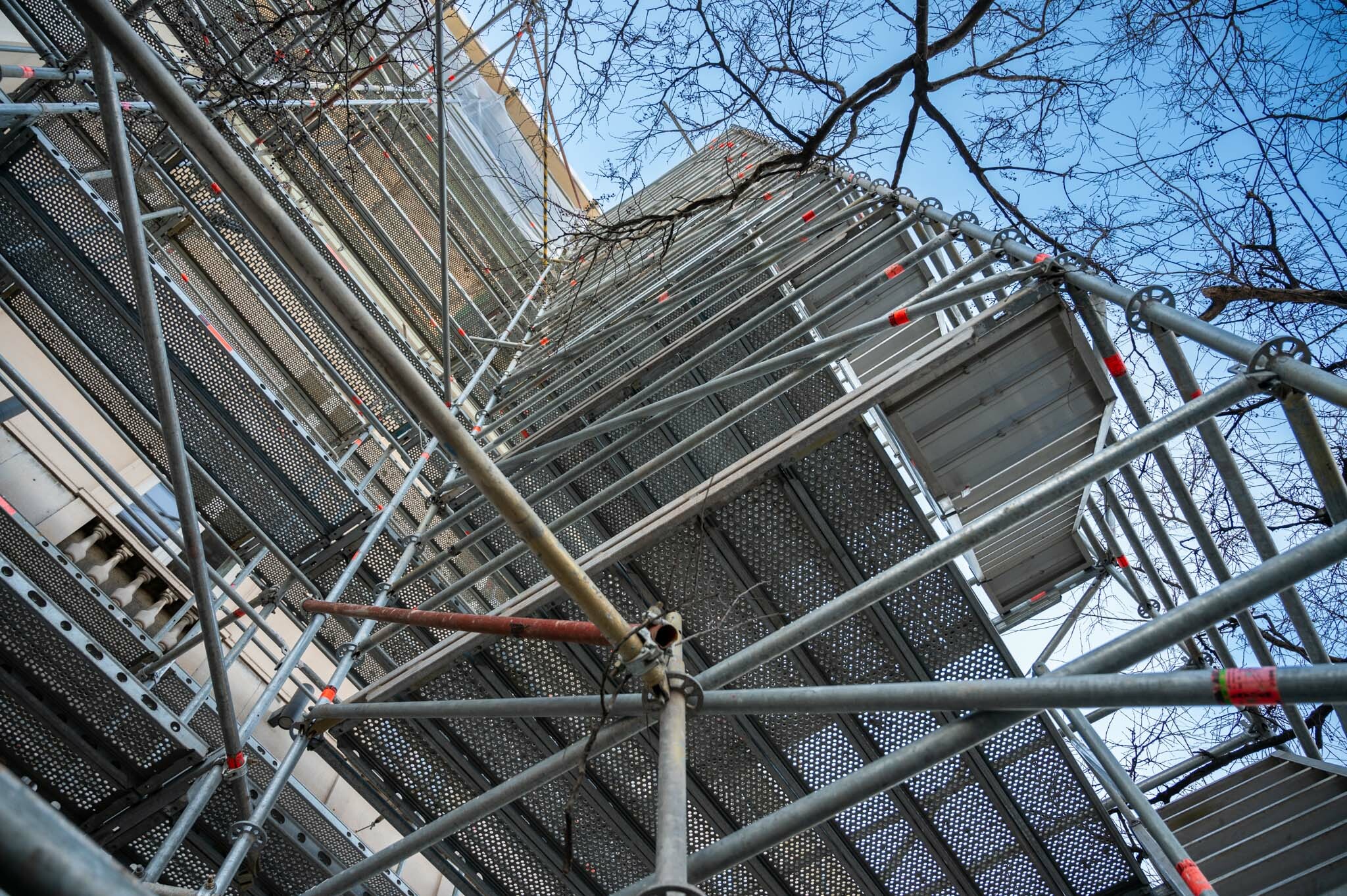 Elsősorban a beázás elleni védelem és a hőszigetelés javítása a projekt célja, amelynek során a kivitelezők ideiglenes védőtetőt is telepítettek a tető cseréjének idejére. Az összetett feladathoz a vállalatok Layher állványokat választottak, mert azok nem csak jól voltak adaptálhatók az összetett feladatokhoz, de egymással kompatibilis kialakításuknak köszönhetően, komplex rendszerben voltak telepíthetők.