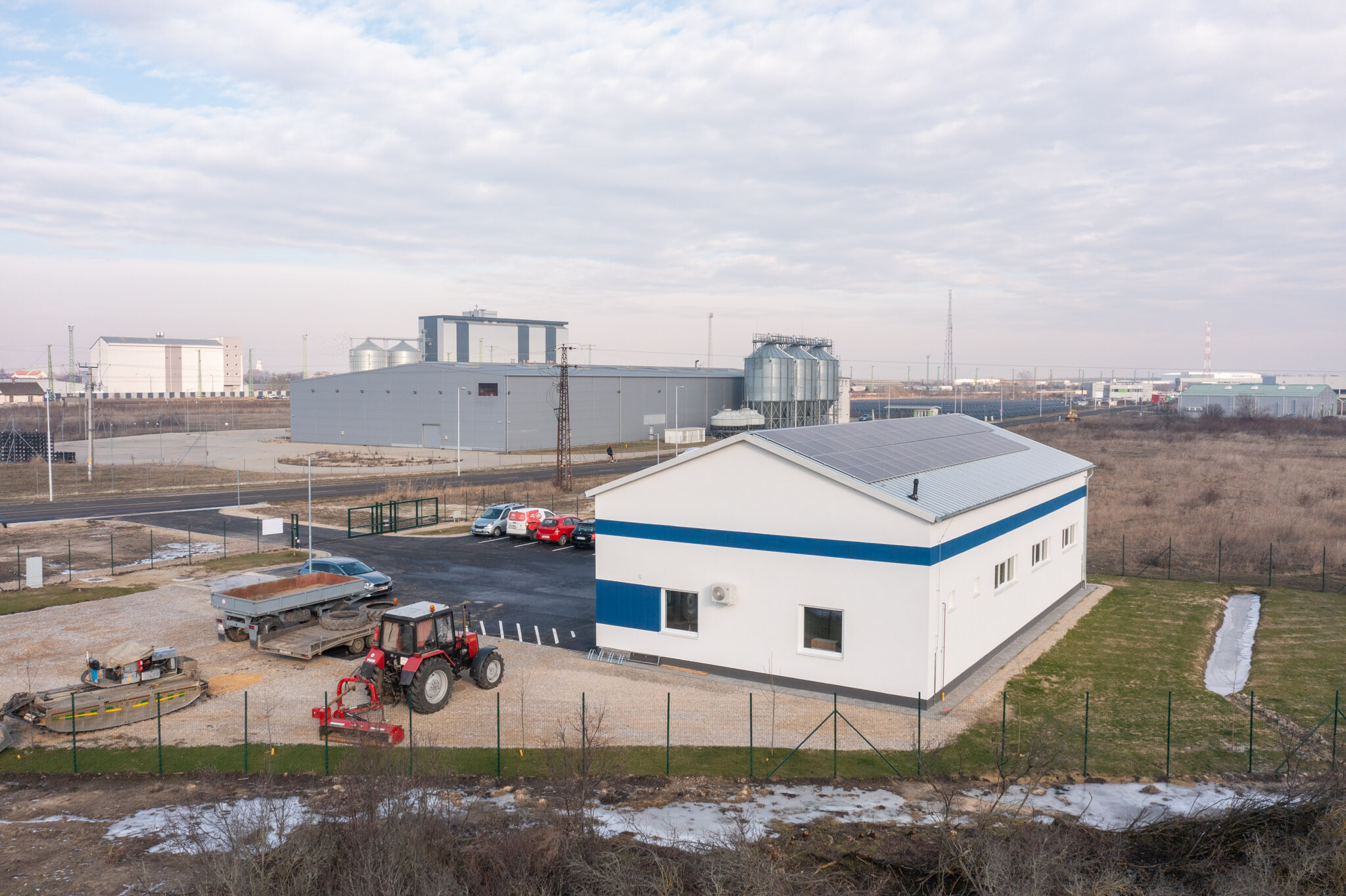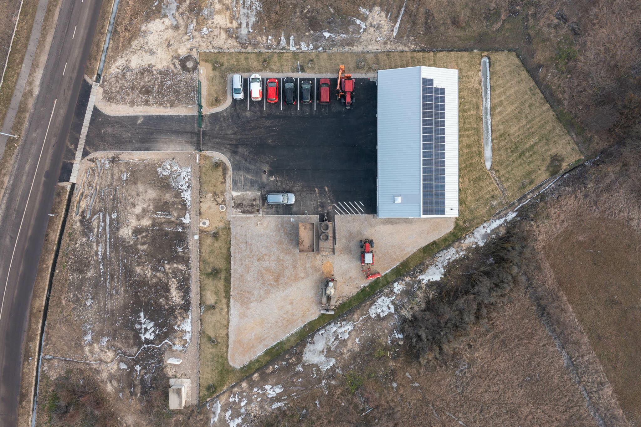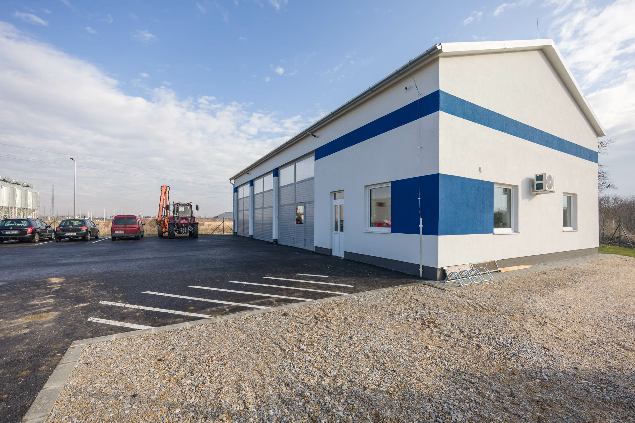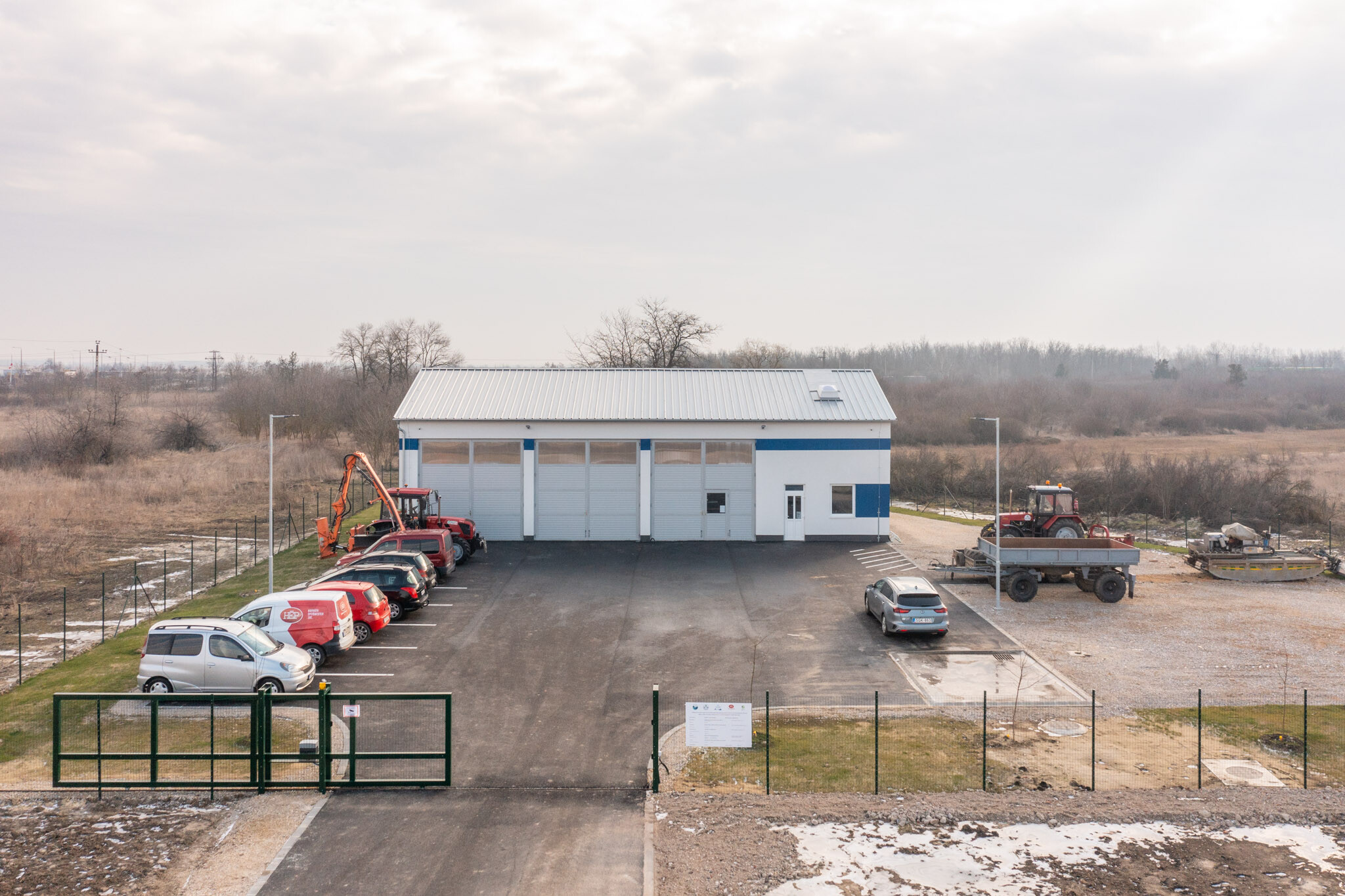 Már az alapozási munkák megkezdésekor kiderült, hogy a talaj teherbírása a vártnál is rosszabb - a munka egy feltöltött mocsaras részen zajlott. A kezdeti nehézségeken túllendülve zavartalanul folytatódott a kivitelezés, 2023. novemberében a beruházó birtokba vehette ezt a létesítményt is. Így az idei évtől már fűtött-fedett helyen tárolhatják és szervizelhetik a gépeket és a személyzet is birtokba vehet egy modern szociális részt.
