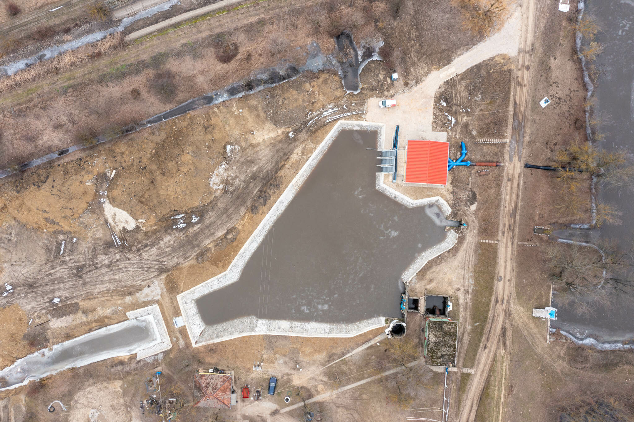 Ezt követően, illetve ezzel párhuzamosan kezdtek el dolgozni az új szivattyúépületen és a hozzá tartozó csatornából kialakított tározótéren is. Itt a természetesen magas belvízszint és a csapadékos időjárás jelentett kihívást: állandó szivattyúzás mellett folyt a munka.