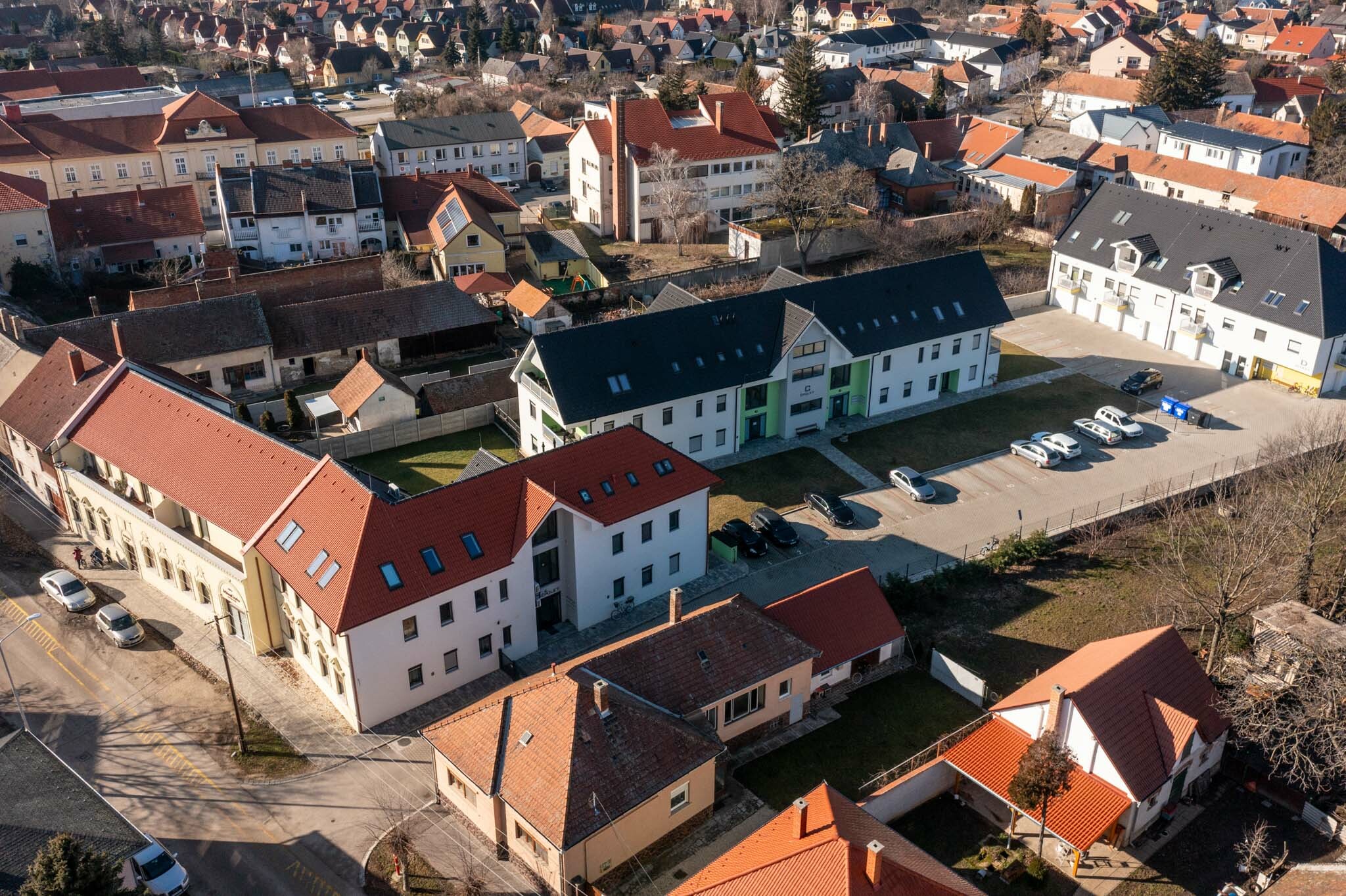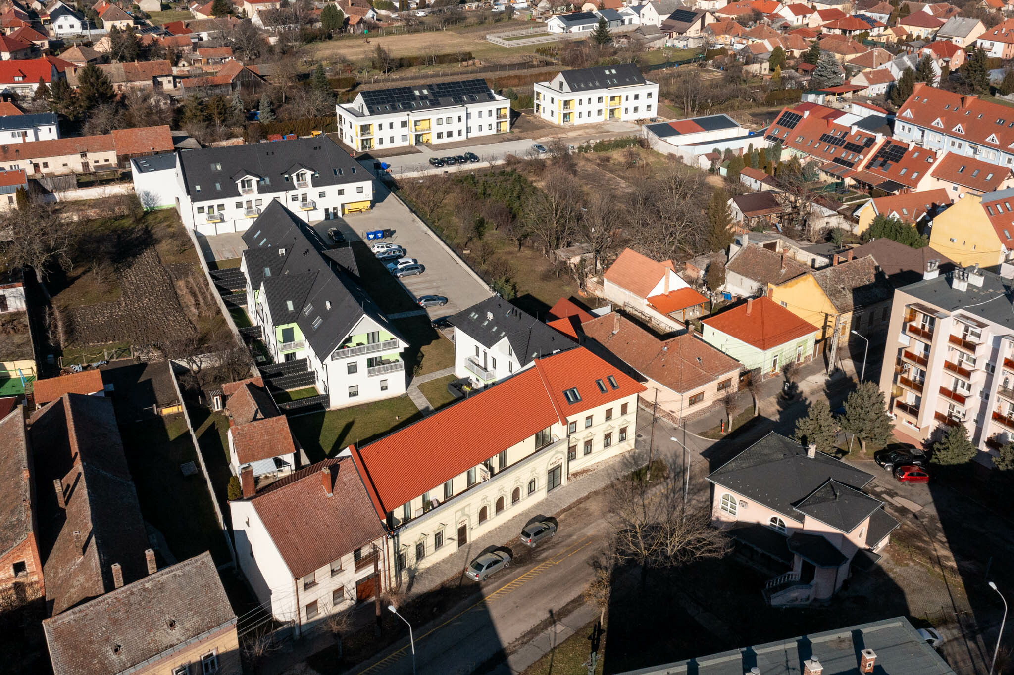 Hat épületben, összesen 65 lakást épít a Zafitrade Kft. Csorna belvárosában. A környékre jellemző egyemeletes, cseréptetős, visszafogott; manzárdablakokkal, néhol attikafallal hangsúlyozott utcafronti homlokzatképzésű épületekhez igazodó együttes a Leier Hungária Kft. szintes teljes szortimentjét felvonultatja.