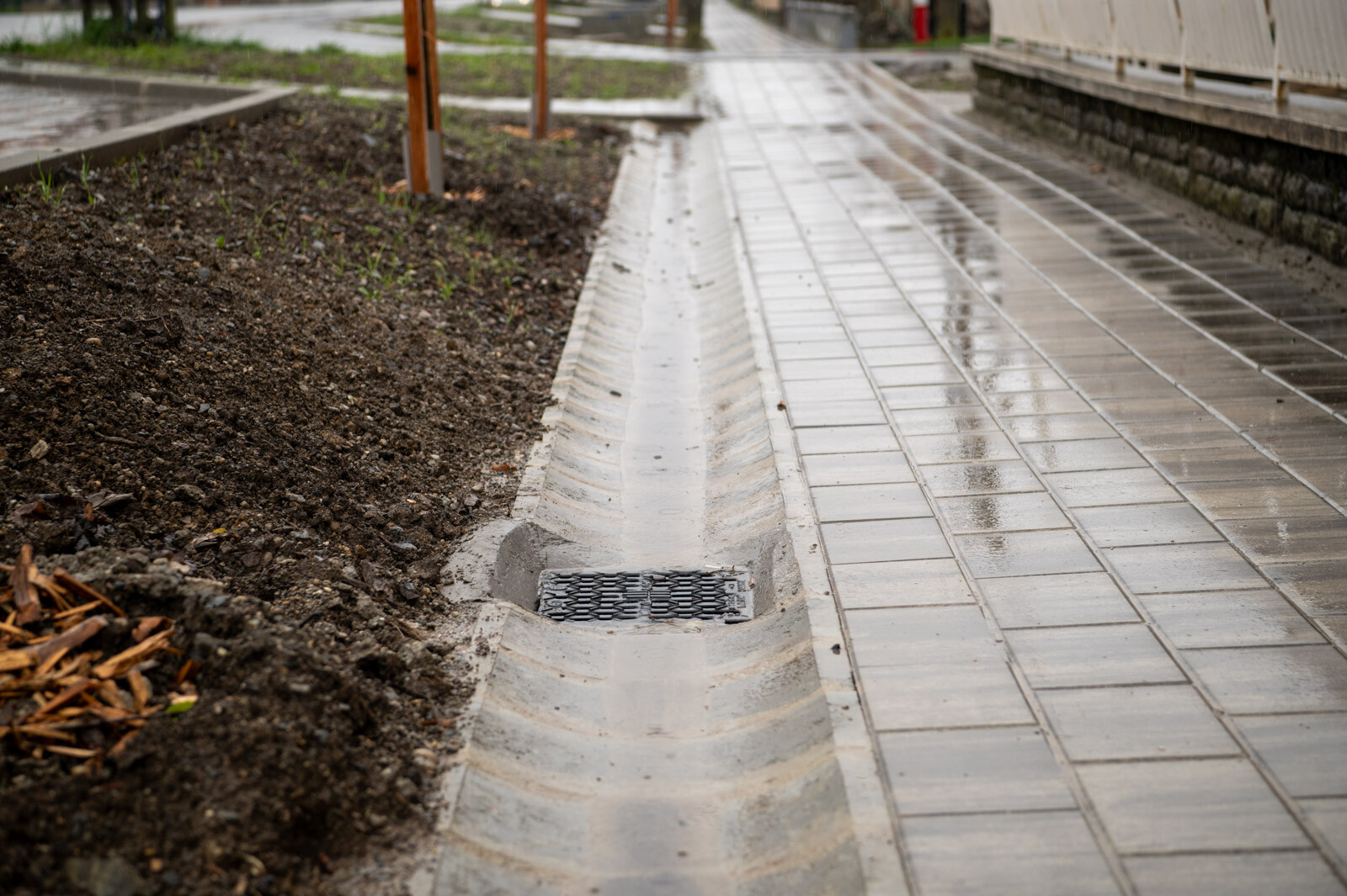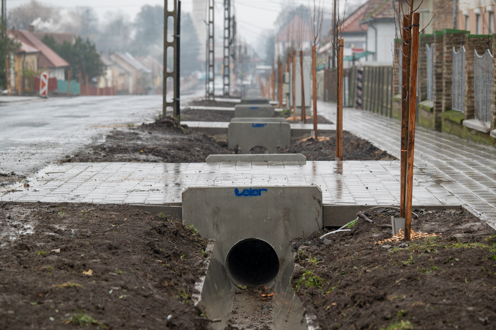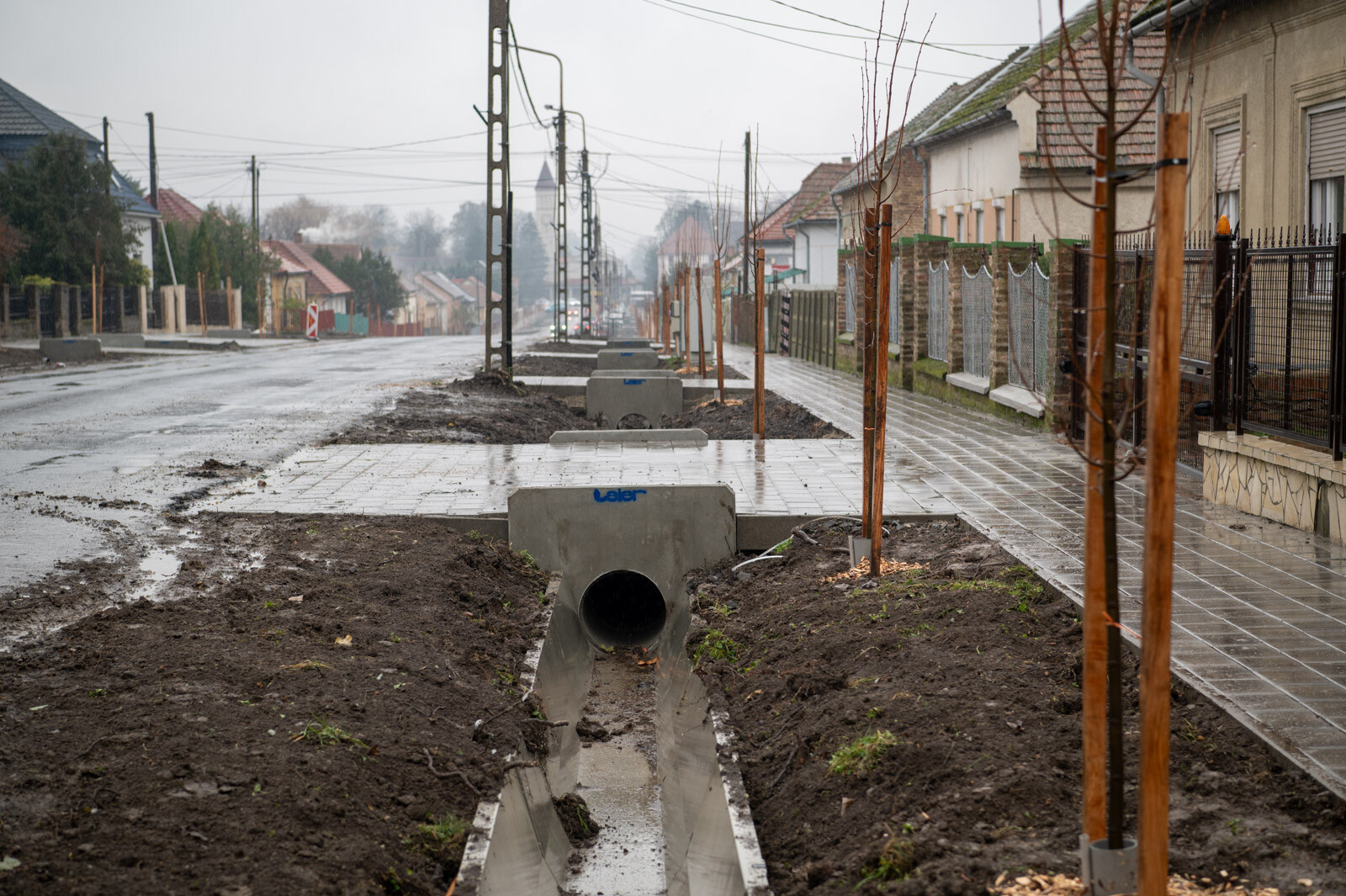 A projektben mintegy 1600 méteren bontották el a régi csapadékvíz elvezető rendszert - a Fő utca jobb és baloldalán is-, majd teljesen új csatornahálózatot építettek a helyére. Ezen a szakaszon a teljes járdaburkolatot és az összes kapu behajtóját szintén eltávolították és újjáépítették.