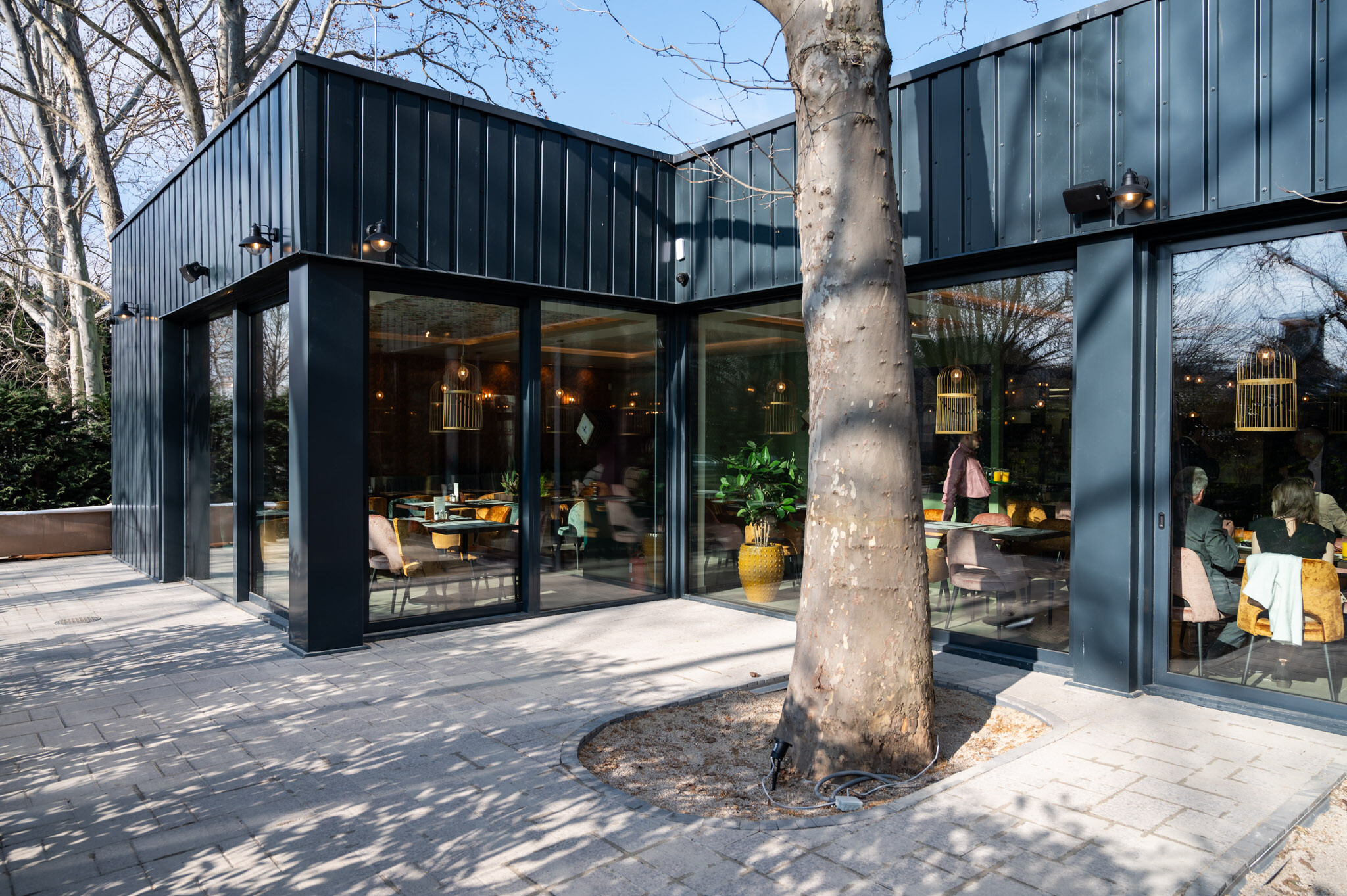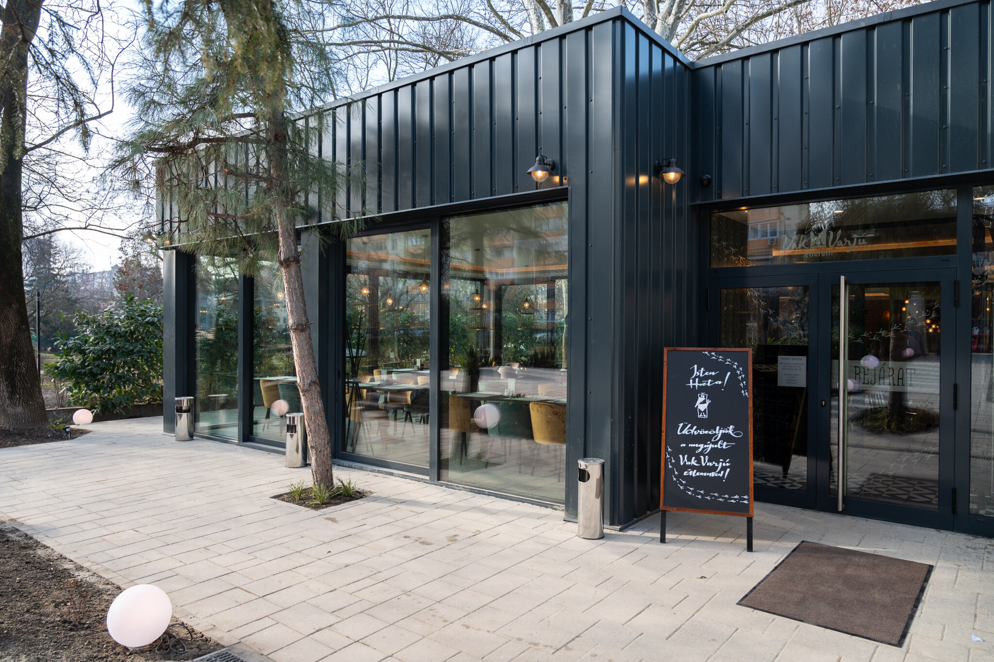 A kertvendéglői hangulatot a vendégtér és a kert összekapcsolásával érték el. A tervezés és a kivitelezés során kiemelt feladat volt az óriási platánfák védelme és életterük biztosítása. Ezt speciális épületszerkezeti megoldások alkalmazásával oldották meg a HÉP szakemberei: