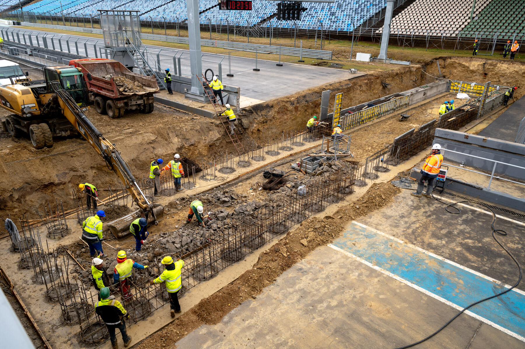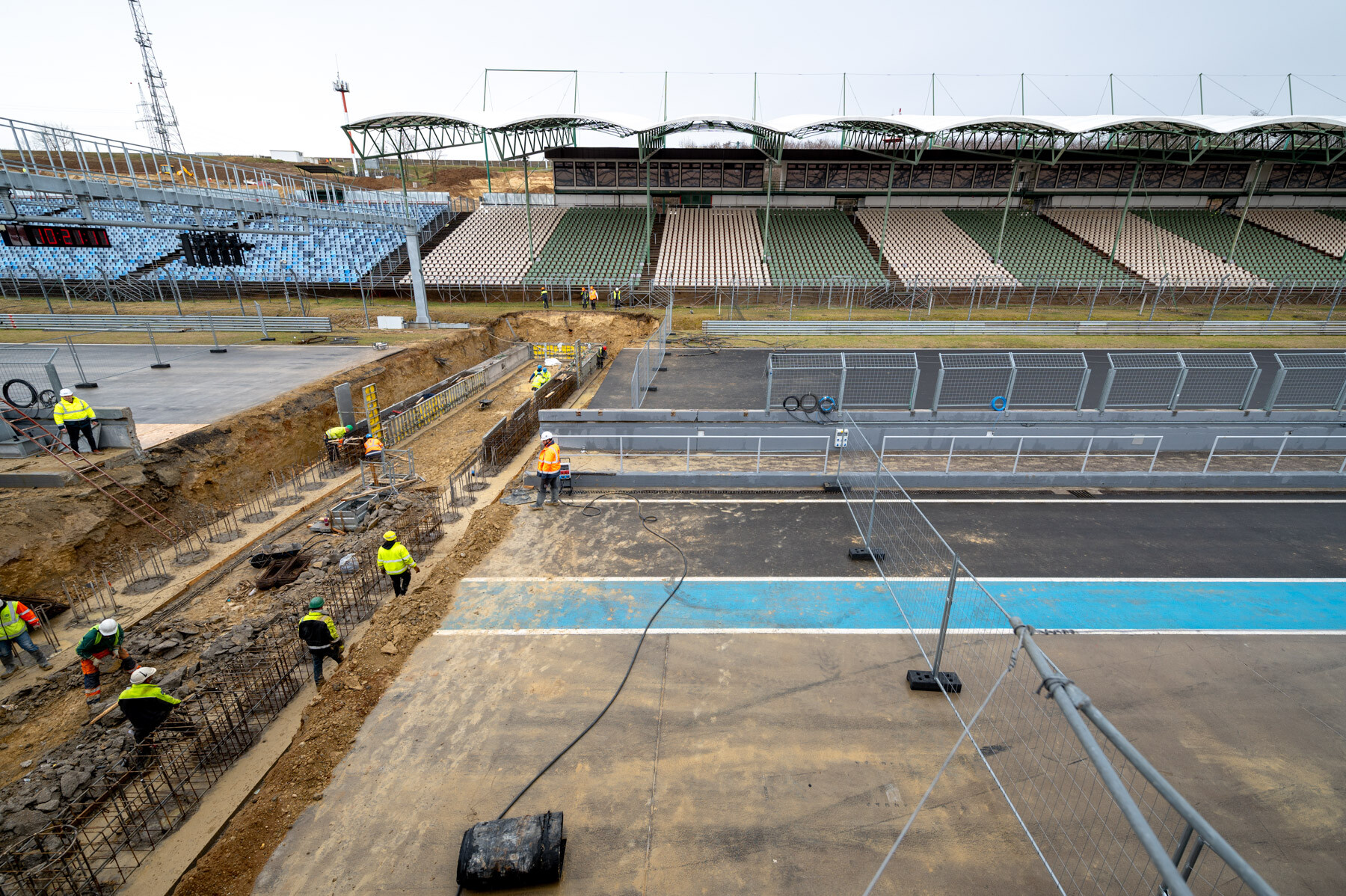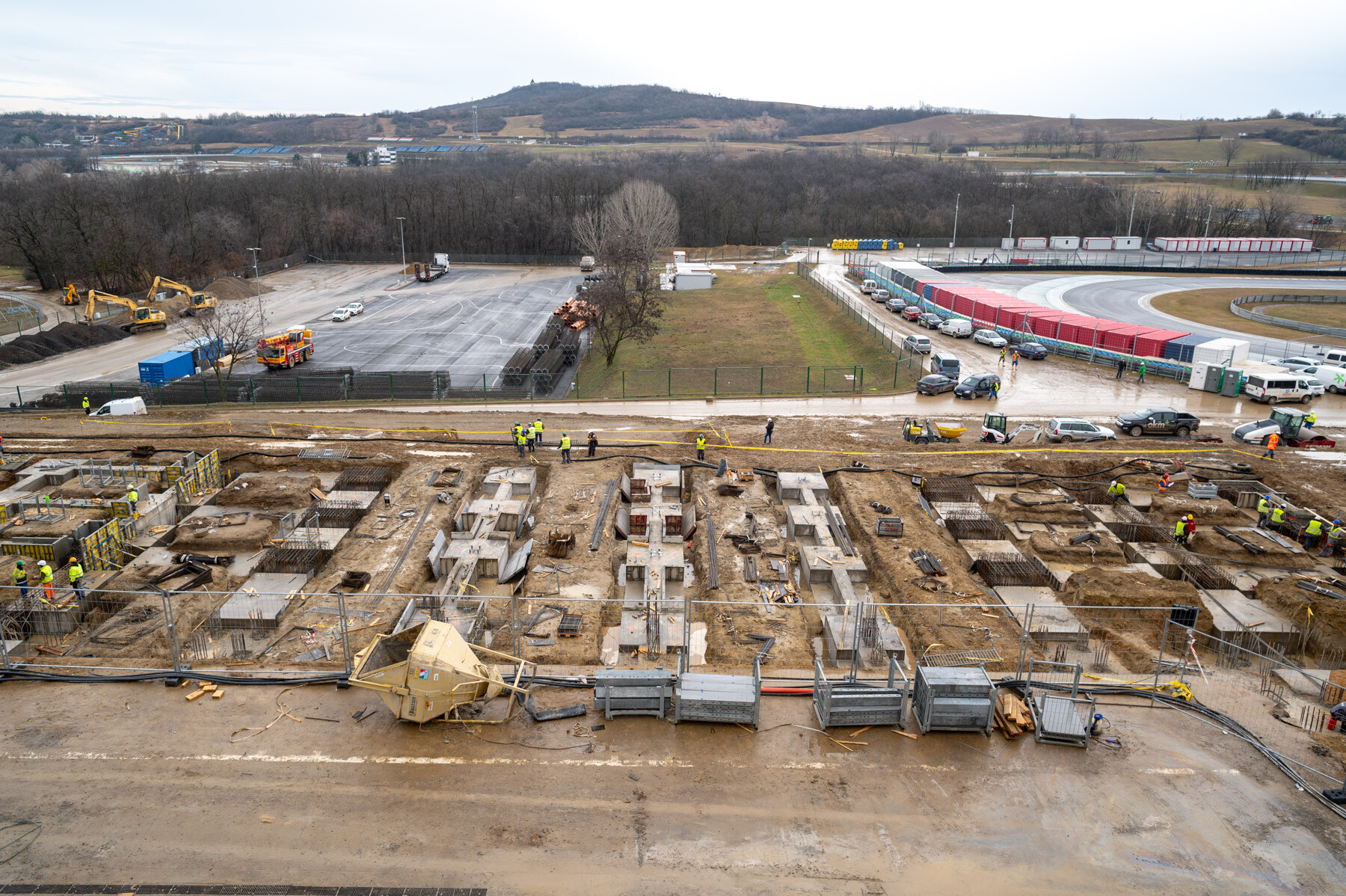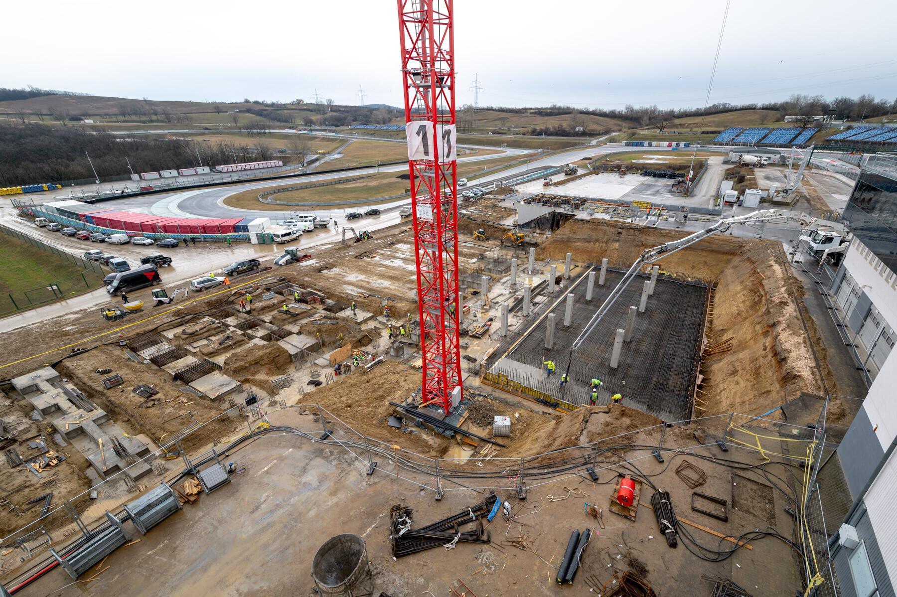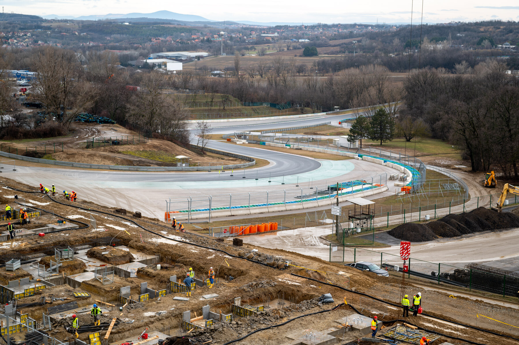 Helyszíni sajtóbejáráson mutatták be február 12-én a mogyoródi Formula 1-es versenypályát megújító beruházás második ütemét. A Market Építő Zrt. és a Bayer Construct Zrt. konzorciuma tavaly decemberben kezdte el az újabb ütem munkálatait. Ahogy azt korábban is jeleztük, néhány hét alatt többek közt 20 ezer köbméter földet mozgattak meg és 5 ezer köbméter betont bontottak el a két cég szakemberei, miközben az első toronydarut is felállították.