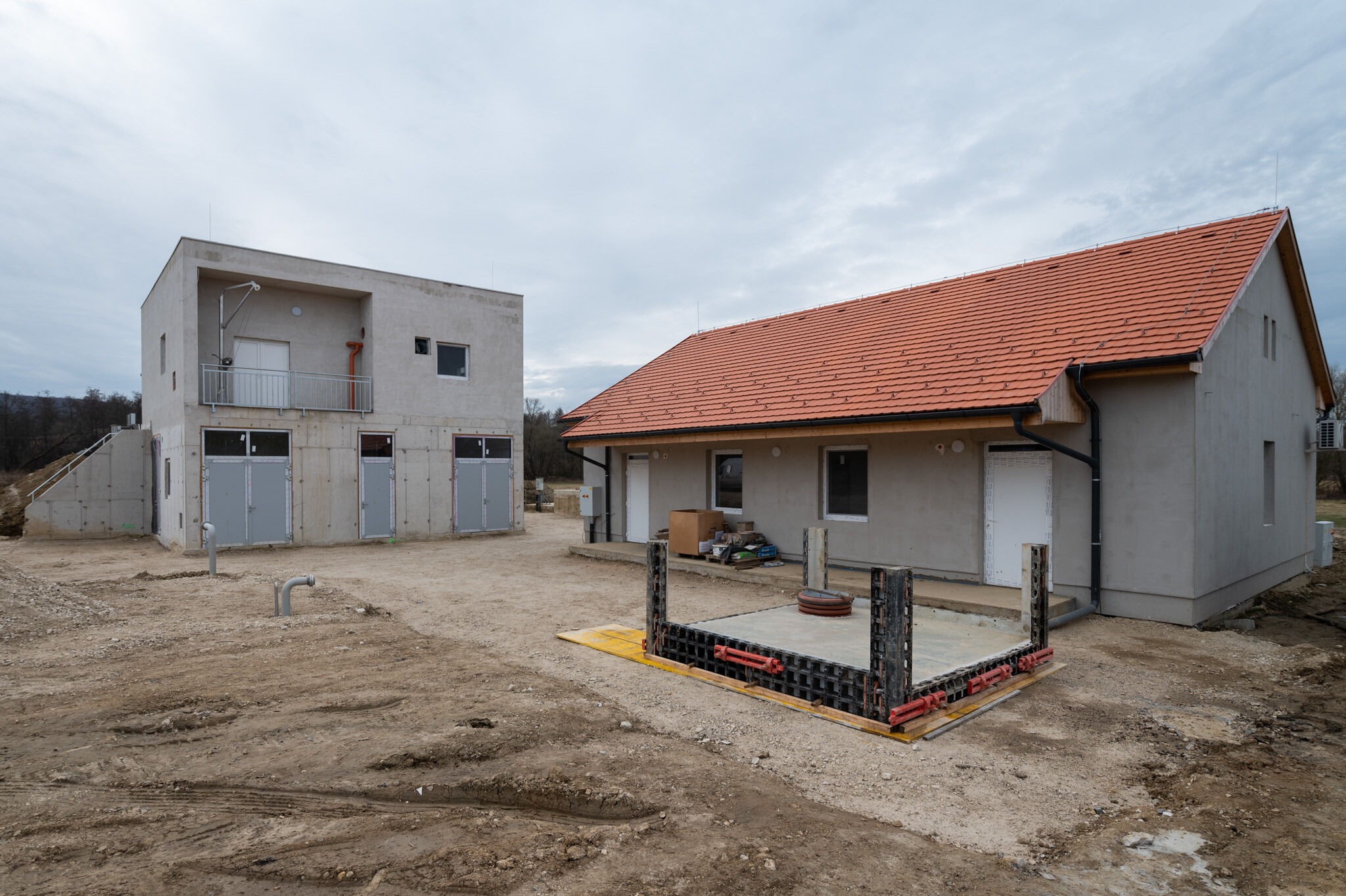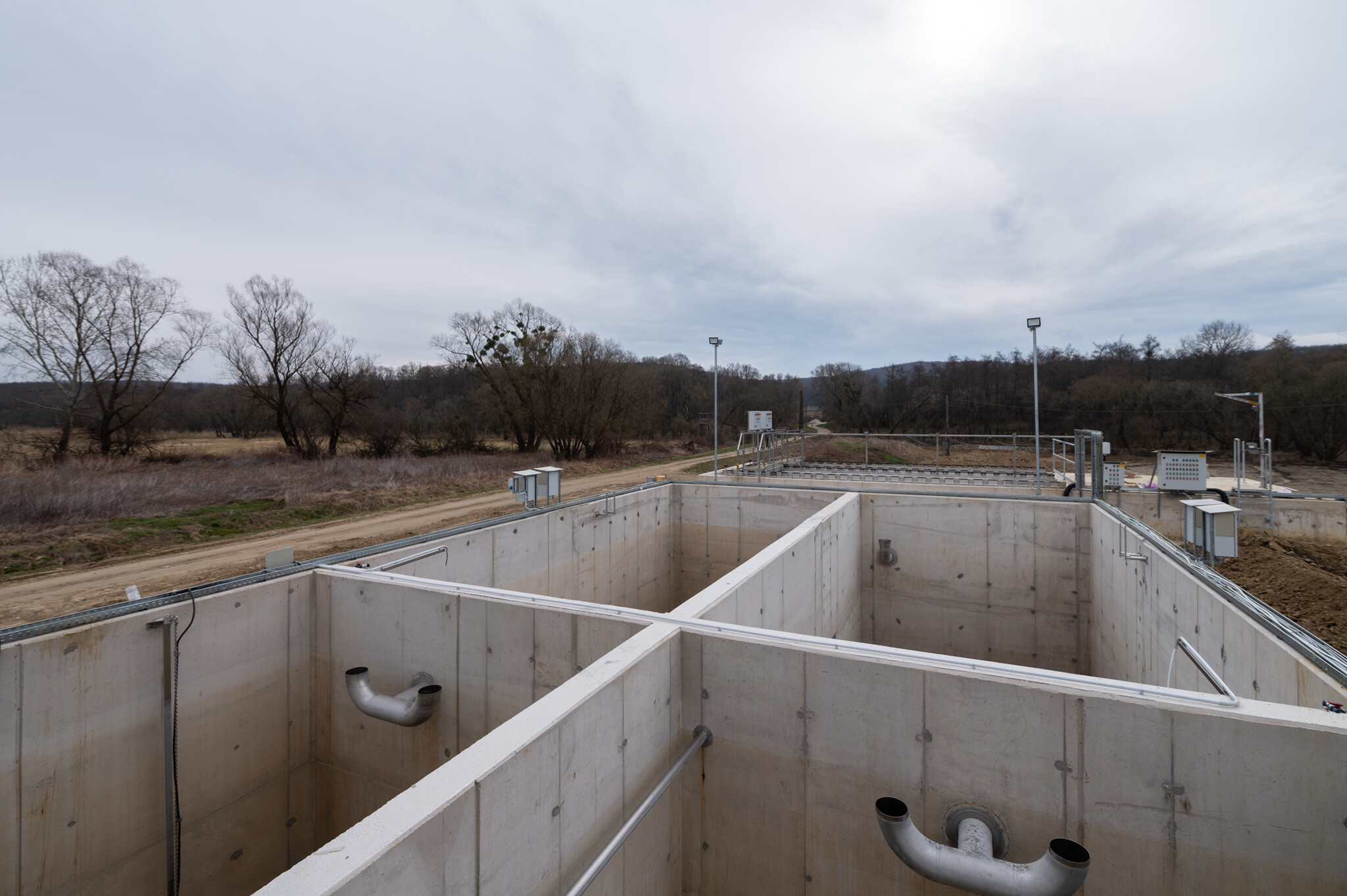Várhatóan szeptember első napjaiban átadhatják a szennyvíztisztítót, amelynek építészeti megoldásainál is adódtak kihívások: a talajmechanikai fúrások szerves agyagos-iszapos-tőzeges réteget harántoltak, így a műtárgyakat közel 300 darab, 8 méter hosszú és 60 centiméter átmérőjű kavicscölöpökre ültették.
