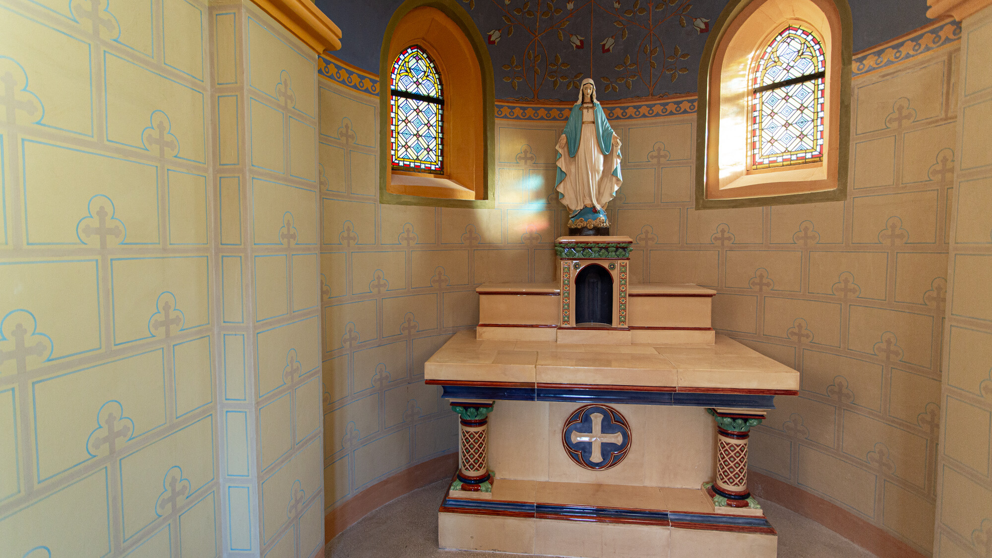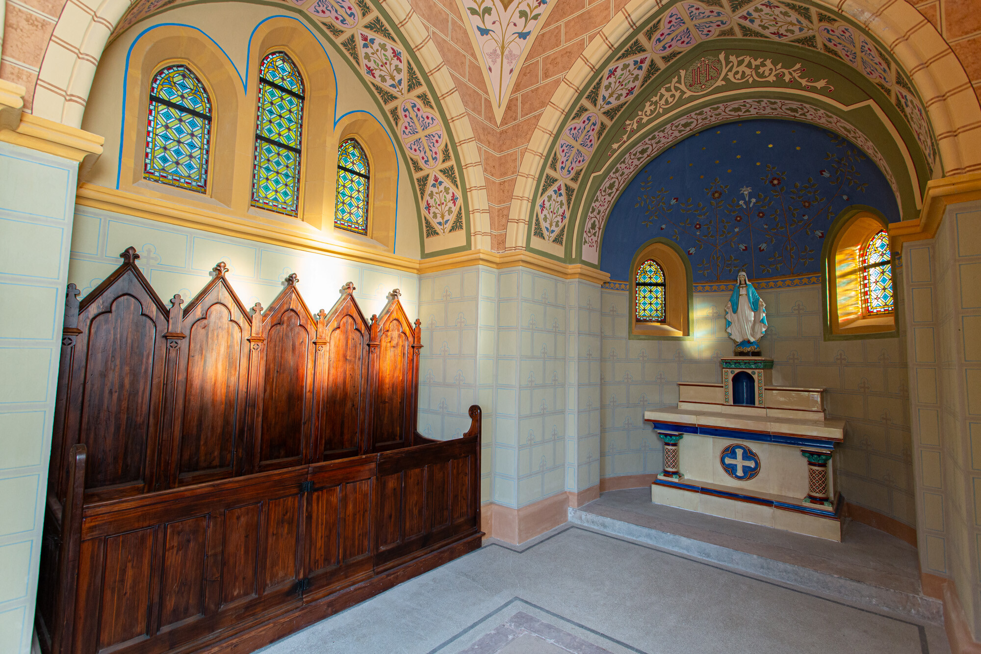 A neogótikus stílusú bonyhádi kápolna 2002 óta áll műemléki védelem alatt, berendezésének legértékesebb része a Zsolnay-kerámiából készült oltár Mária-szoborral.