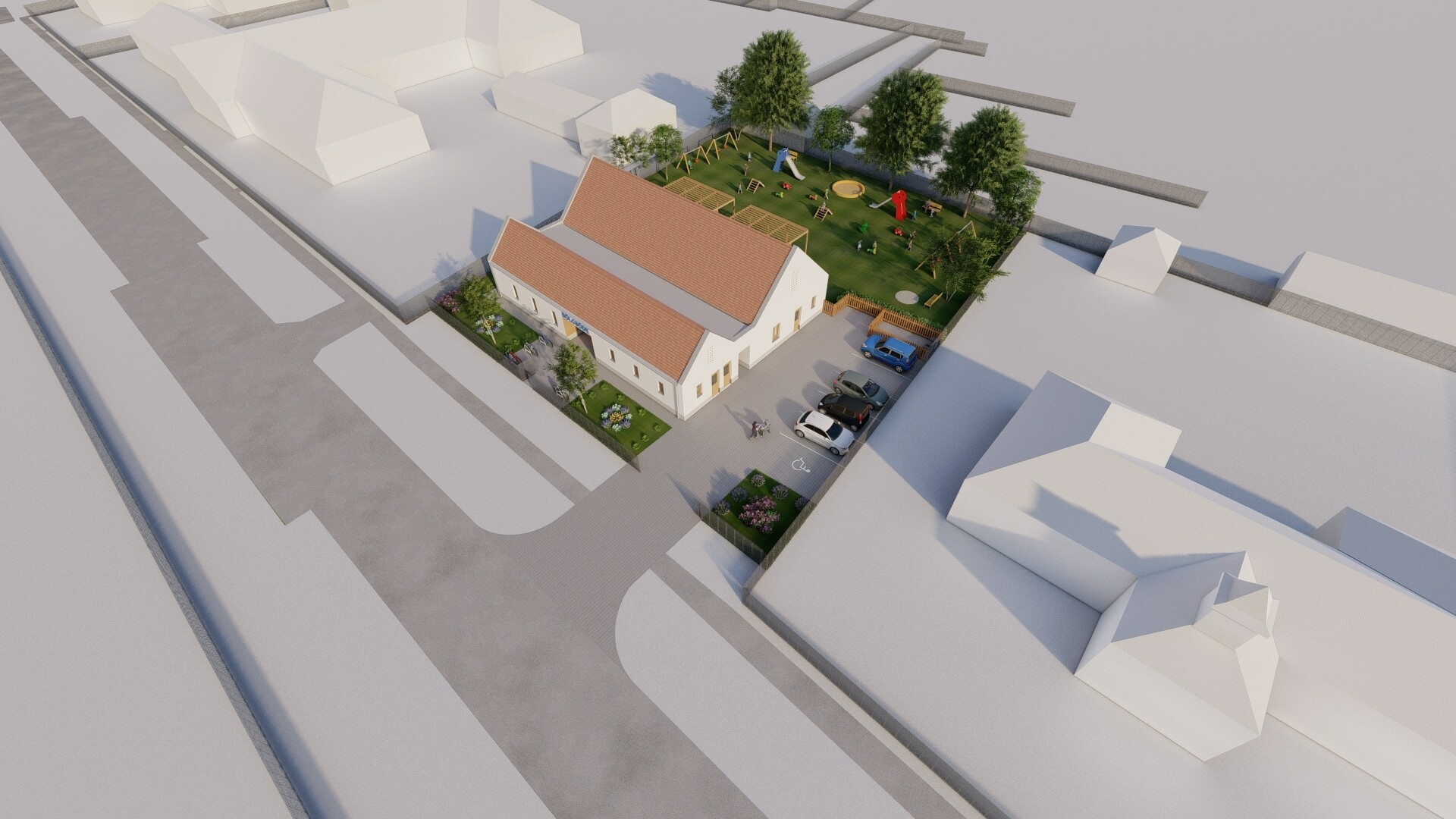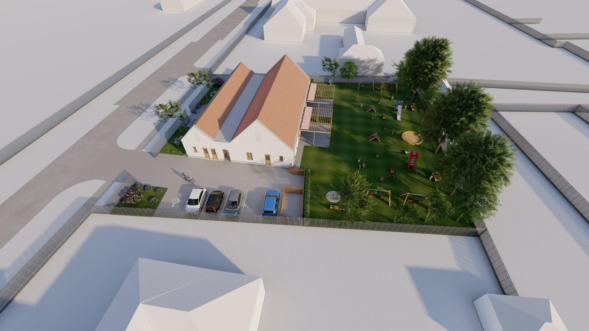 Az épület részletes leírásából többet közt az is kiderül, hogy a bölcsödét két, cseréppel fedett magastetős épülettömeg alkotja majd, amelyek között egyenes rétegrendű lapostető készül. Az épület hűtését-fűtését levegő-víz rendszerű hőszivattyú és fan-coil készülékek biztosítják majd, a projektben egy napelemes rendszert is telepítenek.