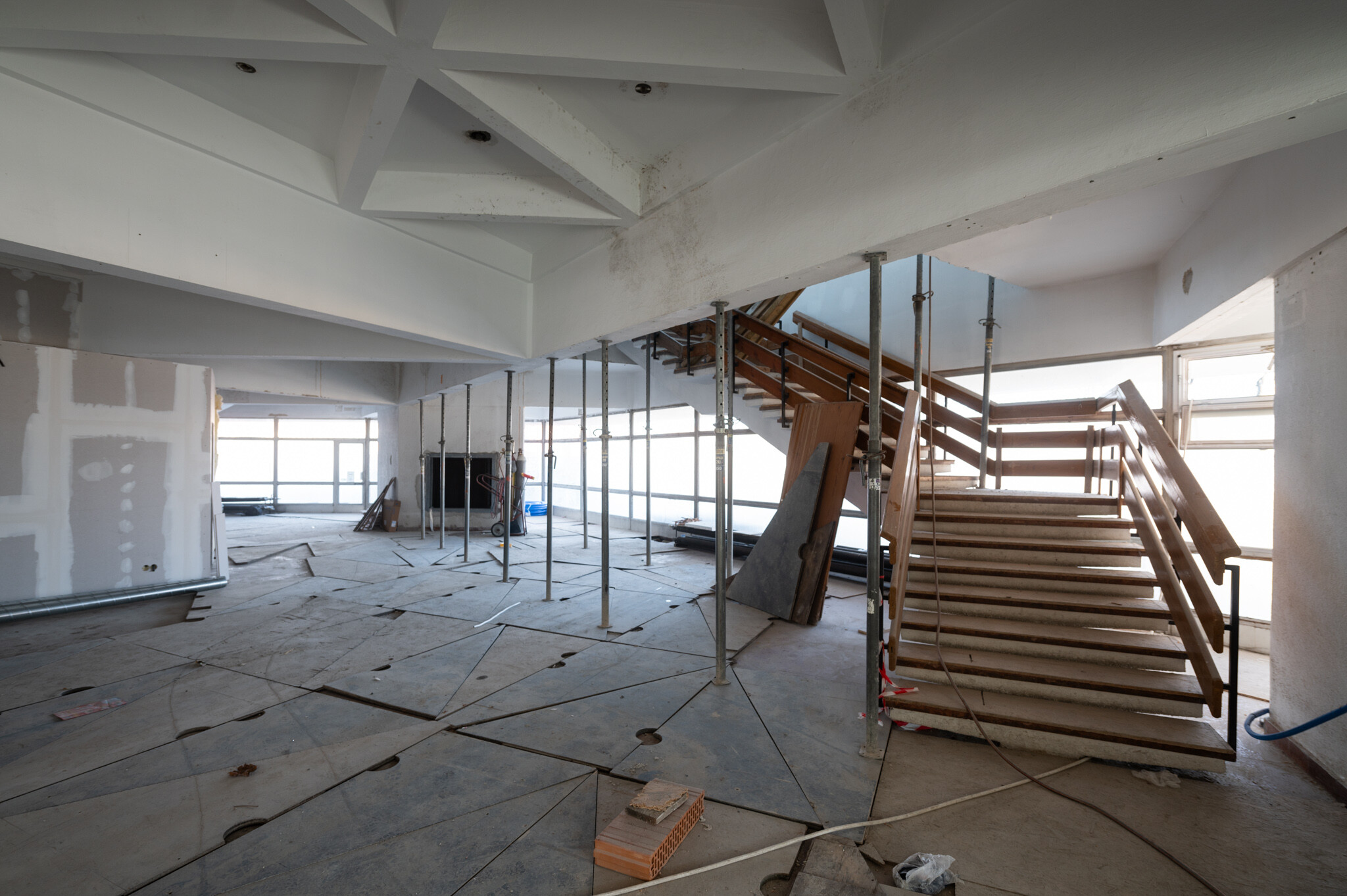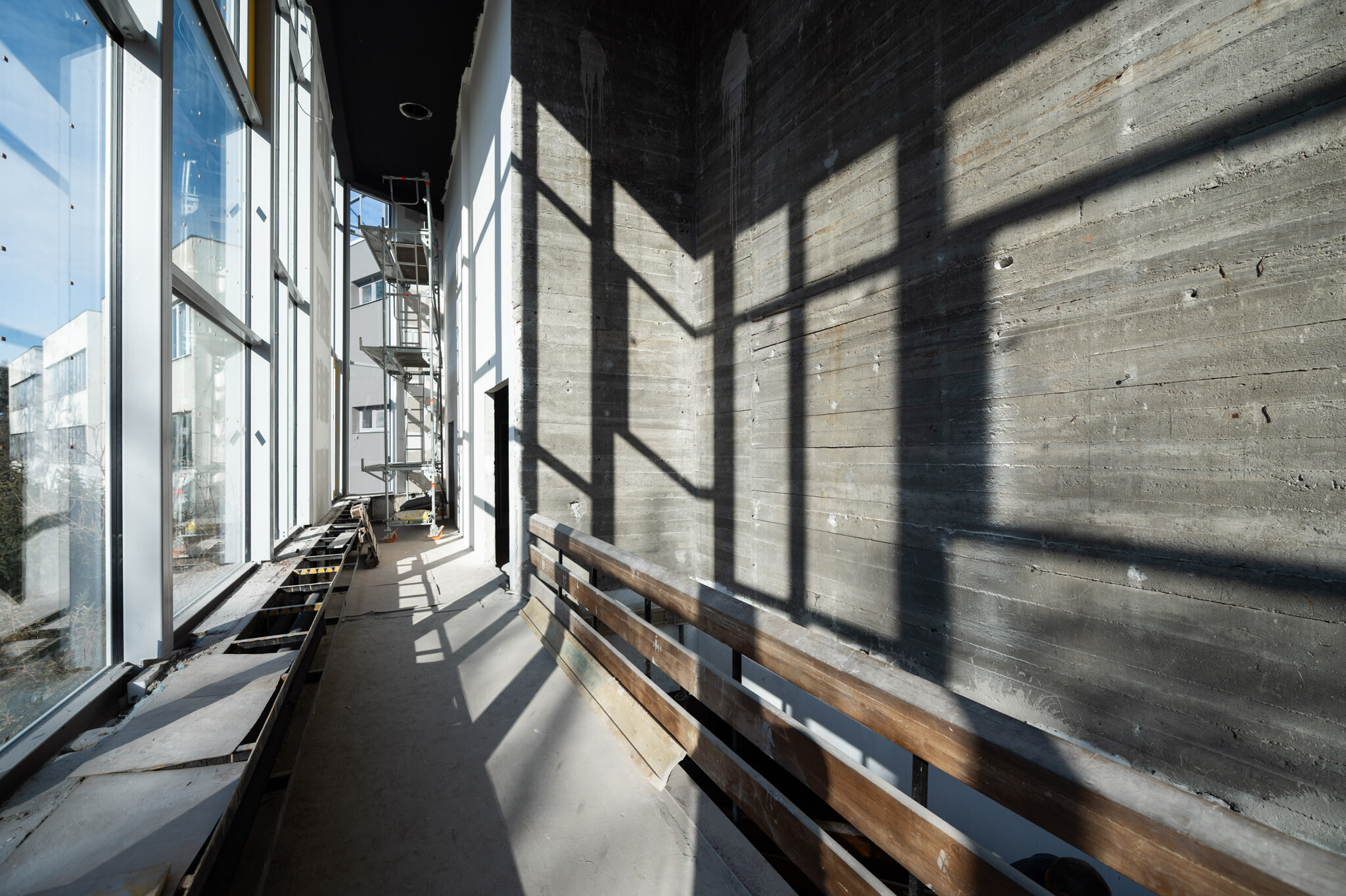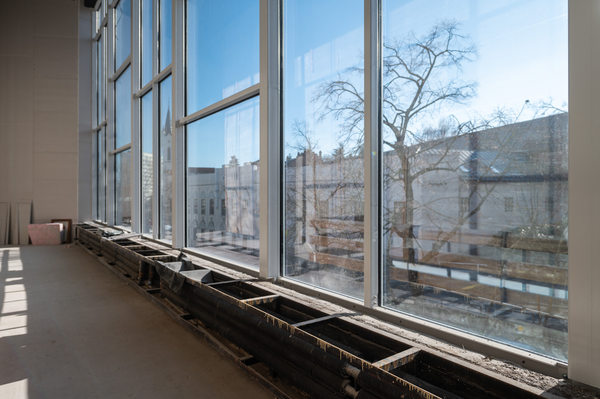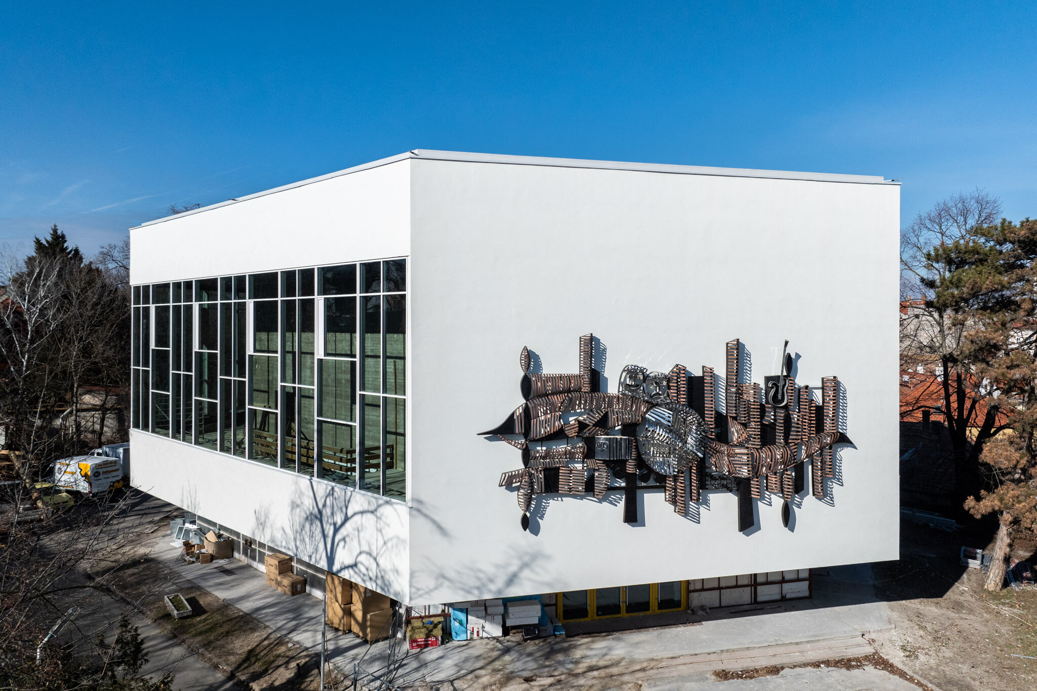 Jelenleg a belsőépítészeti elemek gyártmánytervezése van folyamatban. A belső munkákkal parhuzamosan pedig hamarosan nekiállnak az épület előtti burkolt tér kialakításának is: az épület körüli térrendezés és növénytelepítés visszahúzza majd az épületet a város szövetébe. Így válhat a hosszú ideig elhagyatott épület újra a város szerves részévé.