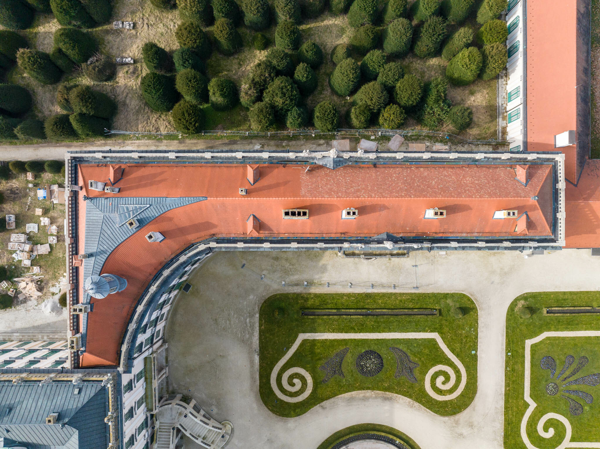 A tetőszerkezet felújítása, javítása is a projekt része volt. A padlástér teljes alapterületén felszedték a burkoló téglákat és eltávolították az alatta lévő salakfeltöltést. Ekkor derült ki, hogy az eredetileg tervezett rétegek nem férnek el, emiatt módosítani kellett a megtervezett rétegrenden és át kellett alakítani az elektromos és gépészeti terveket is. A födém hőszigetelését is elvégezték a munkálatok során.