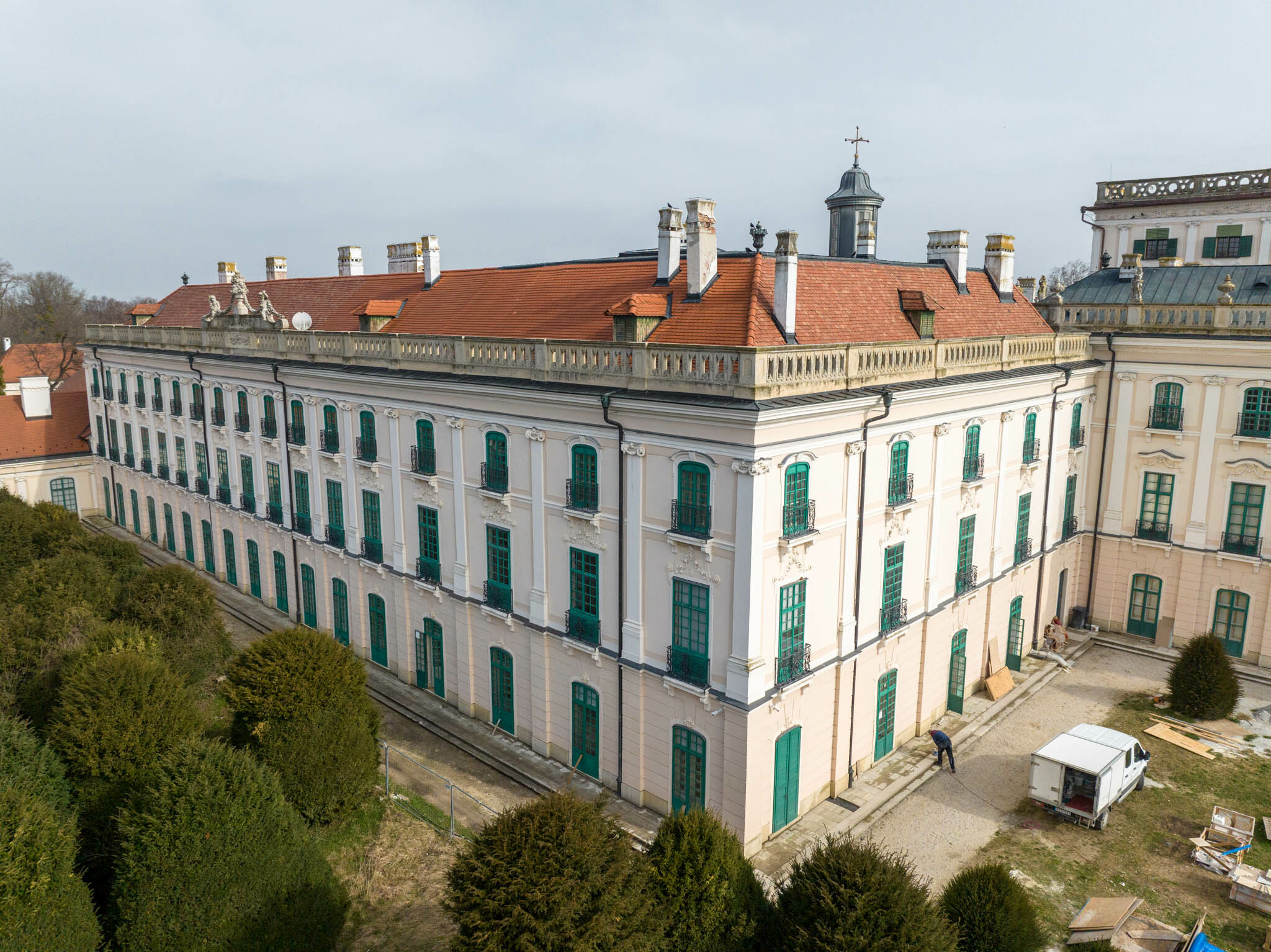 Elkészültek a fertődi Esterházy-kastély háromszintes nyugati szárnyának újabb felújítási munkálatai és megmenekült a hercegi istálló is a Fertődi Építő és Szolgáltató Zrt. (FÉSZ) és a ZÁÉV Építőipari Zrt. és konzorciumának kivitelezésében.