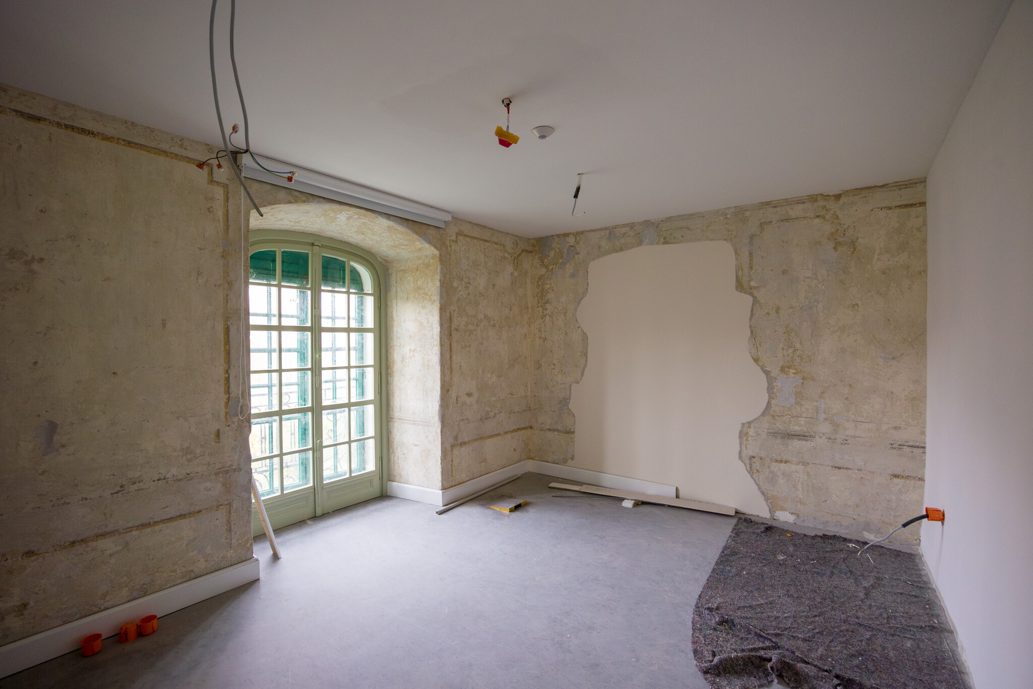 A bontások és a restaurátori falkutatások során különleges falfestések kerültek elő, a kivitelezés során ezek szakszerű, részleges helyreállítása és konzerválása is megtörtént. Ezek közé tartozott a szupraport felett talált csipkés díszítőfestés. Előkerült egy régi ajtó is, amelynek megőrzése szintén a tervek átdolgozását eredményezte. A festő restaurátori munkák során több réteg mészfestés alól barokk figurális díszítést tártak fel.