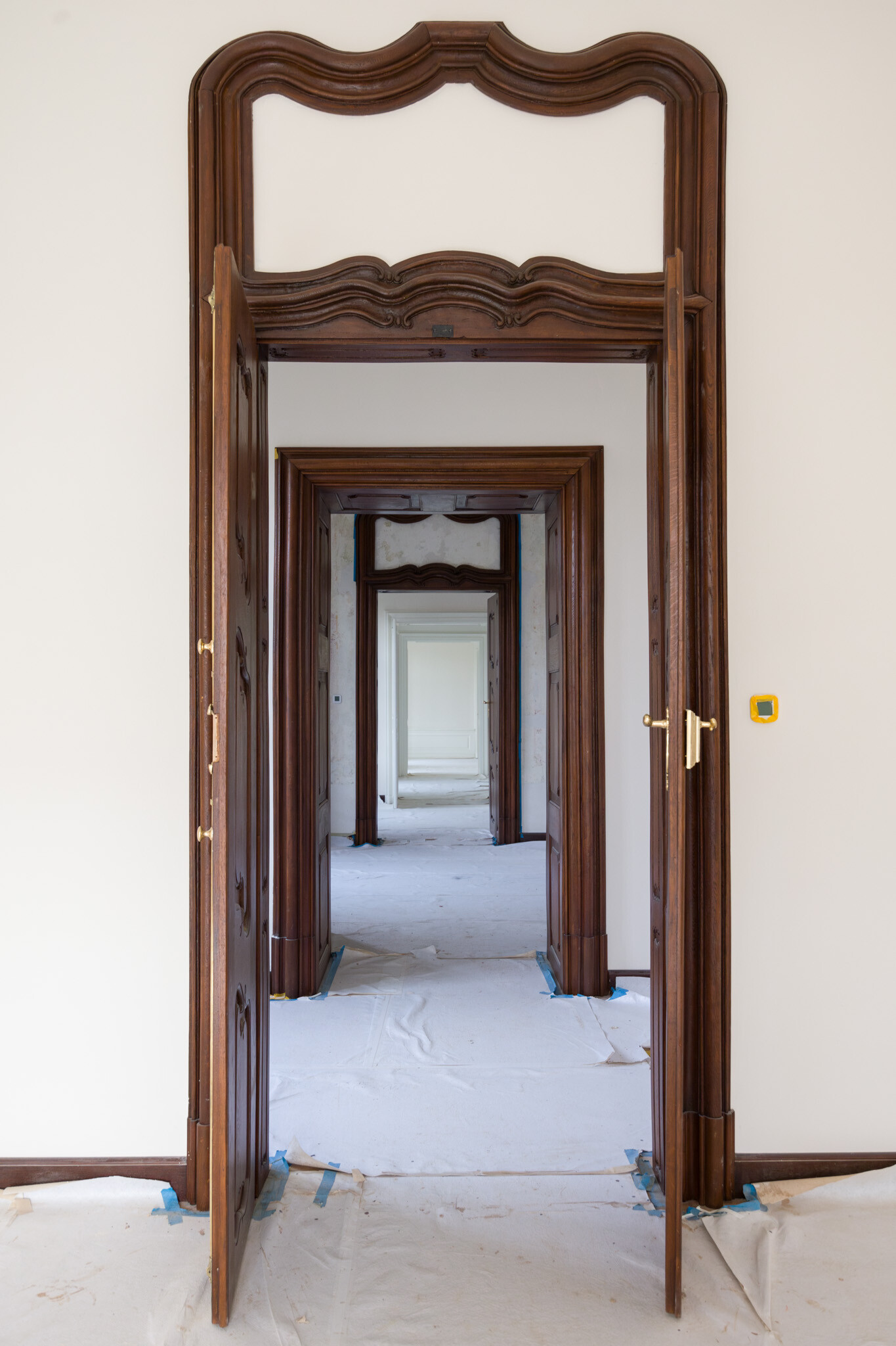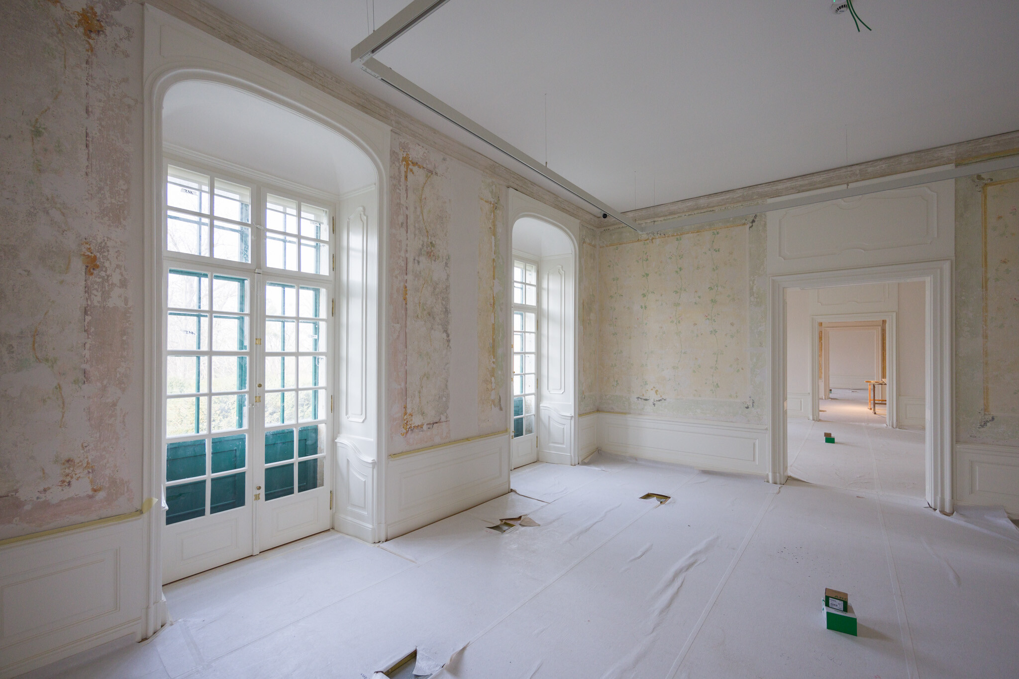 A restaurátorok a szobák díszítőfalainak festésén kívül, komoly szerepet kaptak a fém kályhafűtő nyílások beépítésénél, a kőszerkezetek megújításánál, valamint a fa nyílászárók rekonstrukciójánál is. A műemlékvédelmi munkálatok közül kiemelkedett a könyvtárszoba falfestményeinek restaurálása.