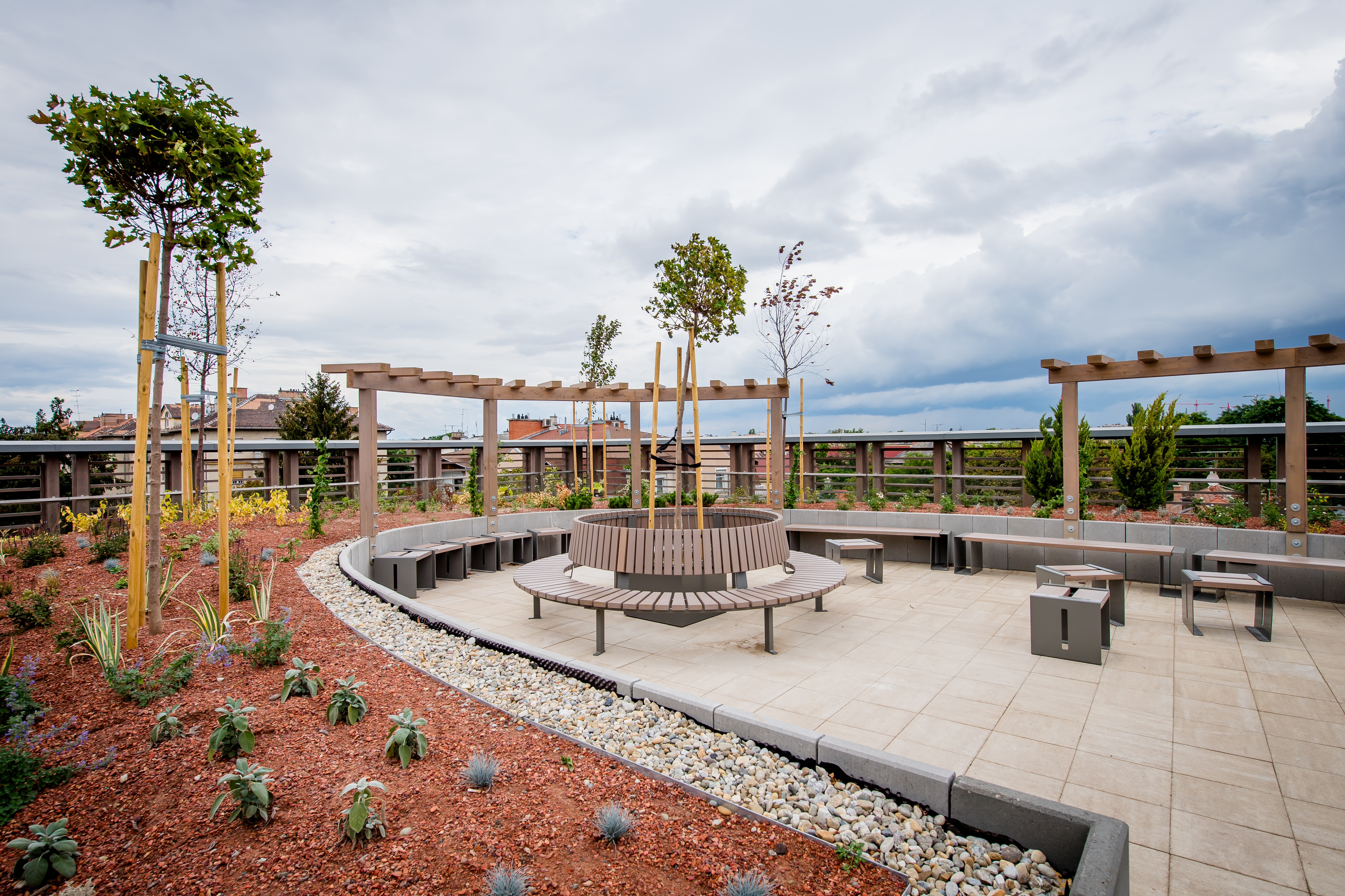 Az új homlokzati nyílászárók, az árnyékolást biztosító alumínium függönyfalak és üvegtetők beépítése, napelem-rendszer telepítése az épület modern megjelenését és energiahatékony működtetését eredményezte.