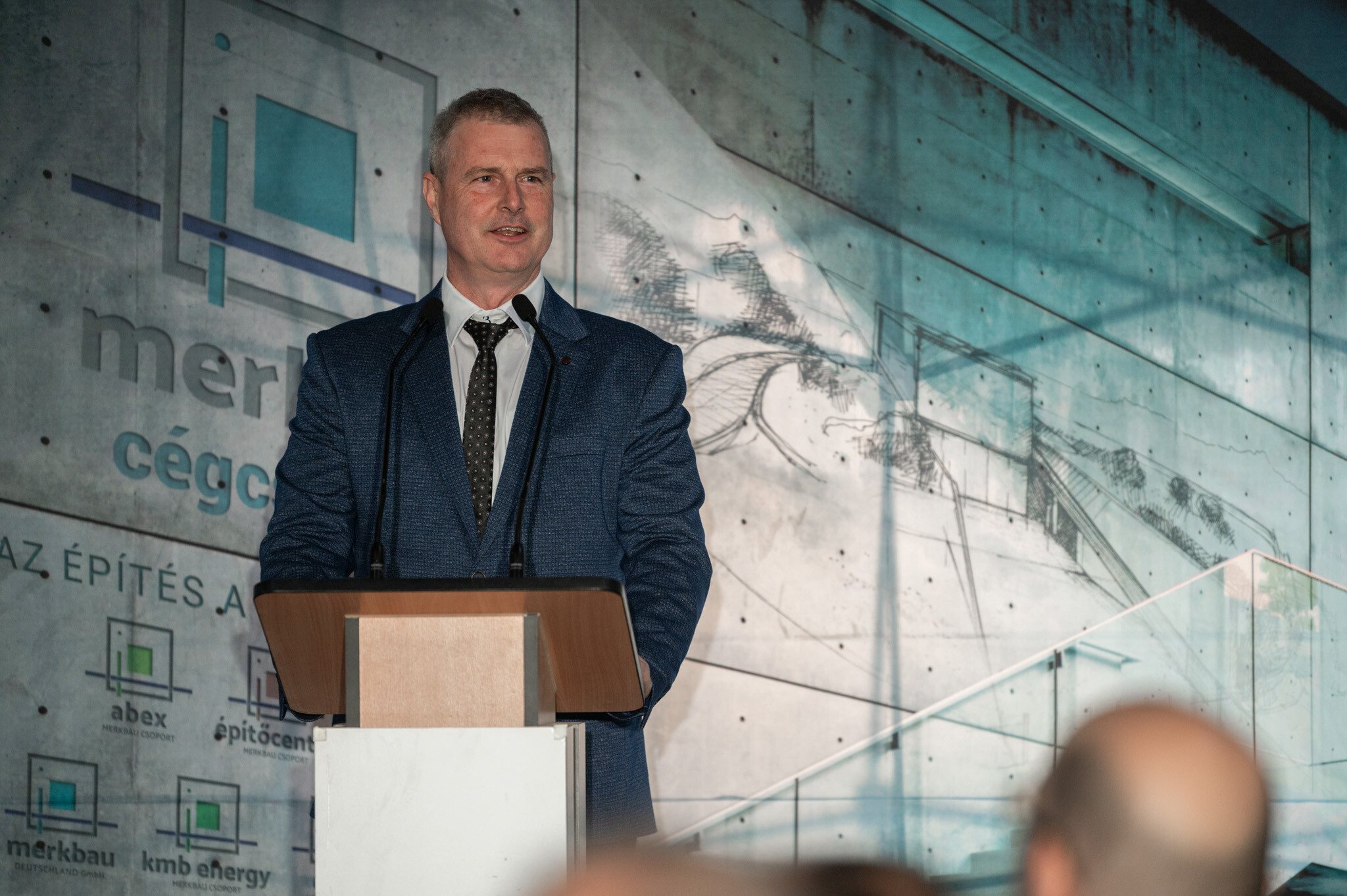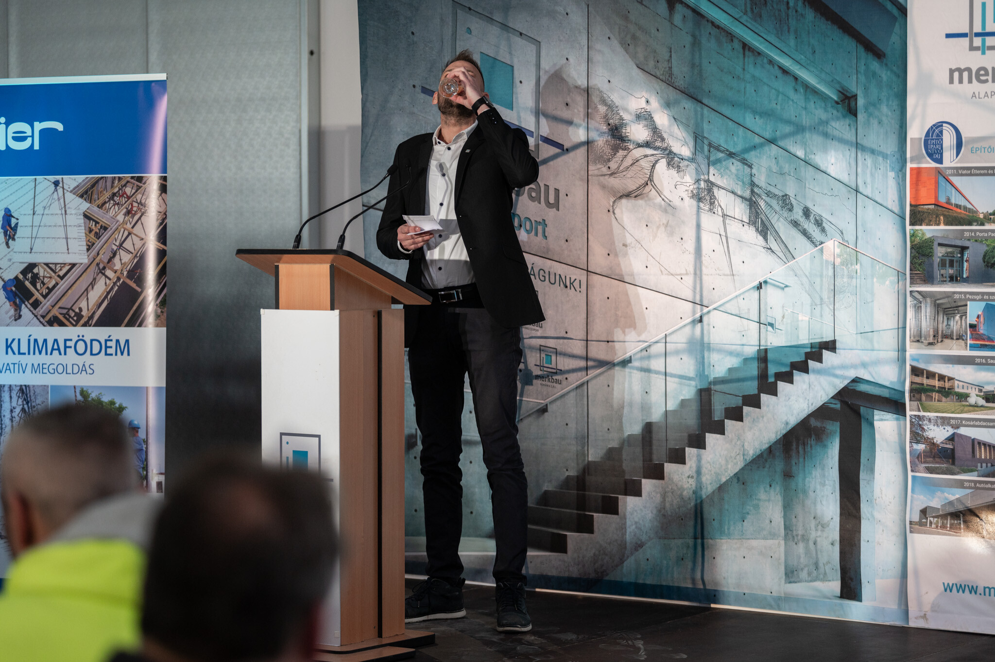 Mielőtt Bőti Gergő elmondhatta a bokrétaverset (aki külön köszöntötte a Merkbau egyes kollégáit: Turi Dániel építésvezetőt, Kovács Dániel építésvezetőt és Varga Gábor létesítményfelelőst), Knáb József ismertette a résztvevőkkel az épület impozáns keretszámait. Mint mondta: