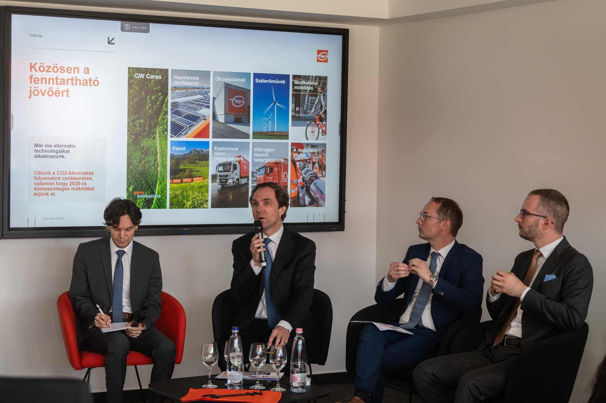 A Gebrüder Weiss Kft. nagyvolumenű technológiai beruházásokkal javítja piaci pozícióit – erről már Varga Bálint ügyvezető beszélt. Kiemelte, hogy az új épületrész tetejére napelem-parkot telepítettek, ami fedezi a telephely nappali fogyasztásának jelentős részét.