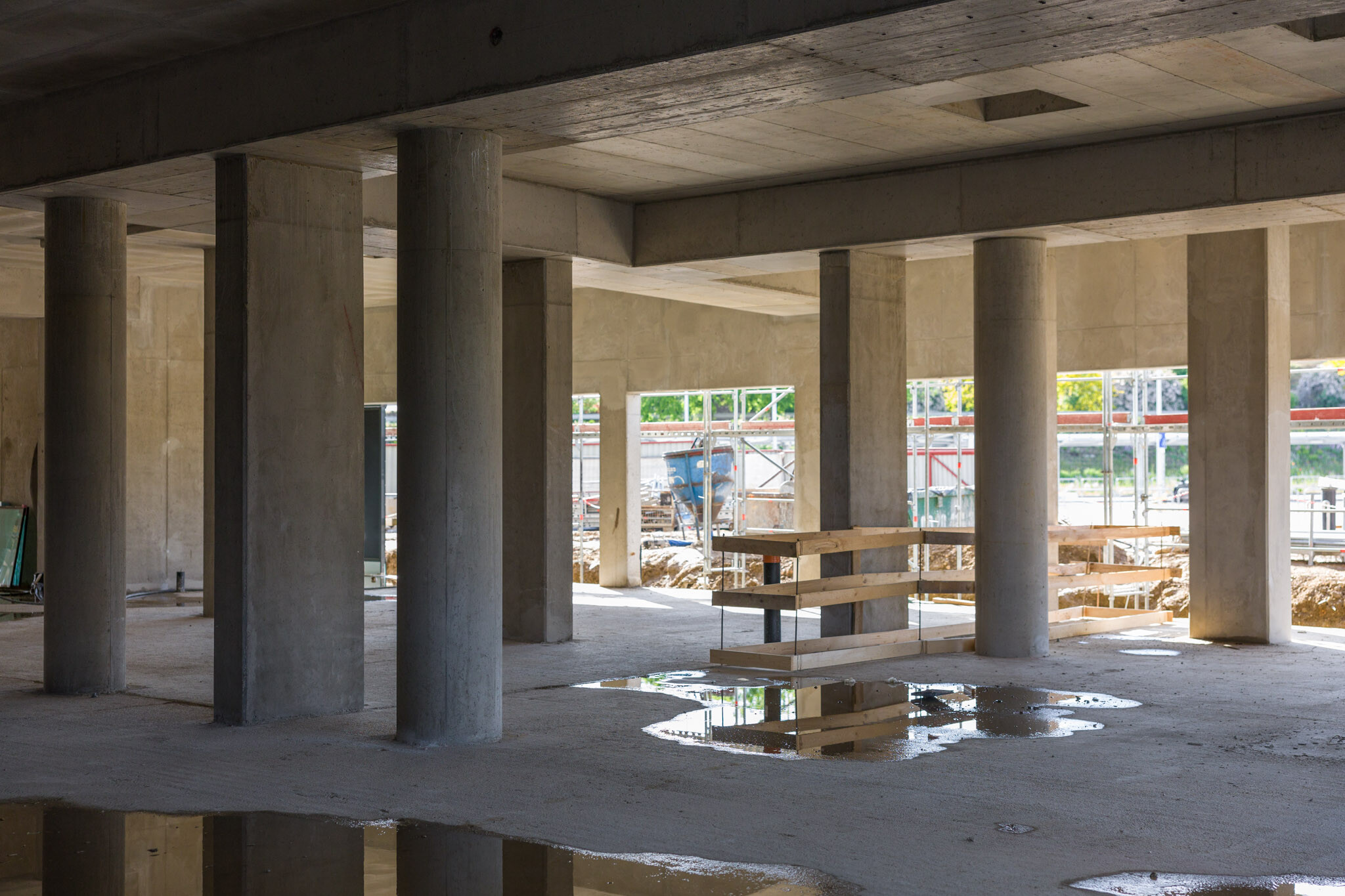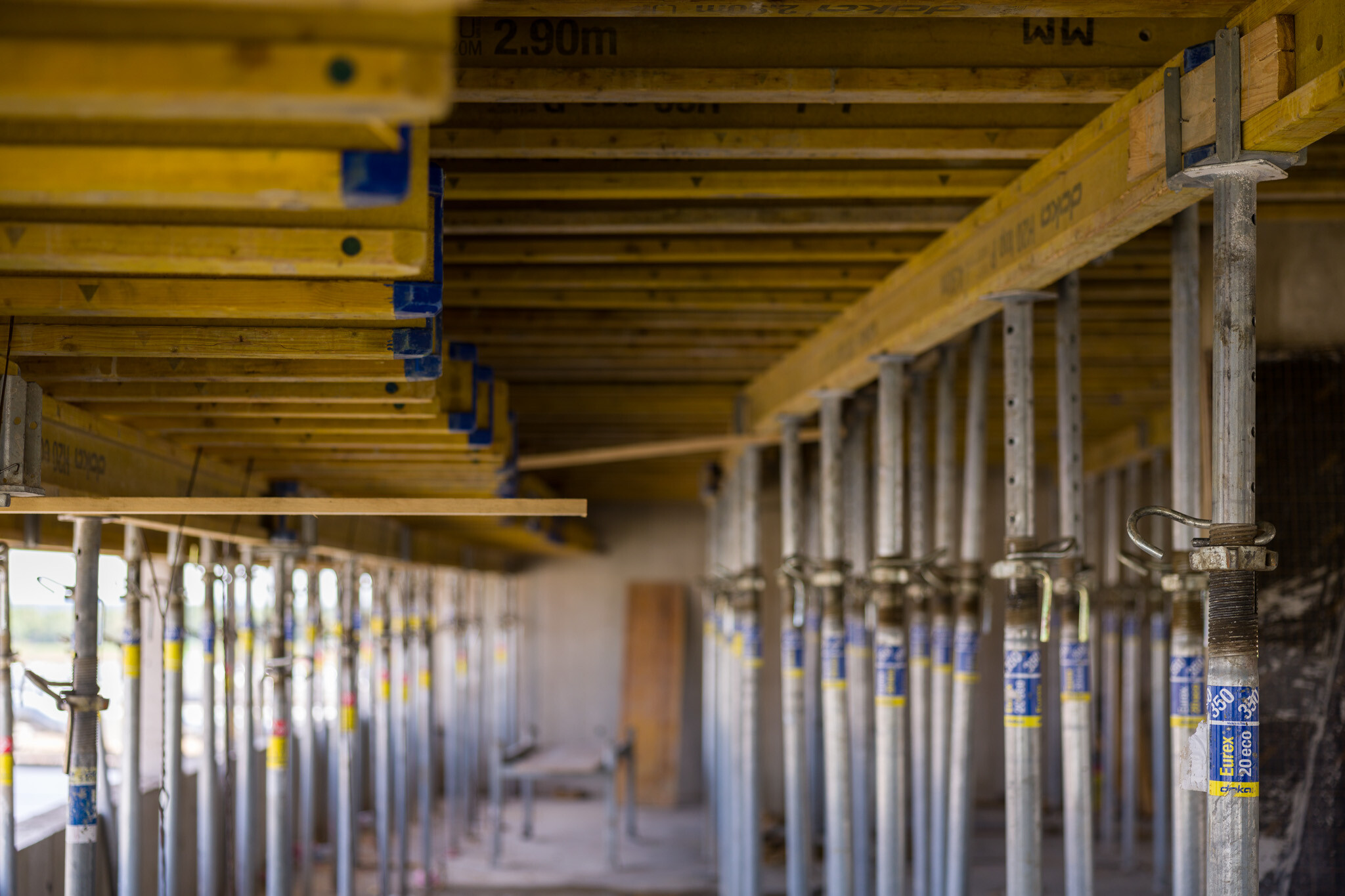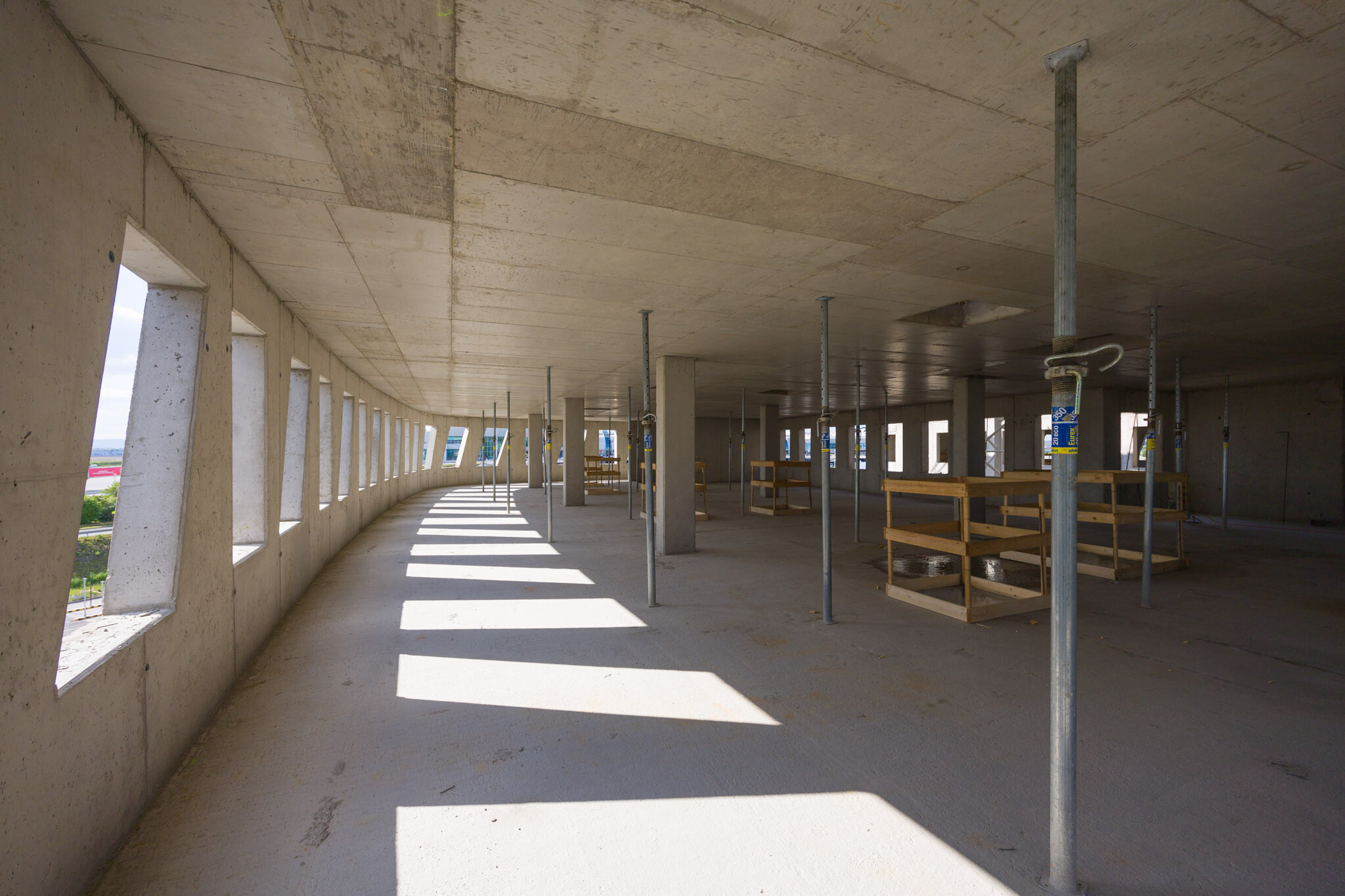 Tűzszerészeti- és régészeti feltárással kezdődött a kivitelezés, majd el kellett bontani a későbbi nyaktag területén, acél pilléreken álló utófeszített előtető szerkezetét. Ezt követően kerülhetett sor a pincetömb kiemelésére, ami az építkezés eddigi legnagyobb kihívását tartogatta – részletezte Czunyi Csaba.