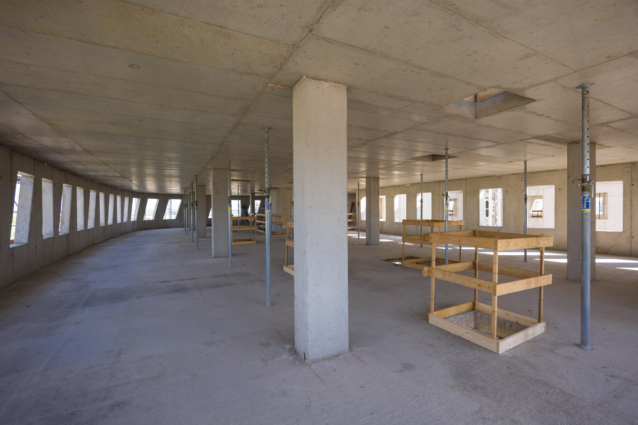 Eddig az alapozás és a szerkezetépítés készült el a 5. emeletig, ahol az előregyártott lépcsőkarokon kívül helyszíni monolit vasbeton szerkezet épül. Jelenleg a homlokzatburkolat előkészítő munkái és a gyártmánytervezés mellett az 6.emelet szerkezetépítése folyik; mivel pedig egy-egy szint elkészítése 14-16 napot vesz igénybe, a szerkezetépítési munkák tervezett befejezése a 7. emelet feletti födém és a tetőszinti szerkezetek bebetonozásával május közepére várható.