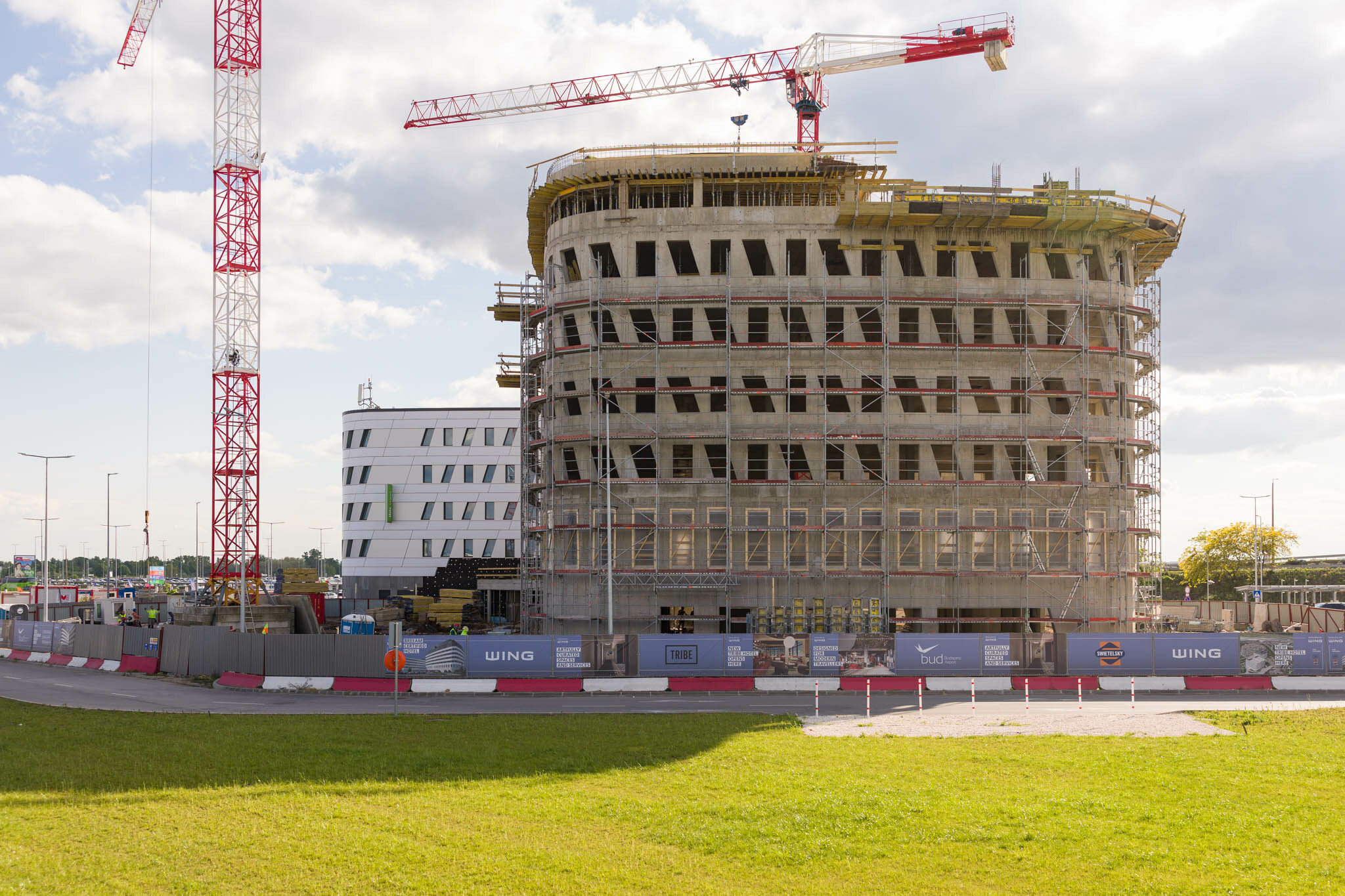 A Liszt Ferenc Repülőtér mellett épülő új TRIBE hotel szerkezetével hamarosan elkészül a SWIETELSKY Magyarország.