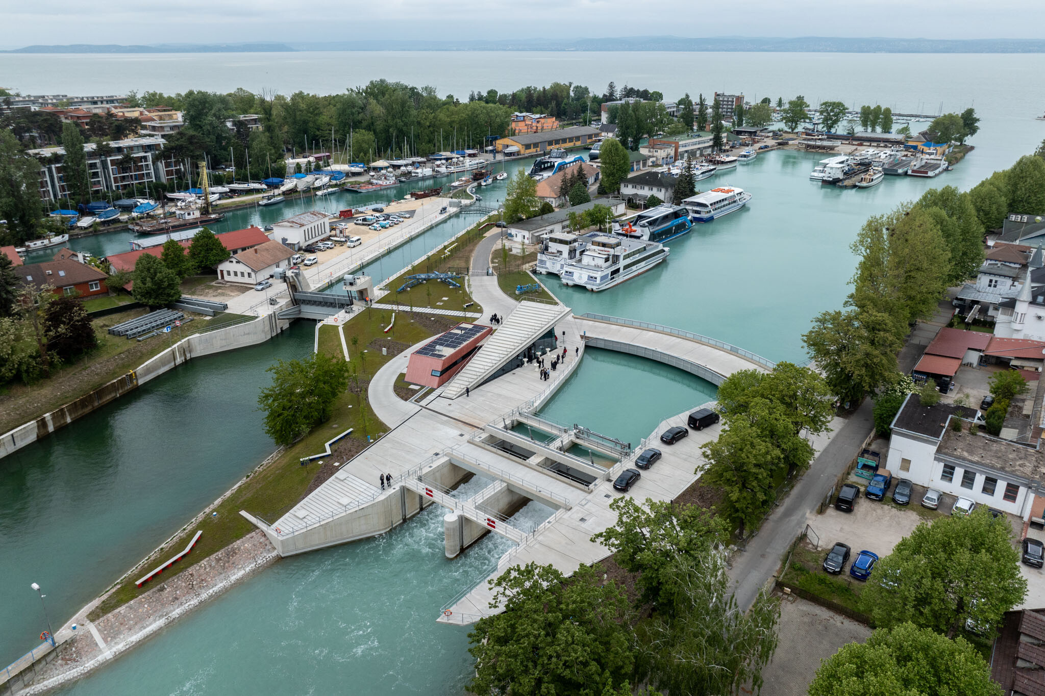 Ünnepélyesen átadták és holnaptól a közönség előtt is megnyitják a megújult Sió-zsilipet. A modernizált műtárgy, amelyet a Balaton dugójaként is becéznek, a parti sétány folytatásaként a nagyközönség számára is látogatható lesz. A fejlesztések révén, kedvelt közösségi találkozóhellyé válhat a zsilip parkosított környezete és a víz fölé benyúló pihenőhely.