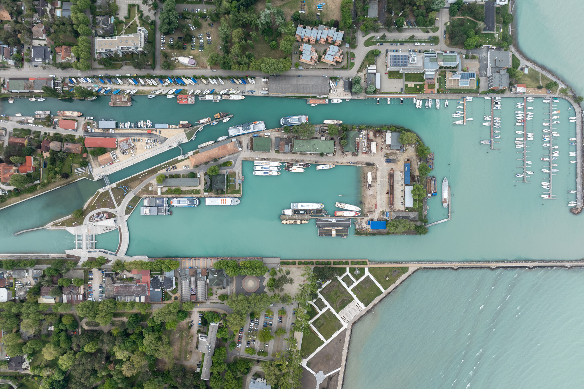 Átadták a megújult Sió-zsilipet Siófok belvárosában. A fejlesztés révén a Balaton levezetőrendszerének vízeresztő-képessége a STRABAG Építő Zrt. és Colas Alterra Zrt., által alkotott SC Siófok Konzorcium kivitelezésében, megduplázódott.