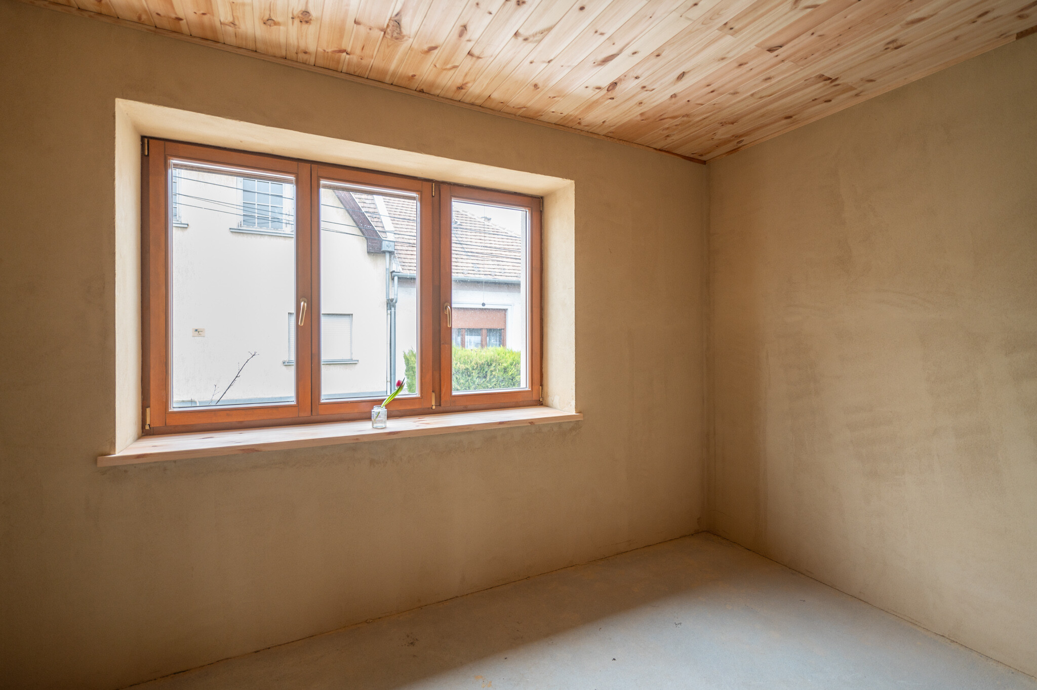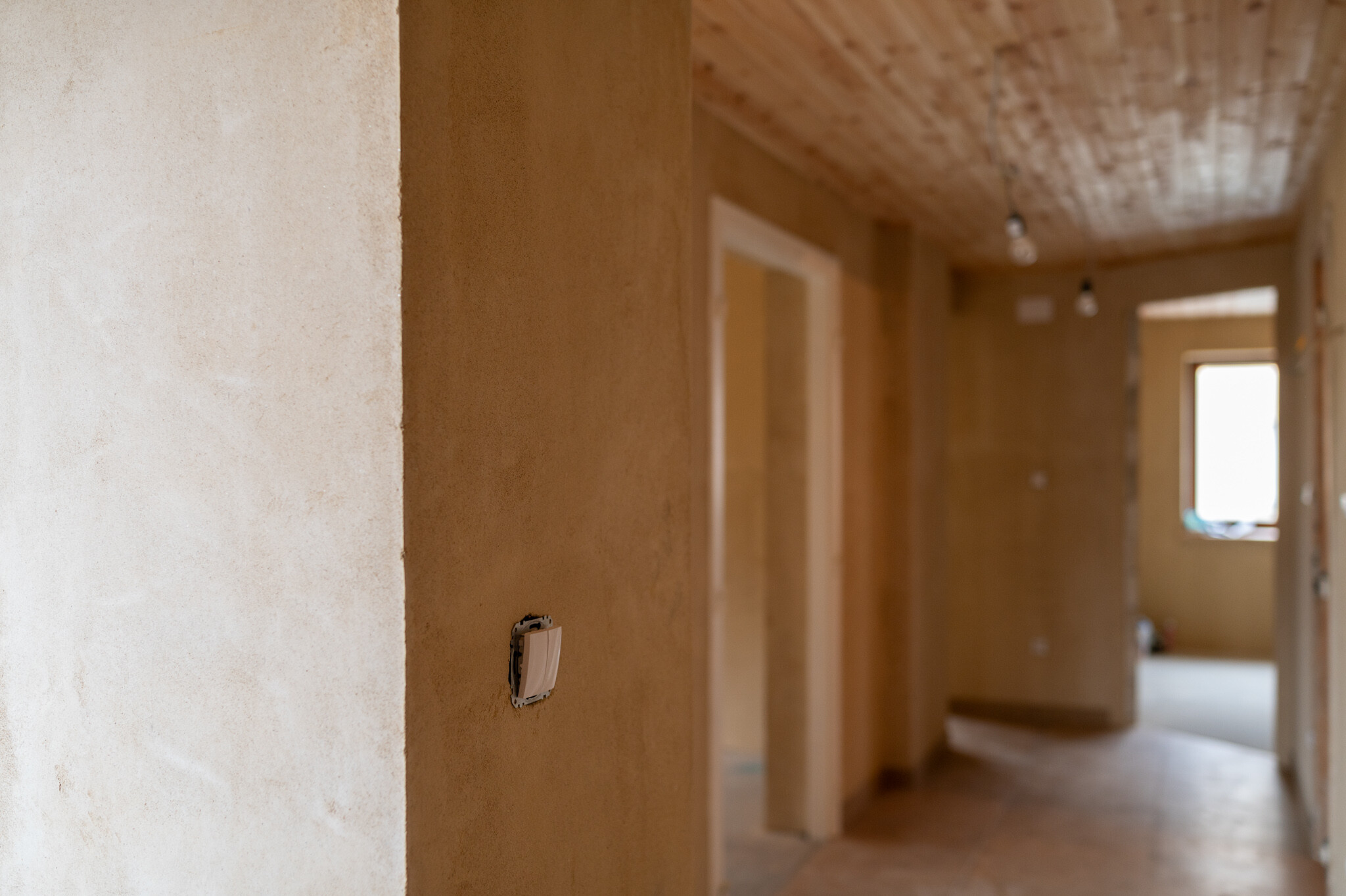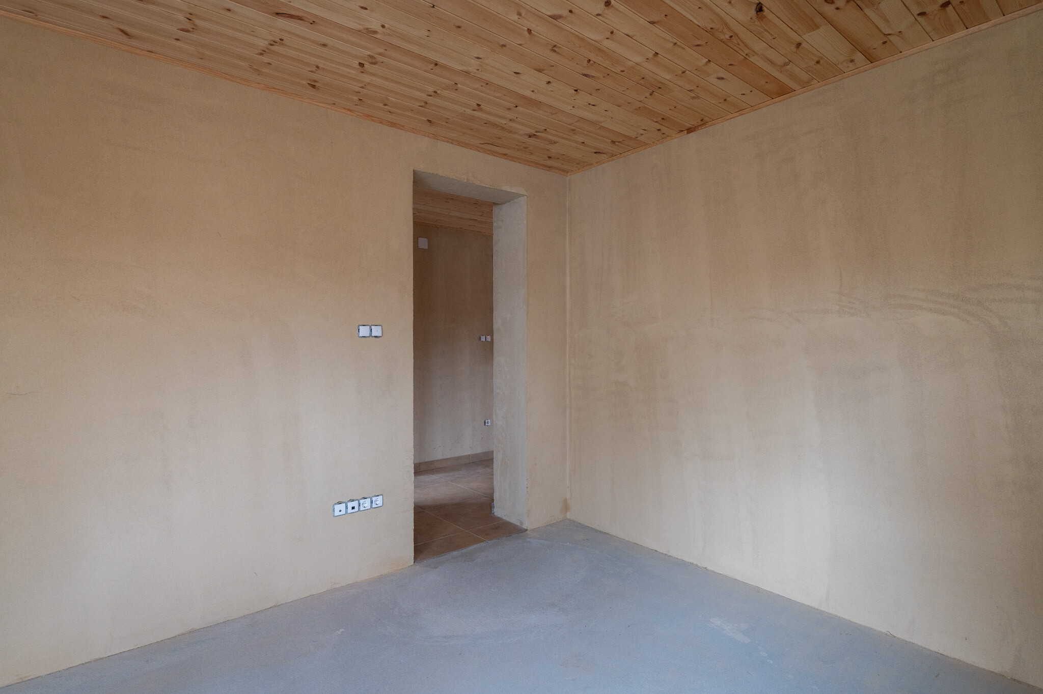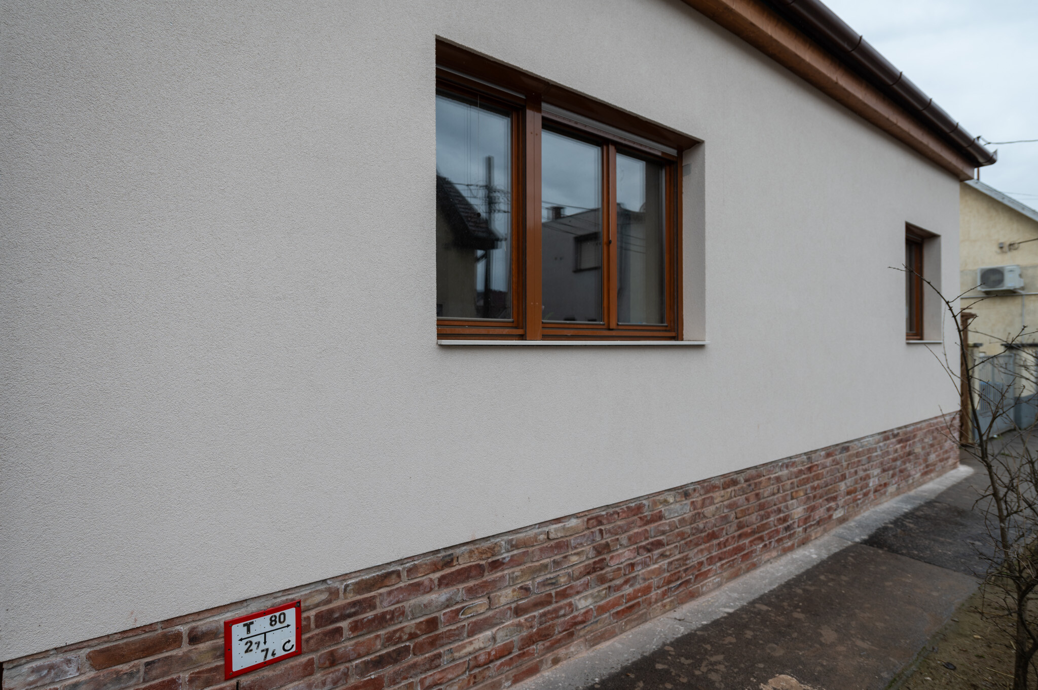 A lábazati zóna is átszellőztetett klinkertéglás kivitelben készült, a belső tér festési munkáit pedig a megrendelő fejezi majd be az ajánlott mészalapú anyagokkal.