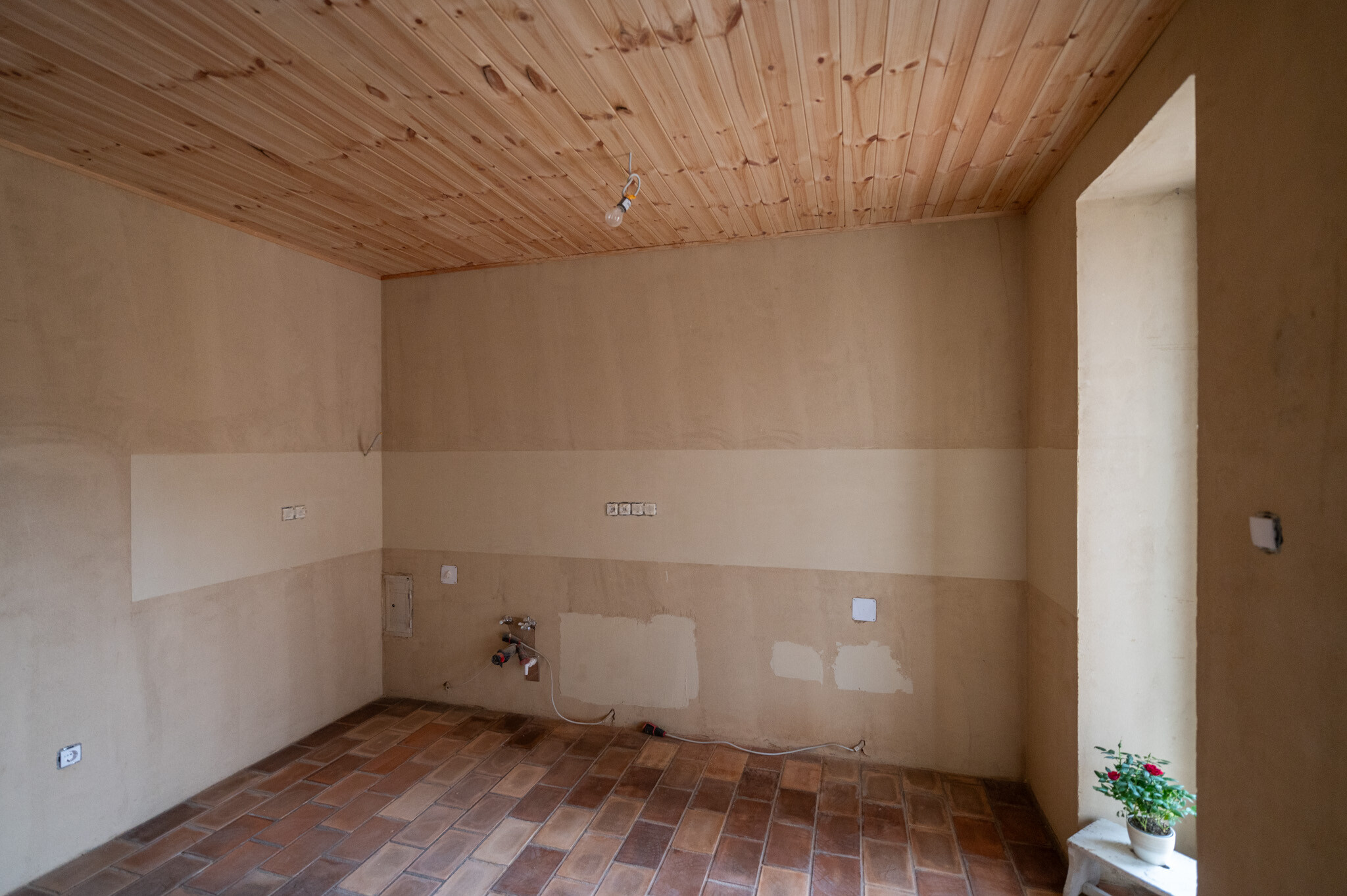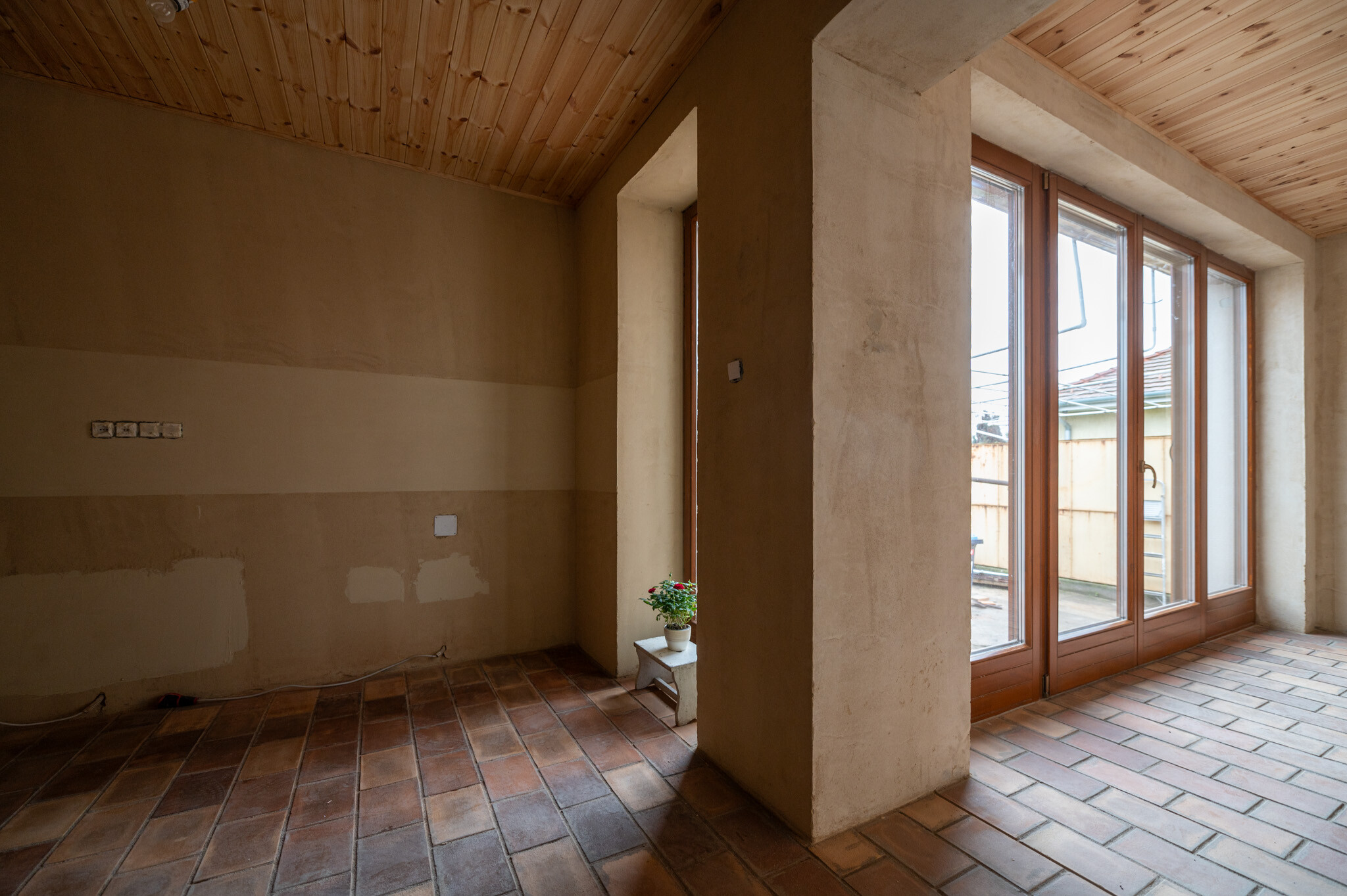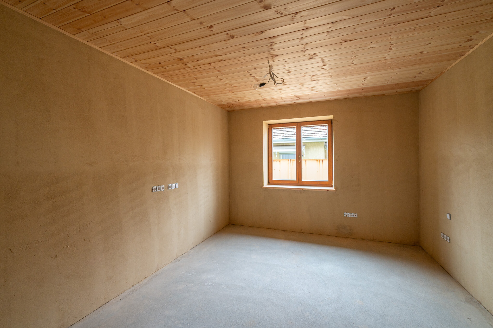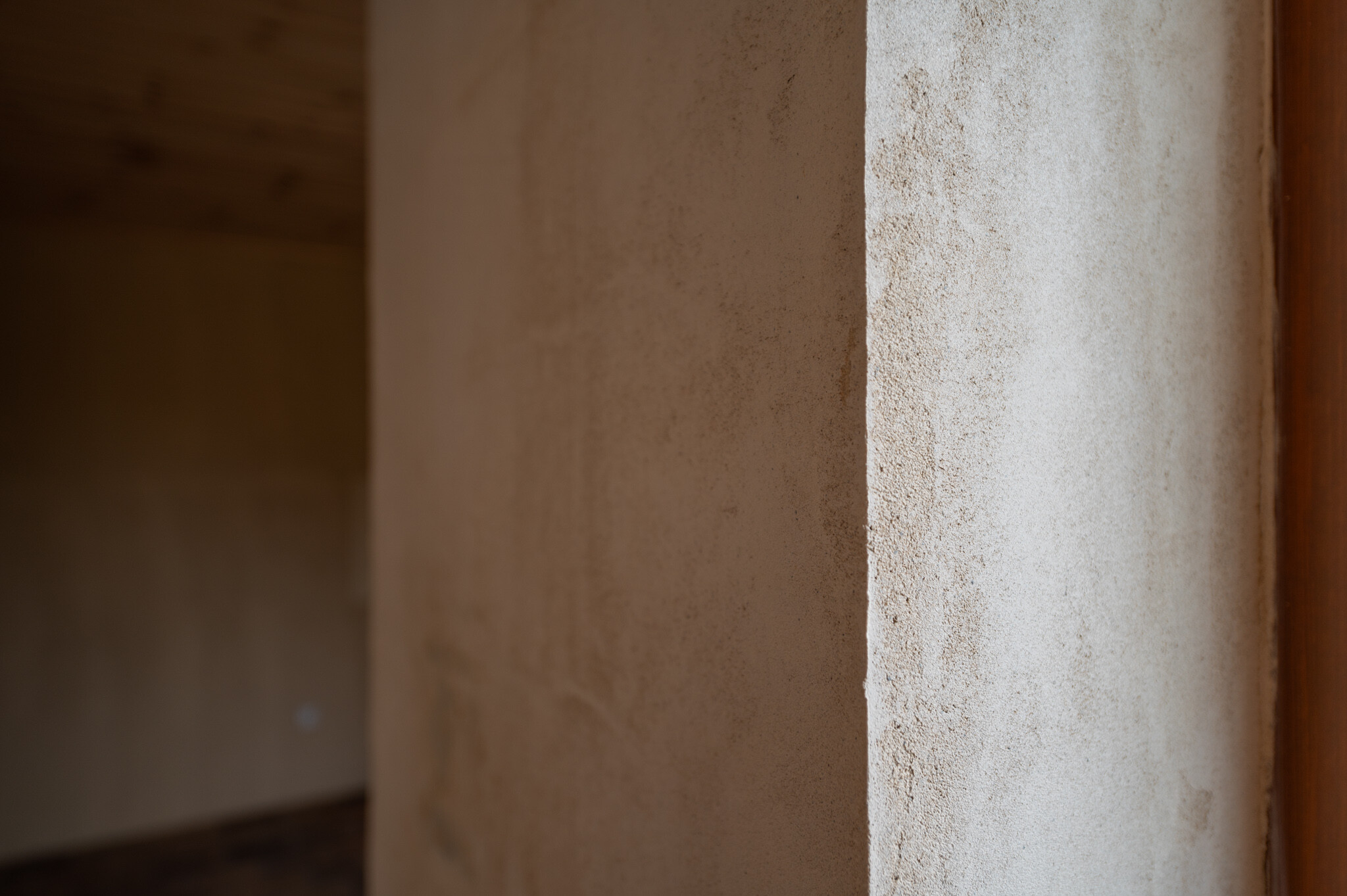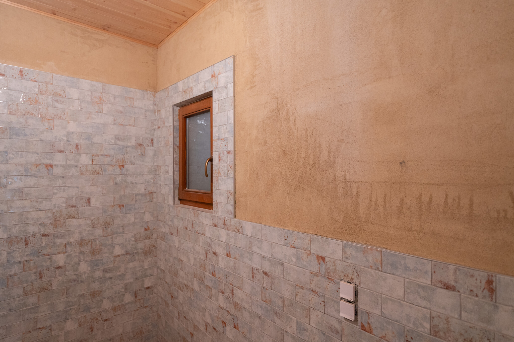 A lábazati zóna is átszellőztetett klinkertéglás kivitelben készült, a belső tér festési munkáit pedig a megrendelő fejezi majd be az ajánlott mészalapú anyagokkal.