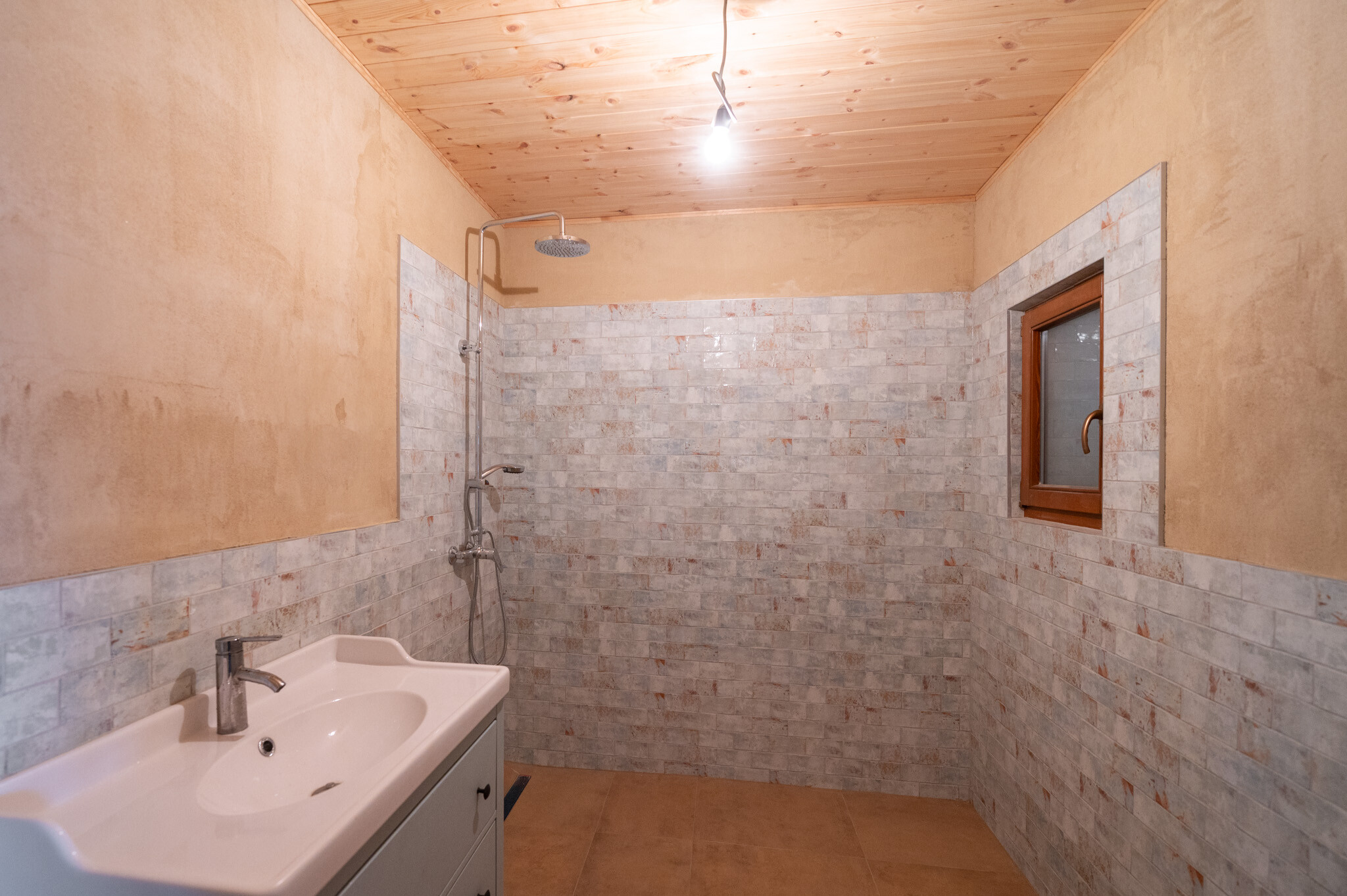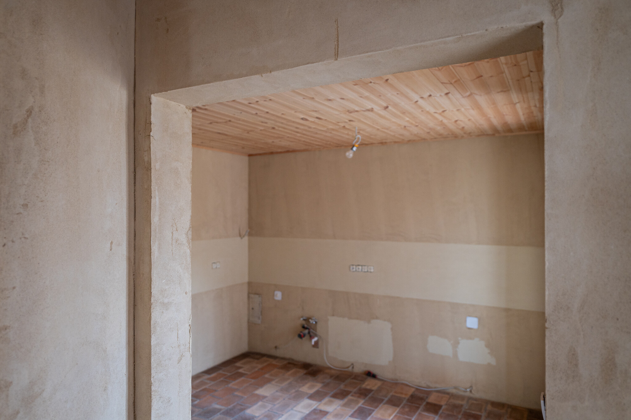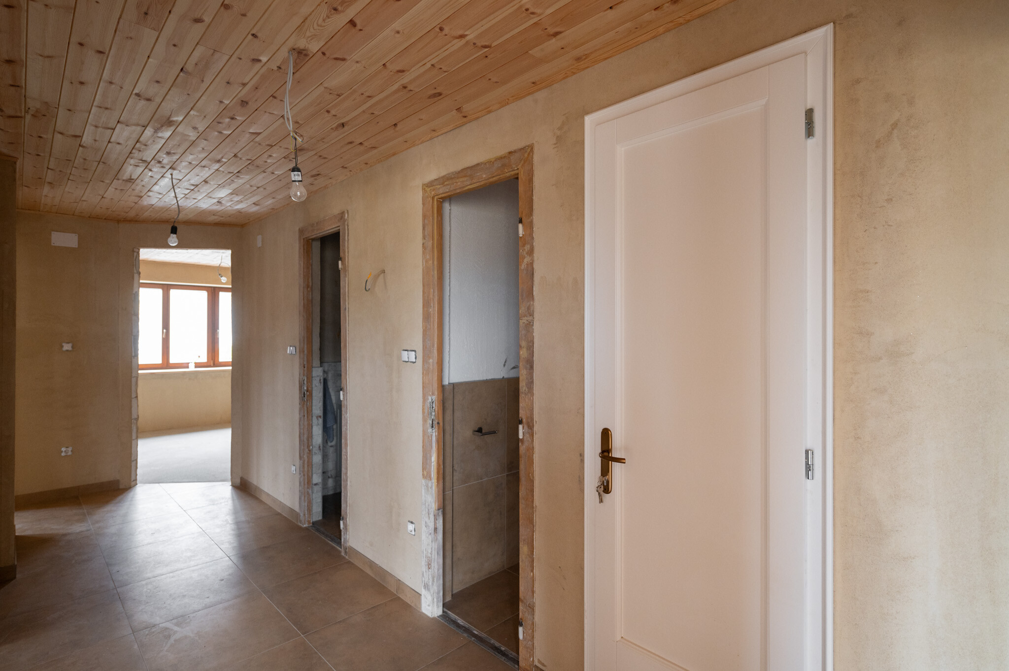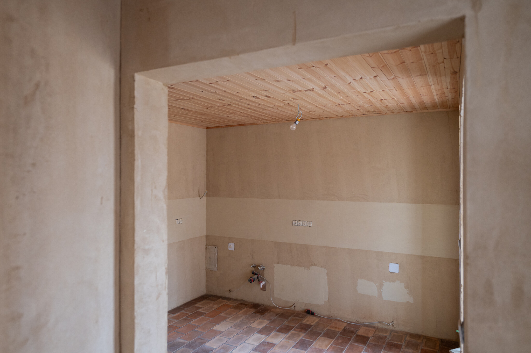 A lábazati zóna is átszellőztetett klinkertéglás kivitelben készült, a belső tér festési munkáit pedig a megrendelő fejezi majd be az ajánlott mészalapú anyagokkal.