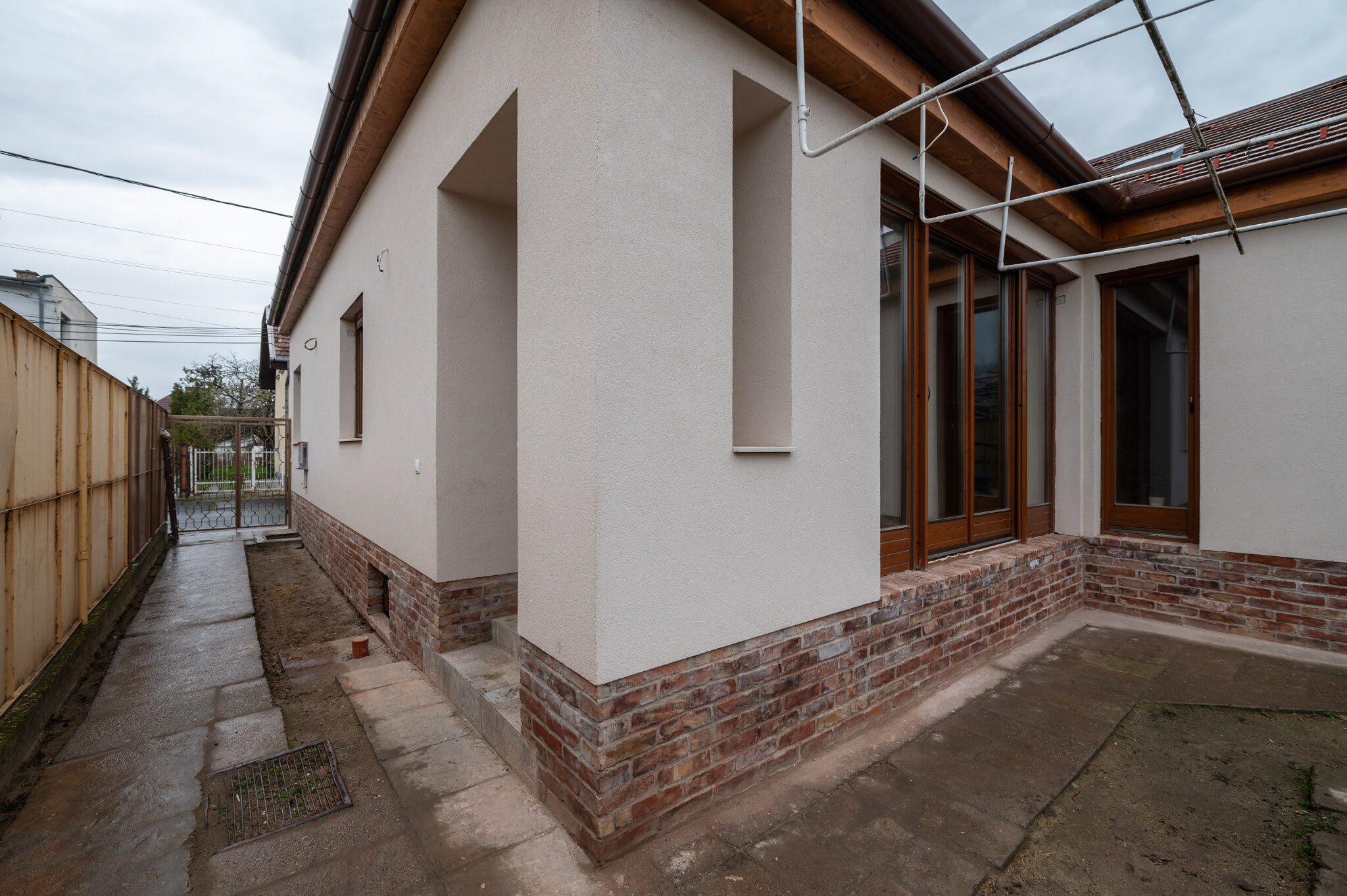 Kertvárosi környezetben, Budapest külvárosában épült az utcafronton a szomszédos házakhoz léptékében és megjelenésében is igazodó, mértéktartó családi ház egy régi téglaház átalakításával. Az átalakítás nem csak a párkánymagasságot és a nyílászárórendet tartotta tiszteletben, de a túlzott egységesítés helyett a belső terek hierarchiájának fenntartására is gondot fordítottak.