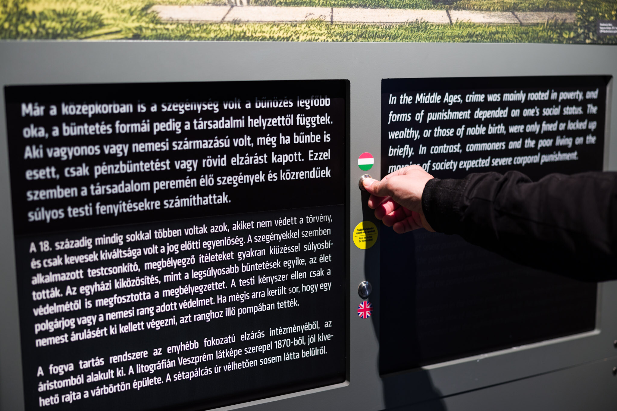 Az Ember a rács mögött című új börtönkiállítás koncepciója a bűnről, a büntetésről és börtönről beszél, veszprémi és általános történeteken keresztül társadalomtörténeti, büntetéstörténeti és kultúrtörténeti aspektusból – részletezte a tárlatvezető. Szemléletformáló, gondolkodtató kiállítás létrehozása volt a céljuk, amely azt mutatja be, hogyan változnak a társadalmi normák és erkölcsi nézetek, mi számít bűnnek, és hogyan büntetik azt egy-egy korban.